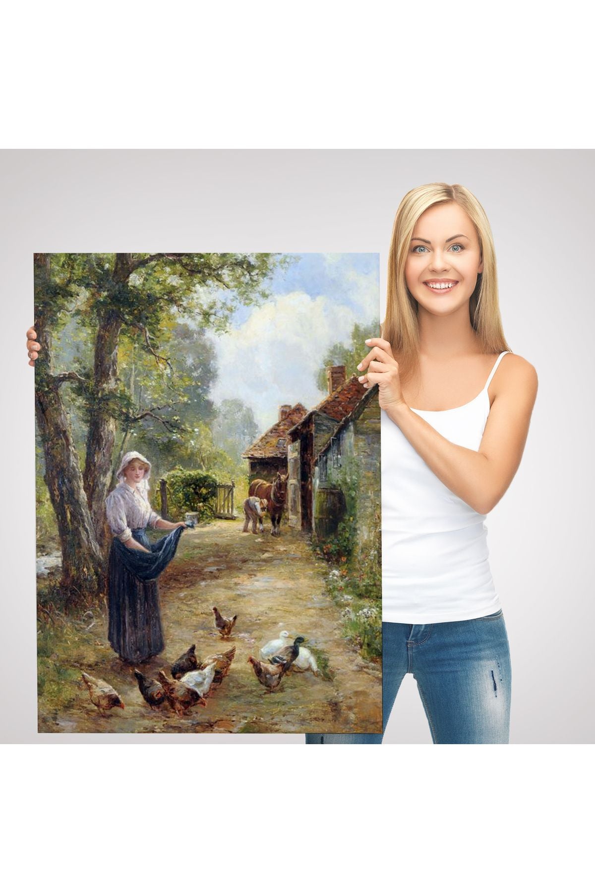 Rus Köylüsü Kadın ve Tavukları Duvar Tablosu-6055