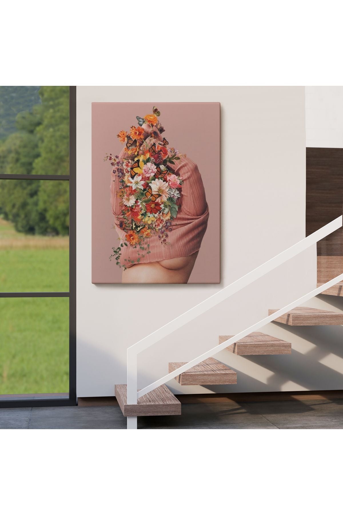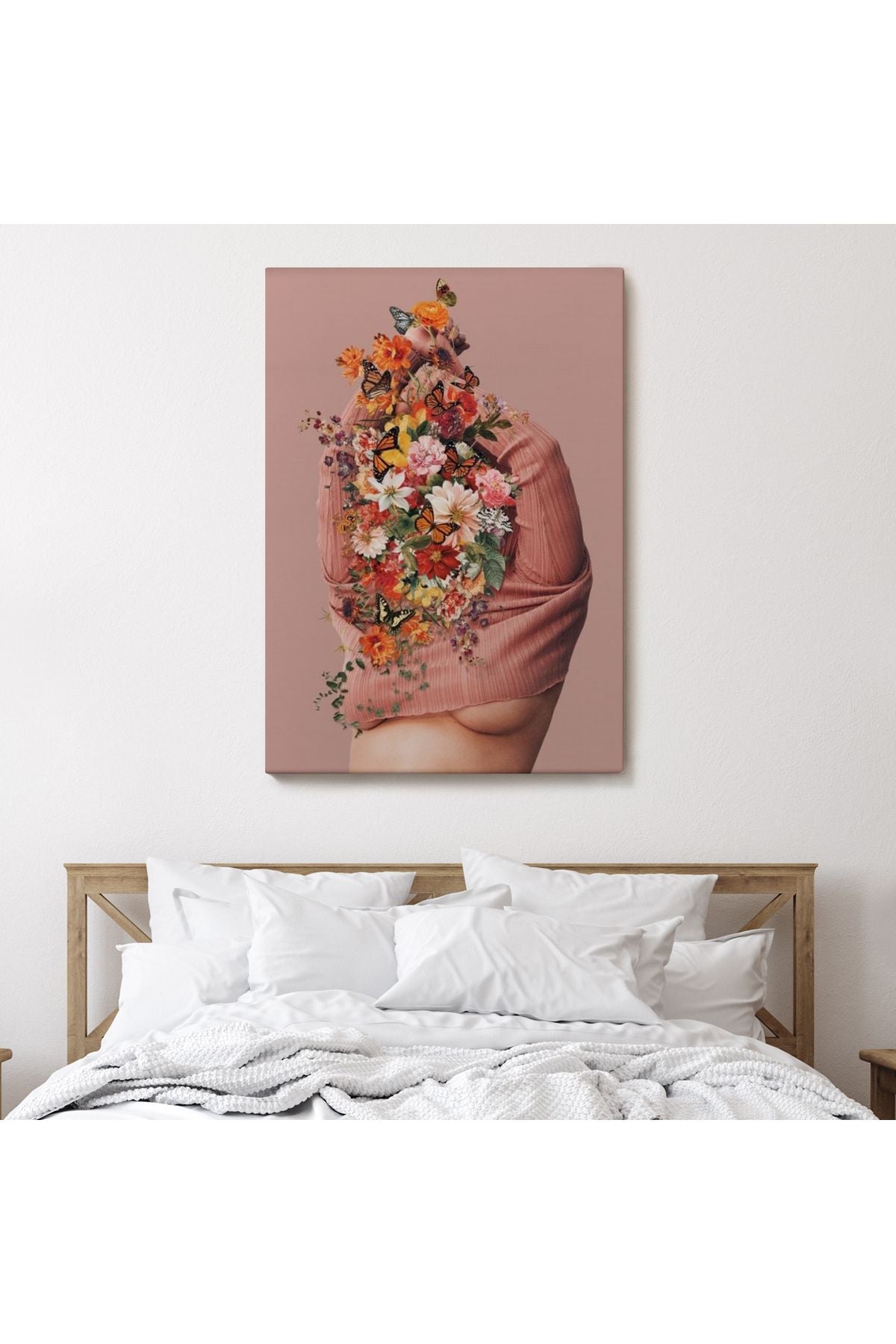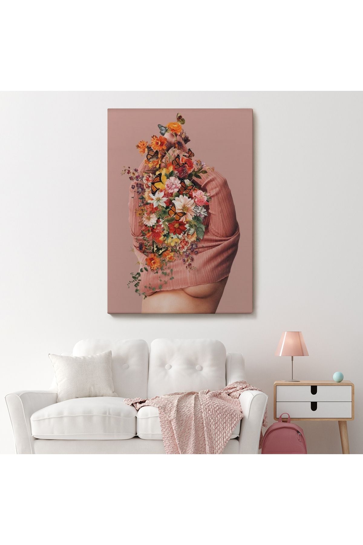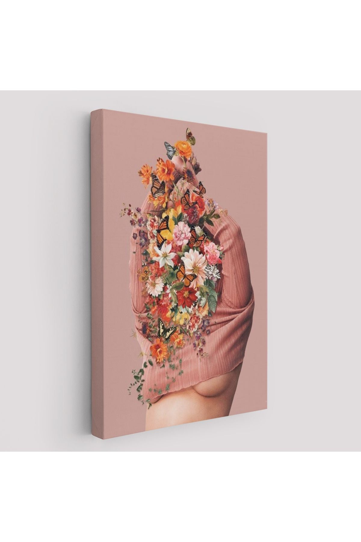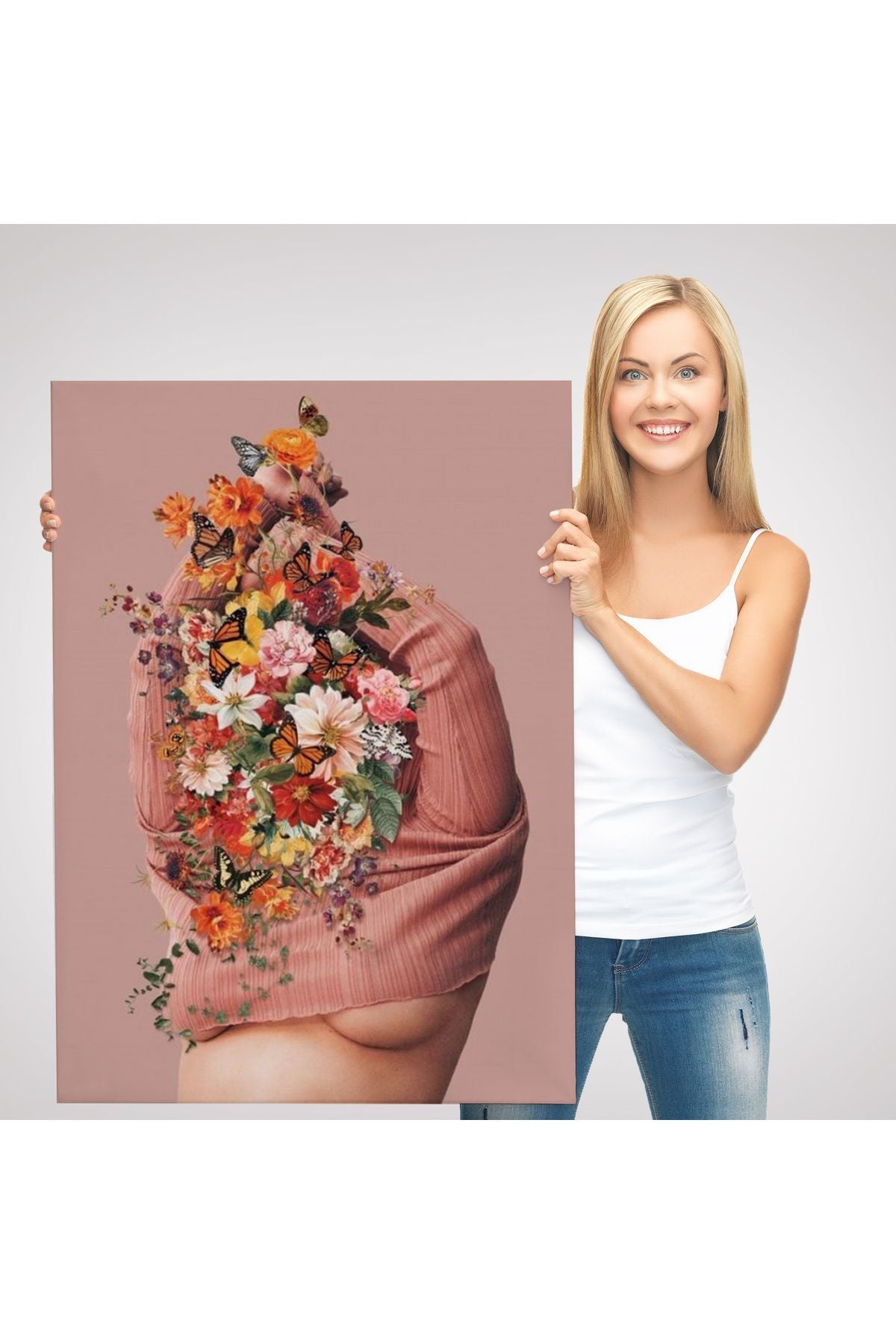 Soyunan Kadın Renkli Kelebekler ve Çiçekler Detaylı Tablo-6060