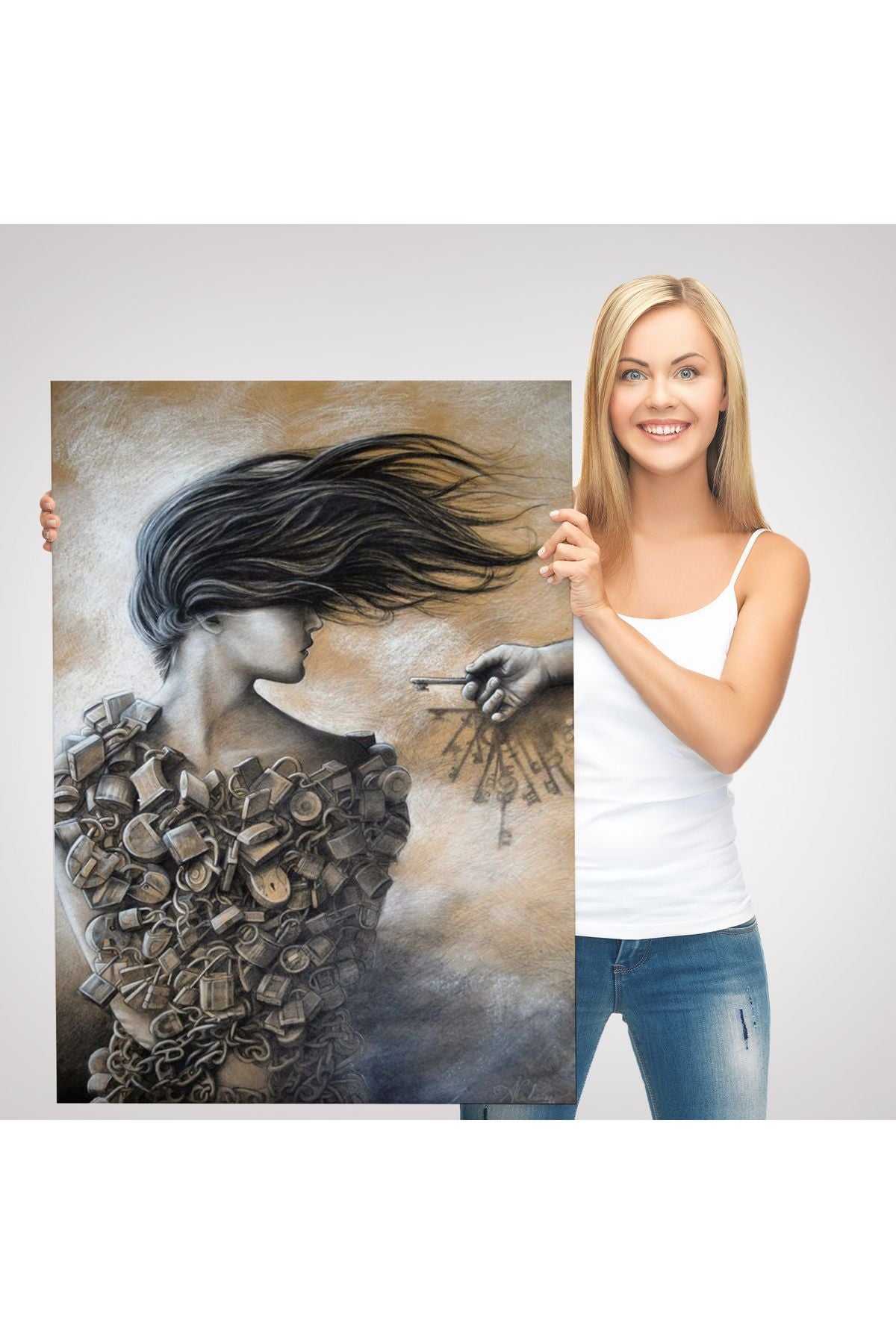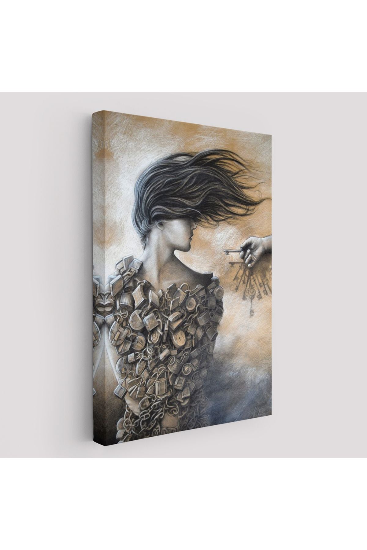 Özel Tasarım Kilitler İçindeki Kadın Duvar Tablosu-6067
