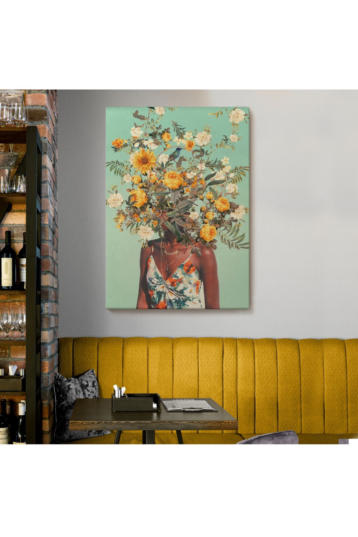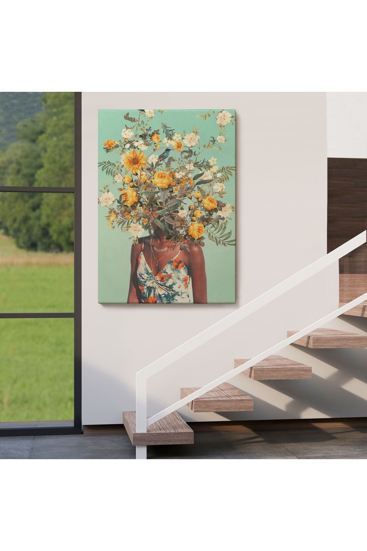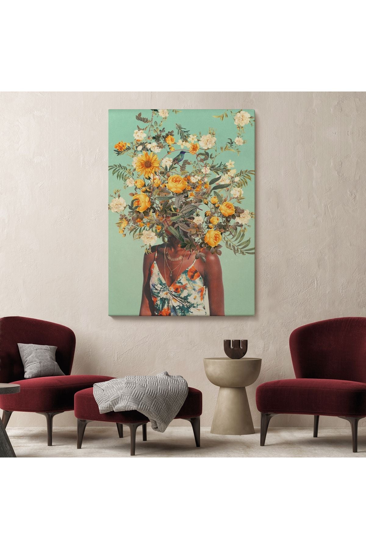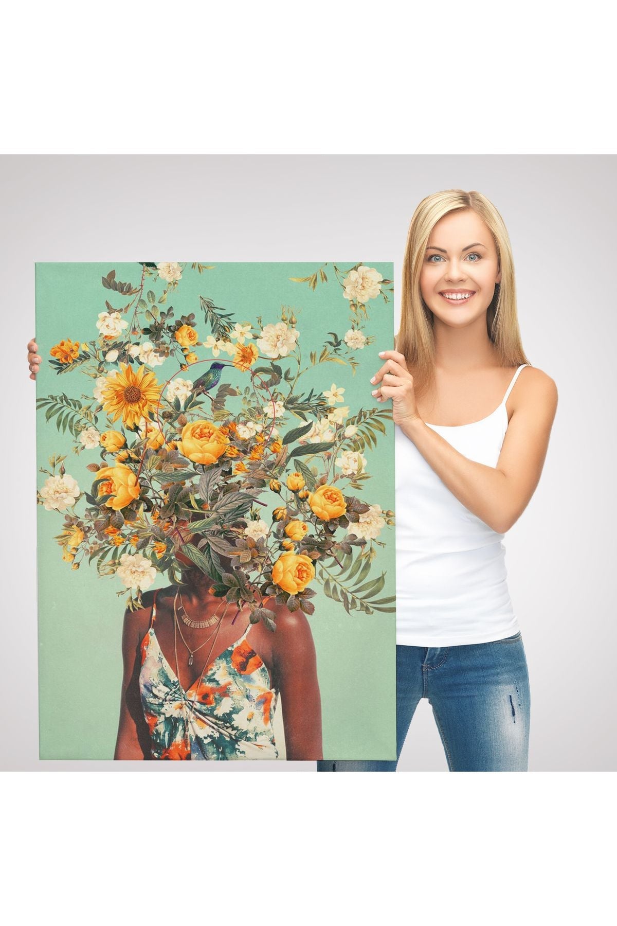 YB HG Çiçek Başlı Siyahi Kadın, Afrıkalı Kadın Kanvas Tablo -6079