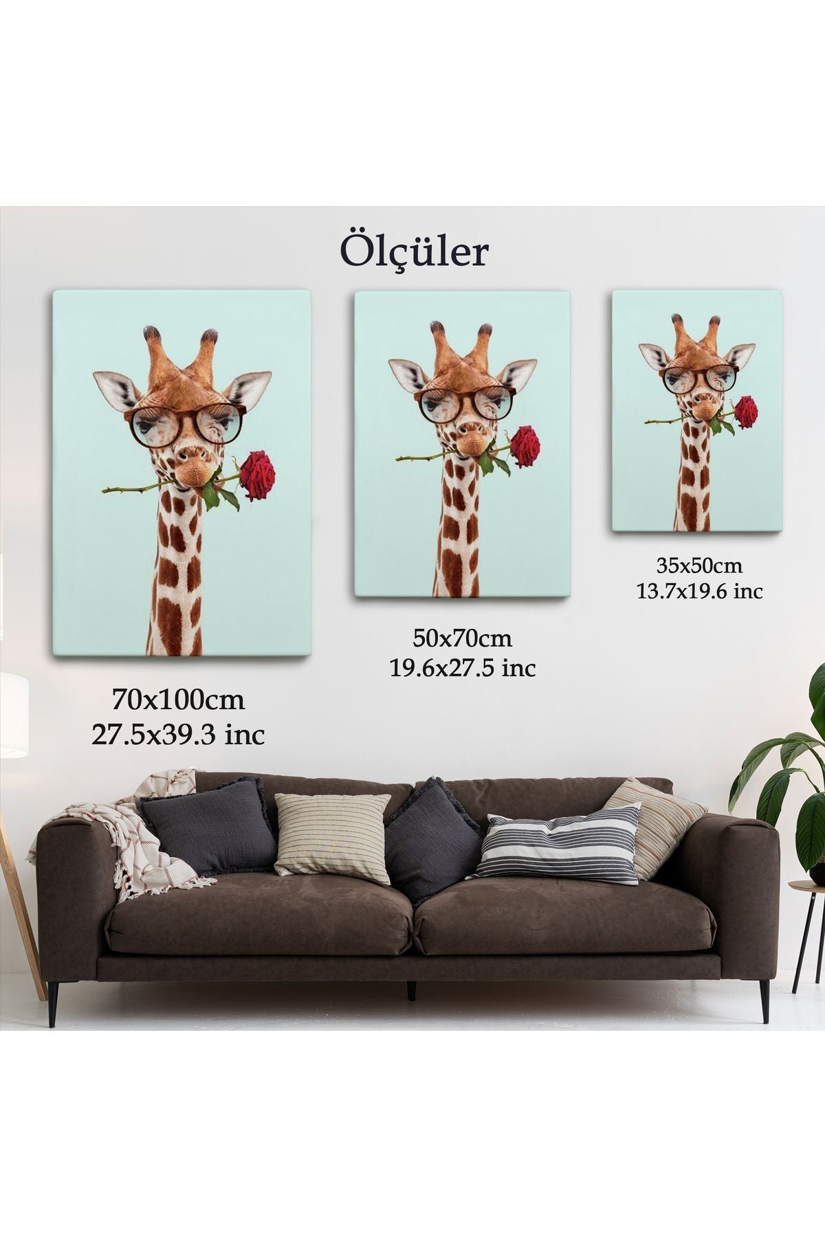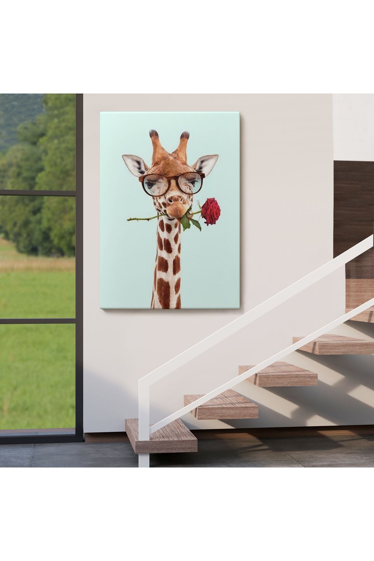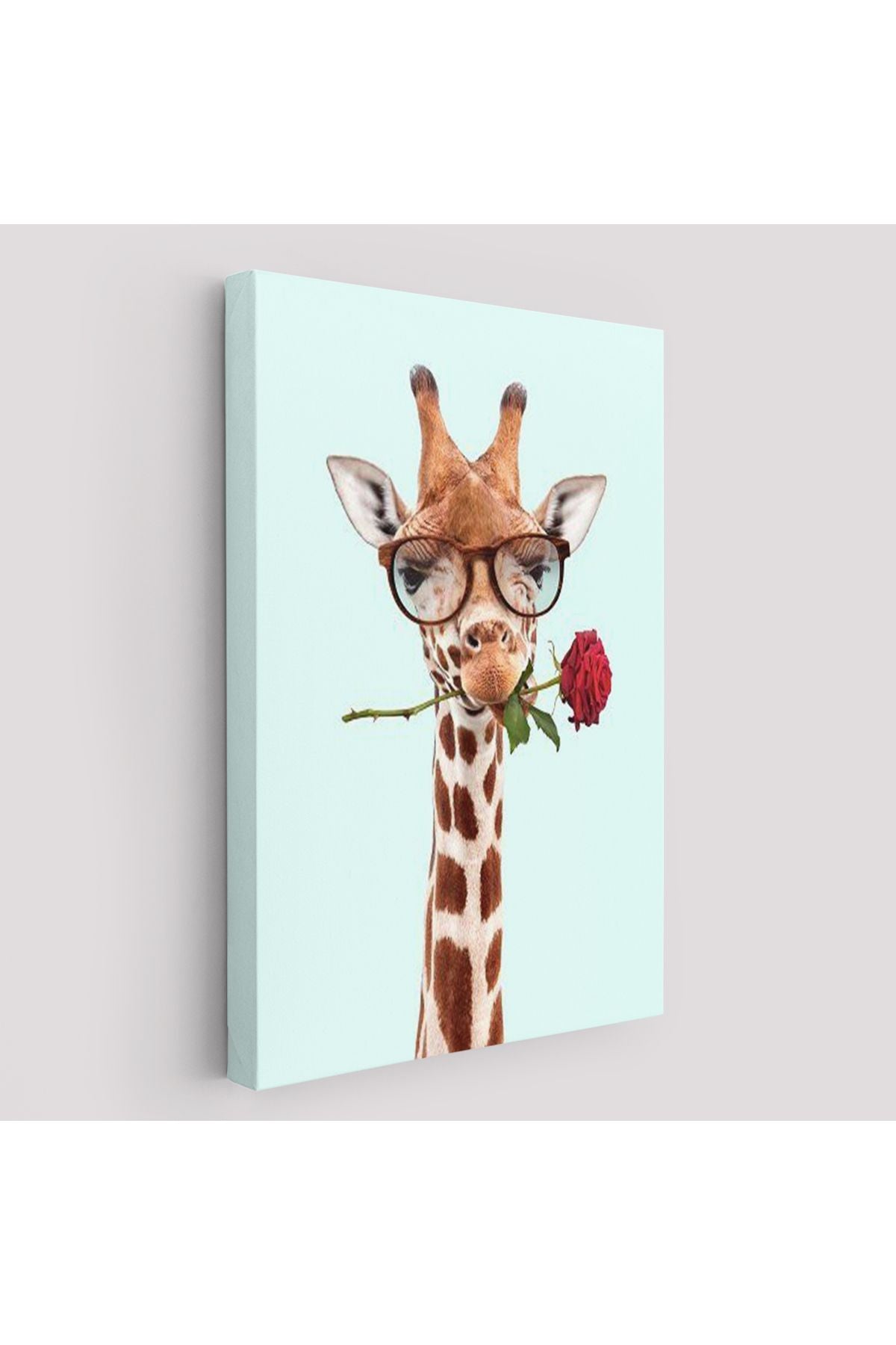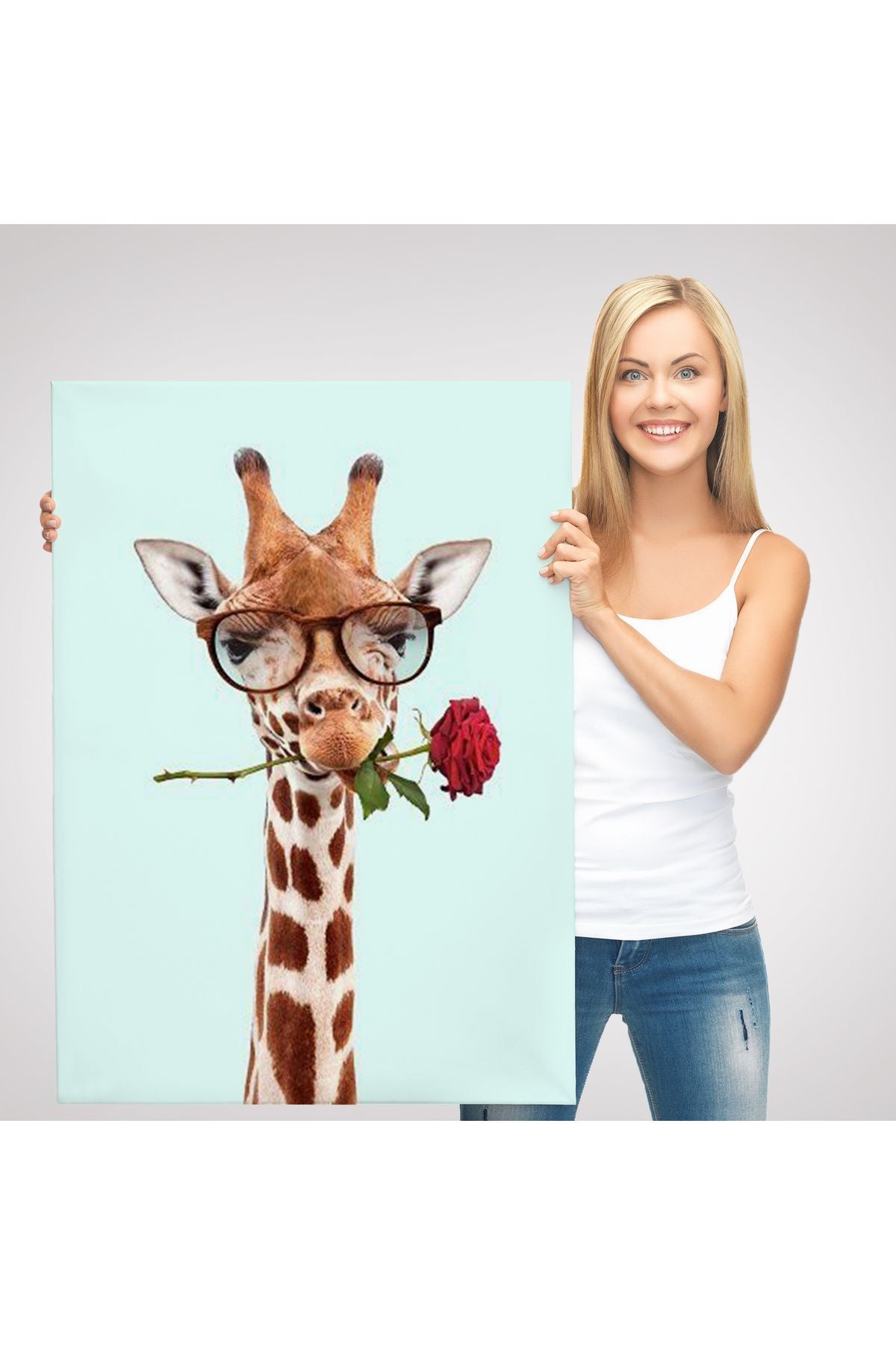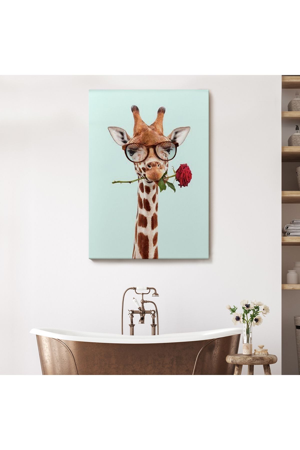 Ağzında Gül Olan Gözlüklü Zürafa Duvar Tablosu-6080