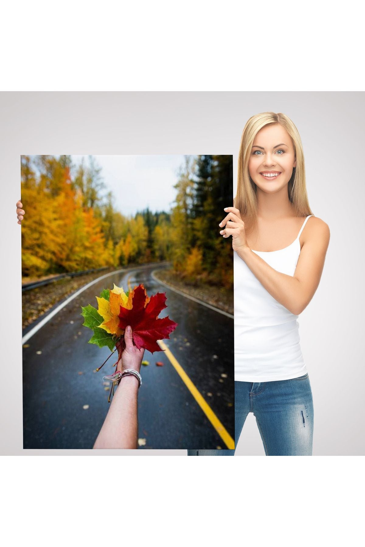 Sonbaharın Renkli Yaprakları ve Yol Manzarası Duvar Tablosu-6089