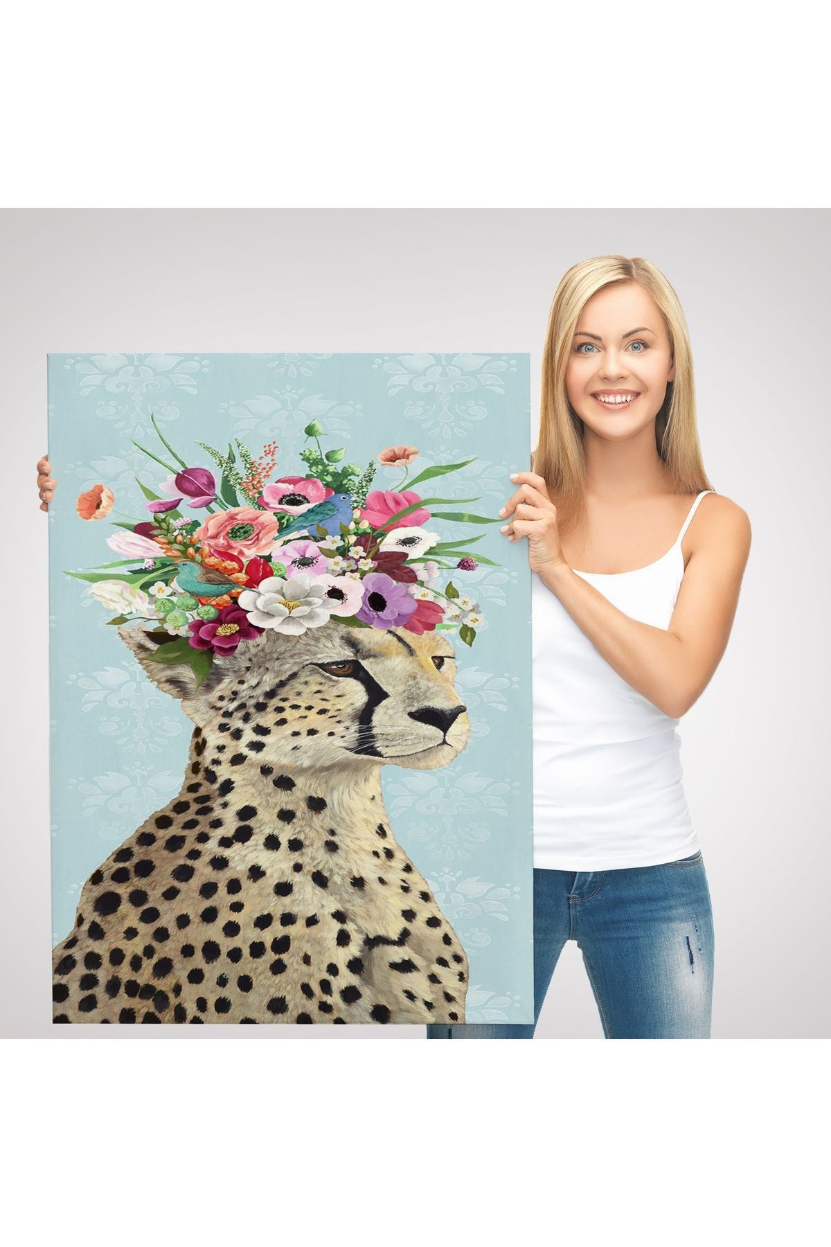 Çiçek Taçlı Kraliçe Çita Kanvas Tablo-6090