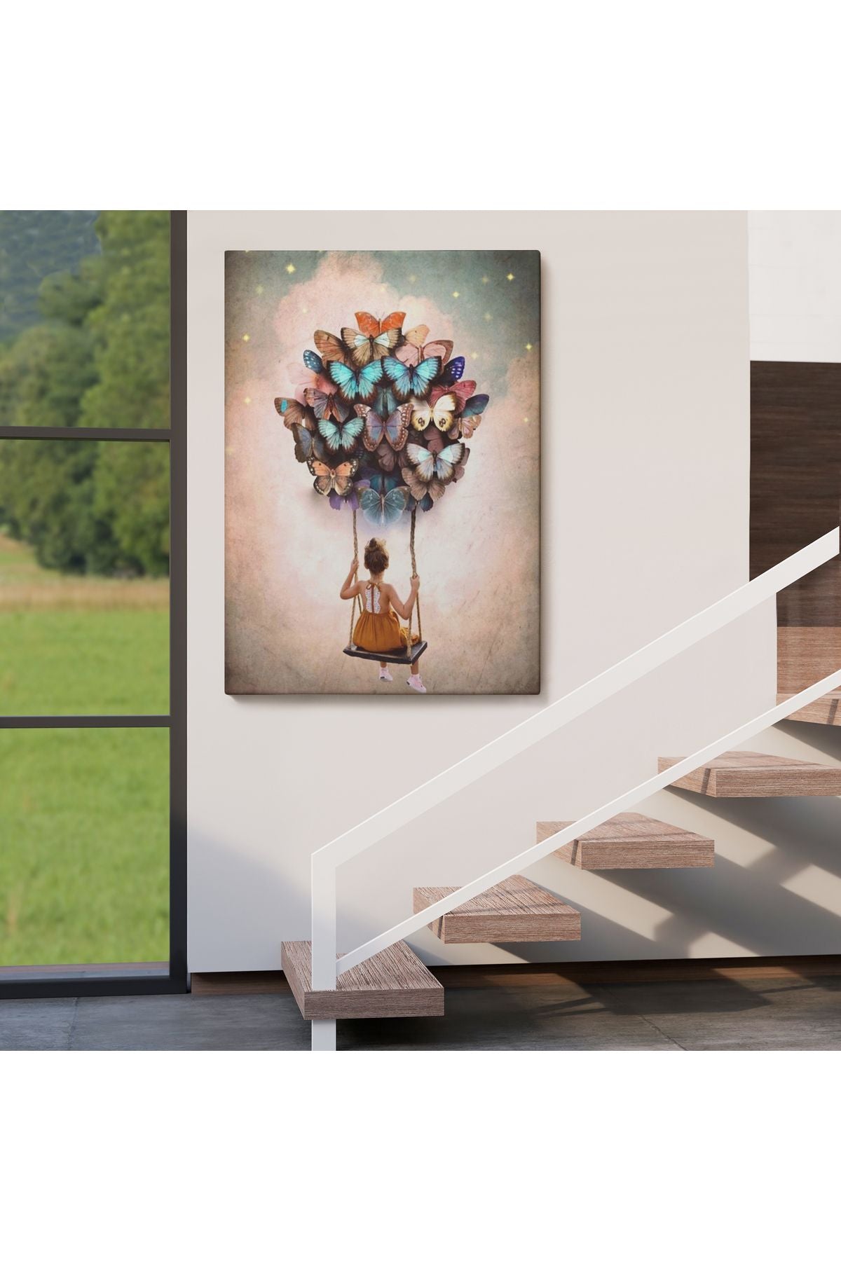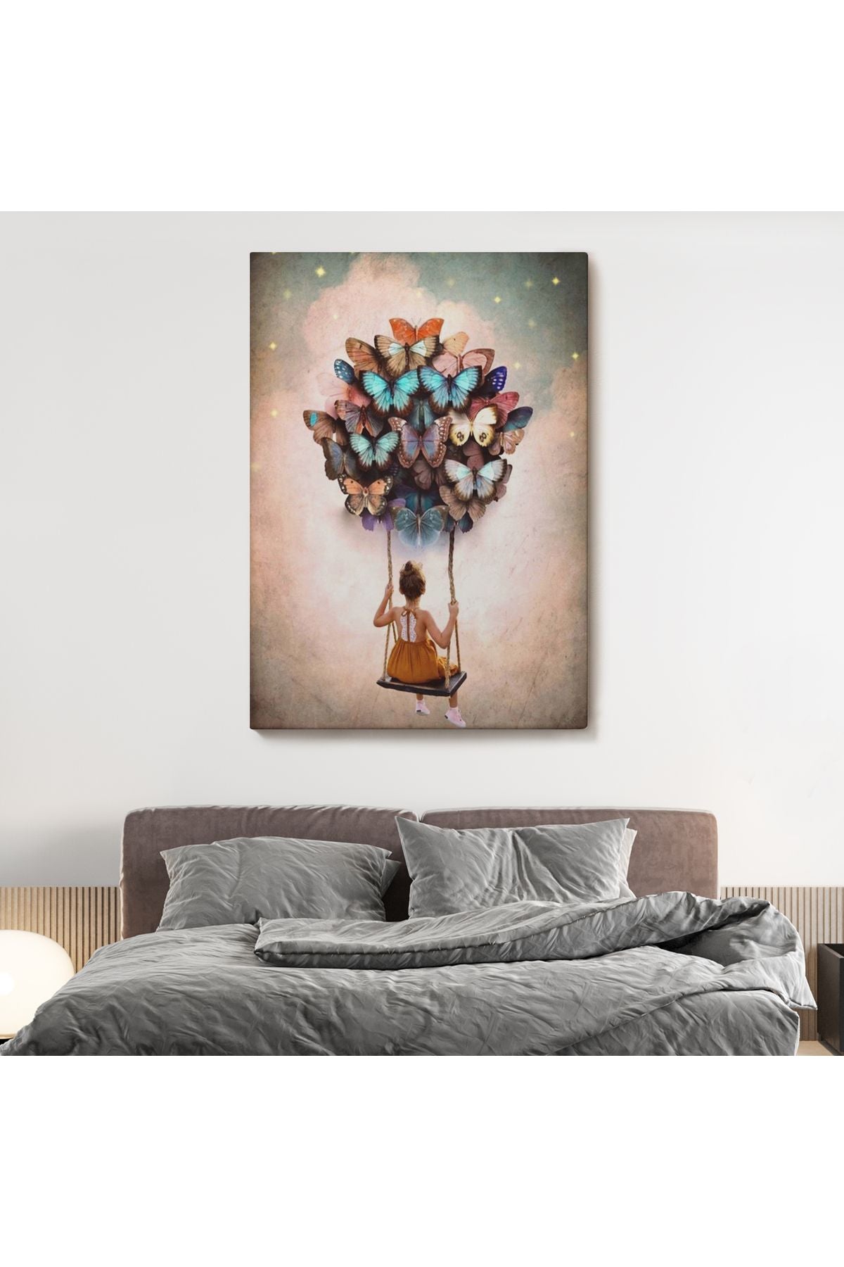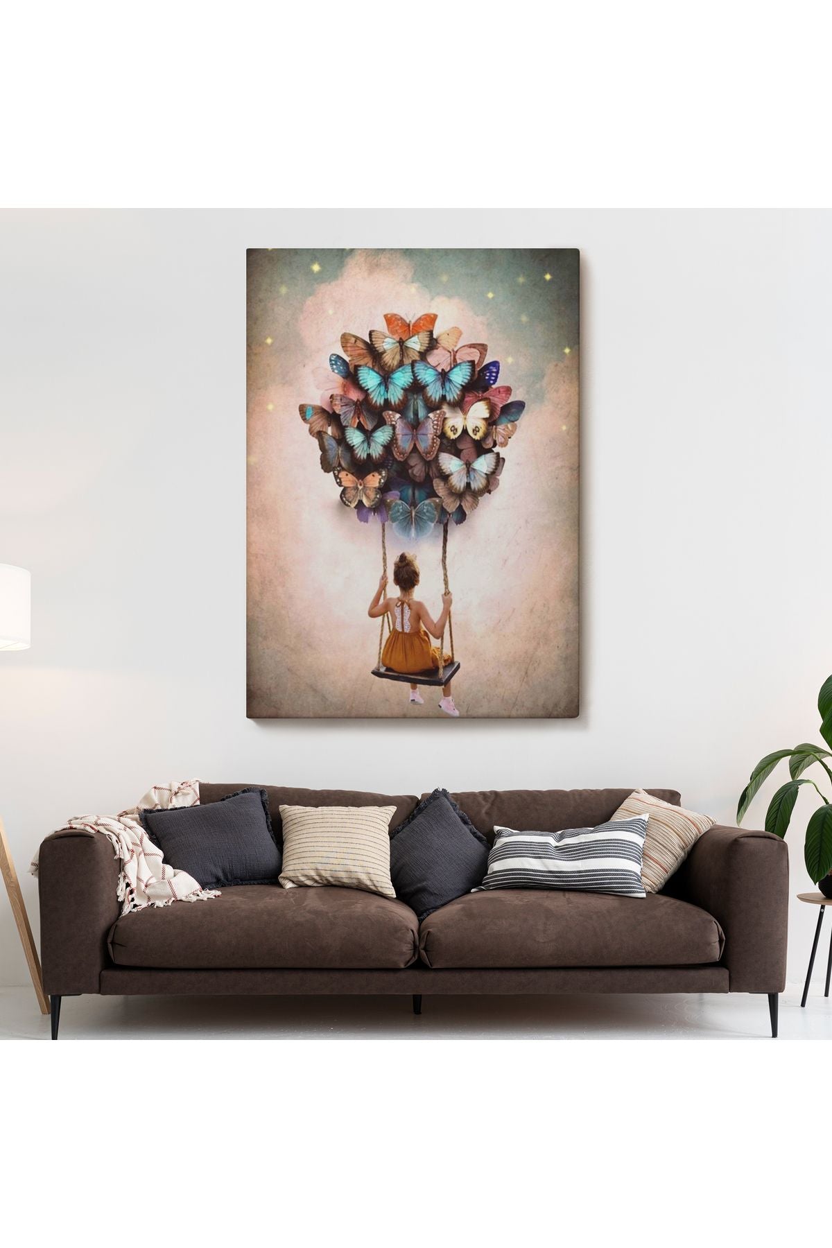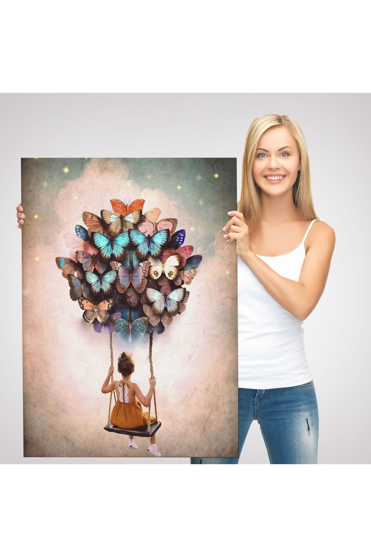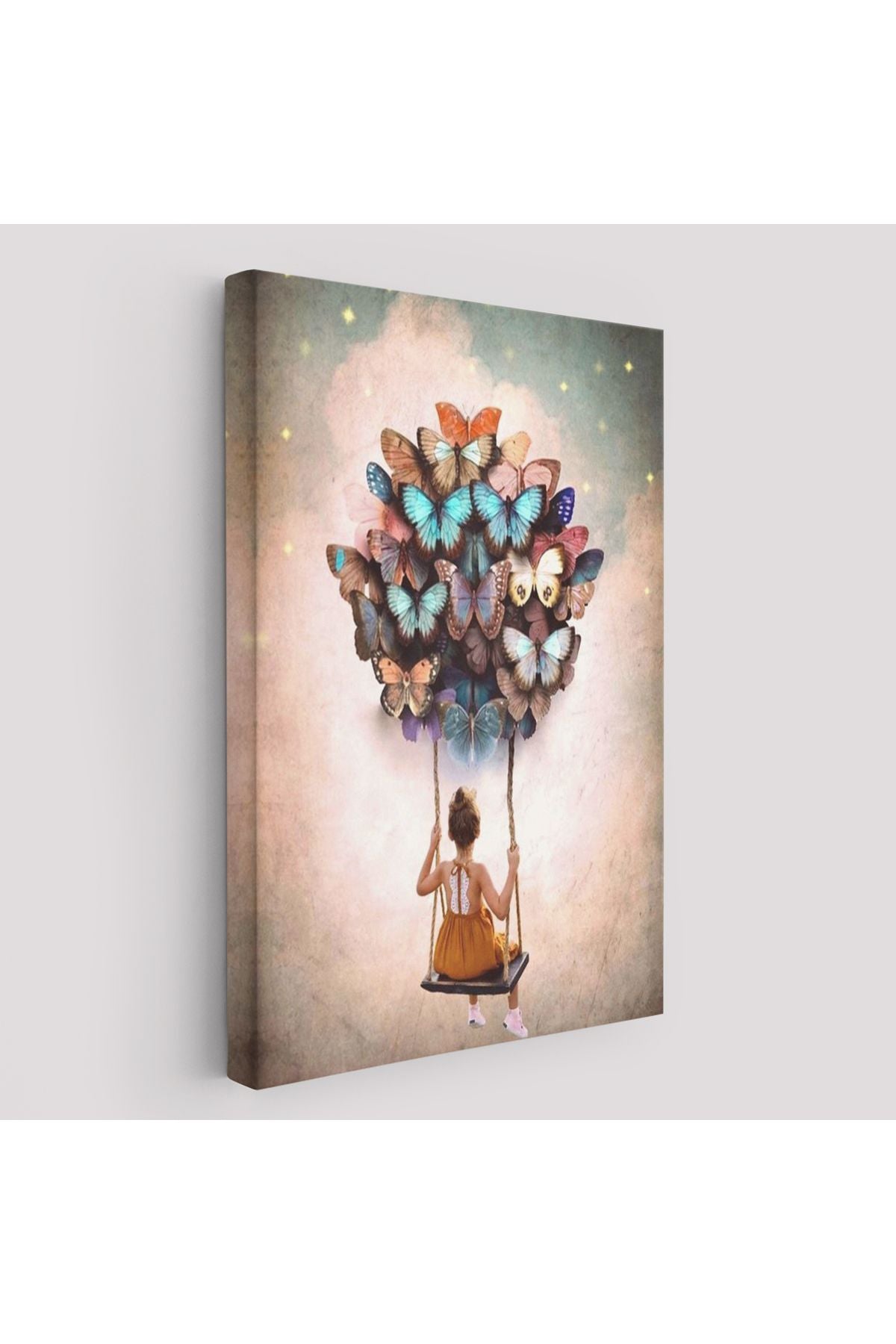 Kelebeklerin Uçurduğu Kız Çocuğu Duvar Tablosu-6094