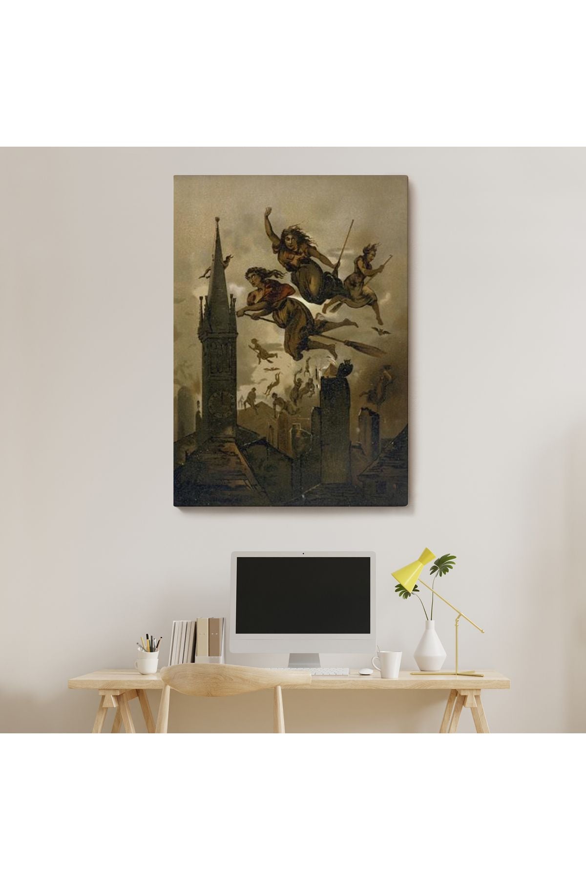 Süpürgelerindeki Cadılar Evlerinin Çatılarının Üzerinden Uçuyor Duvar Tablosu-6118