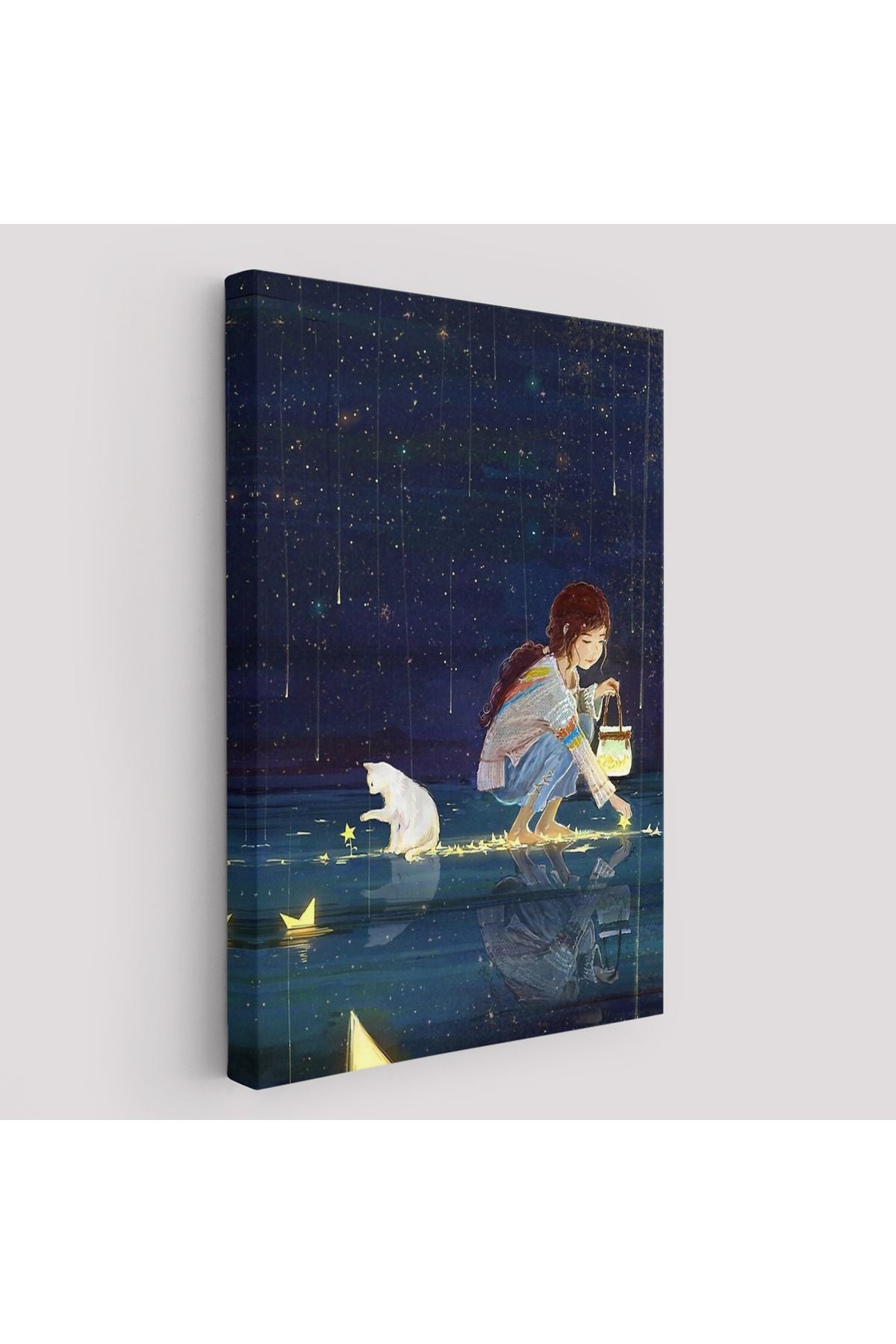 Lsm Seri001 Yıldız Toplayan Kız ve Kedi Dekoratif Duvar Tablosu-6129