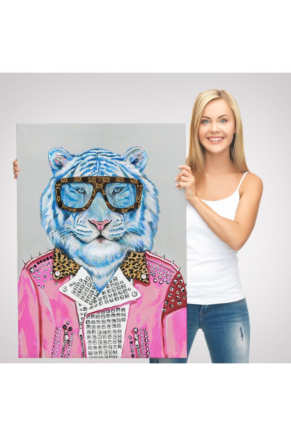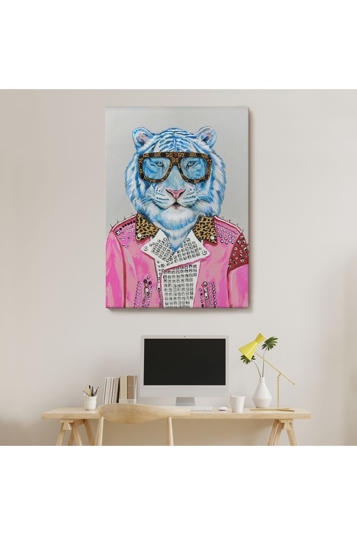 SZ KVS1-Dekoratif Duvar Tablosu-Pembe Ceketli Kaplan Kanvas Tablo 6156