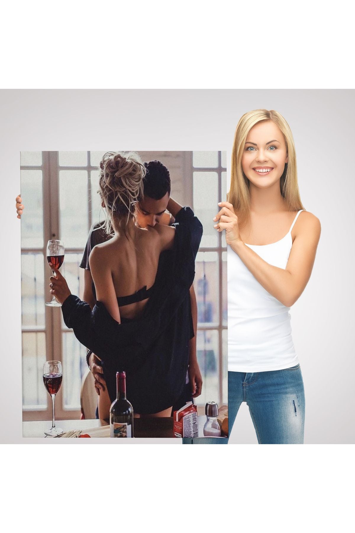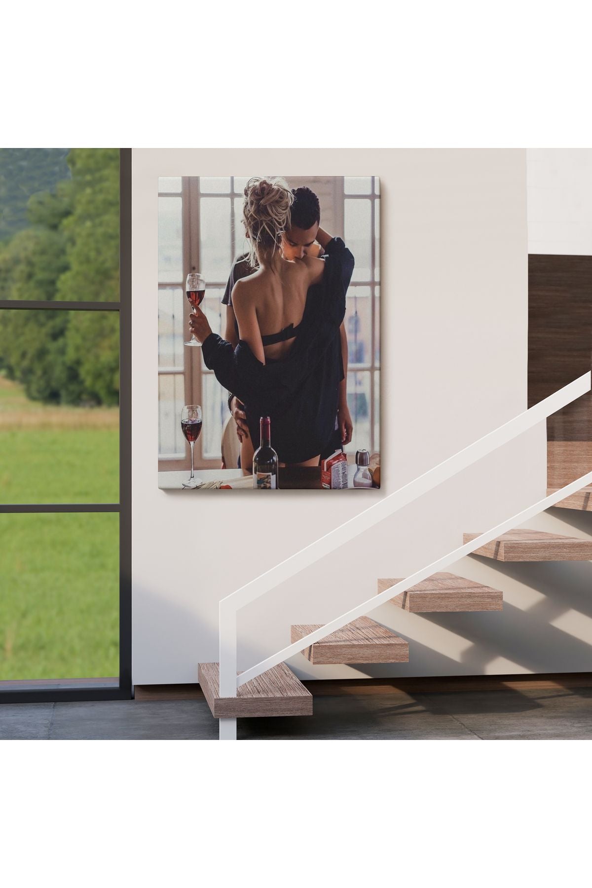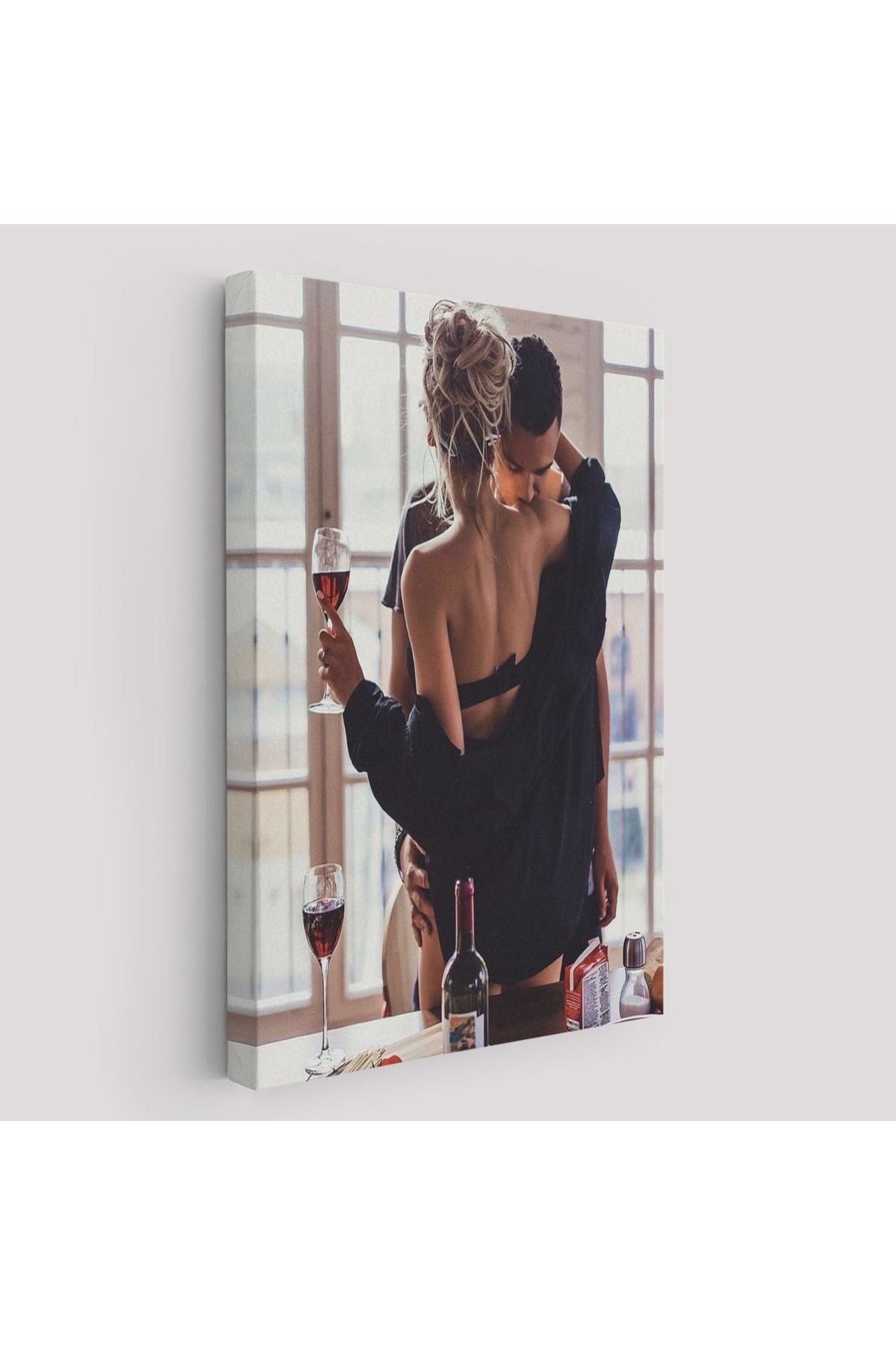 Kırmızı Şarap İçen Sevgililer Dekoratif Duvar Tablosu-6158