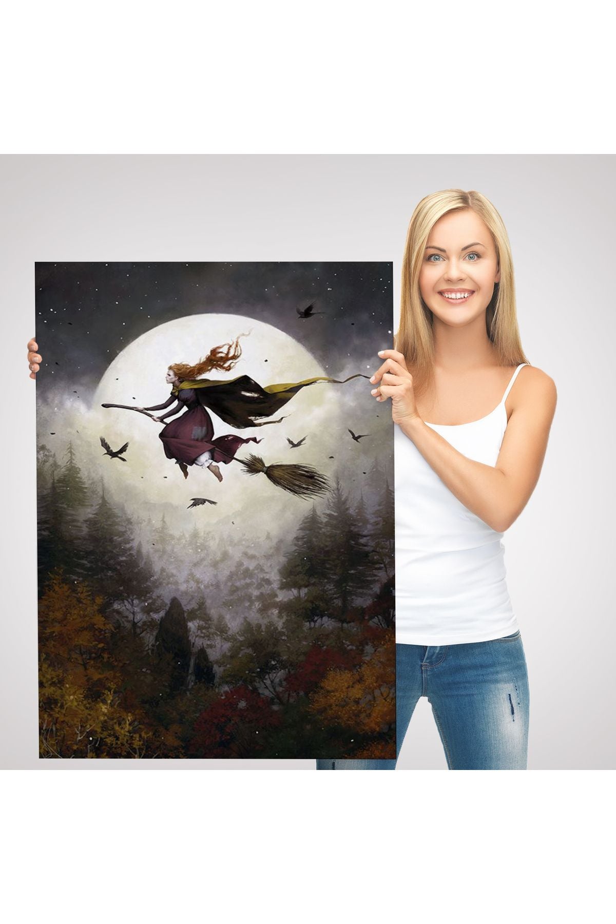 Süpürge ile Uçan Cadı, Cadılar Bayramı Helloven Duvar Tablosu -6159