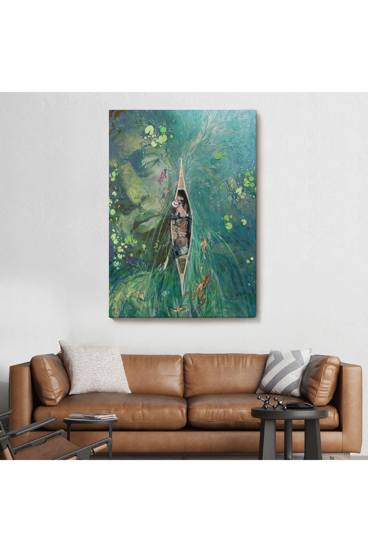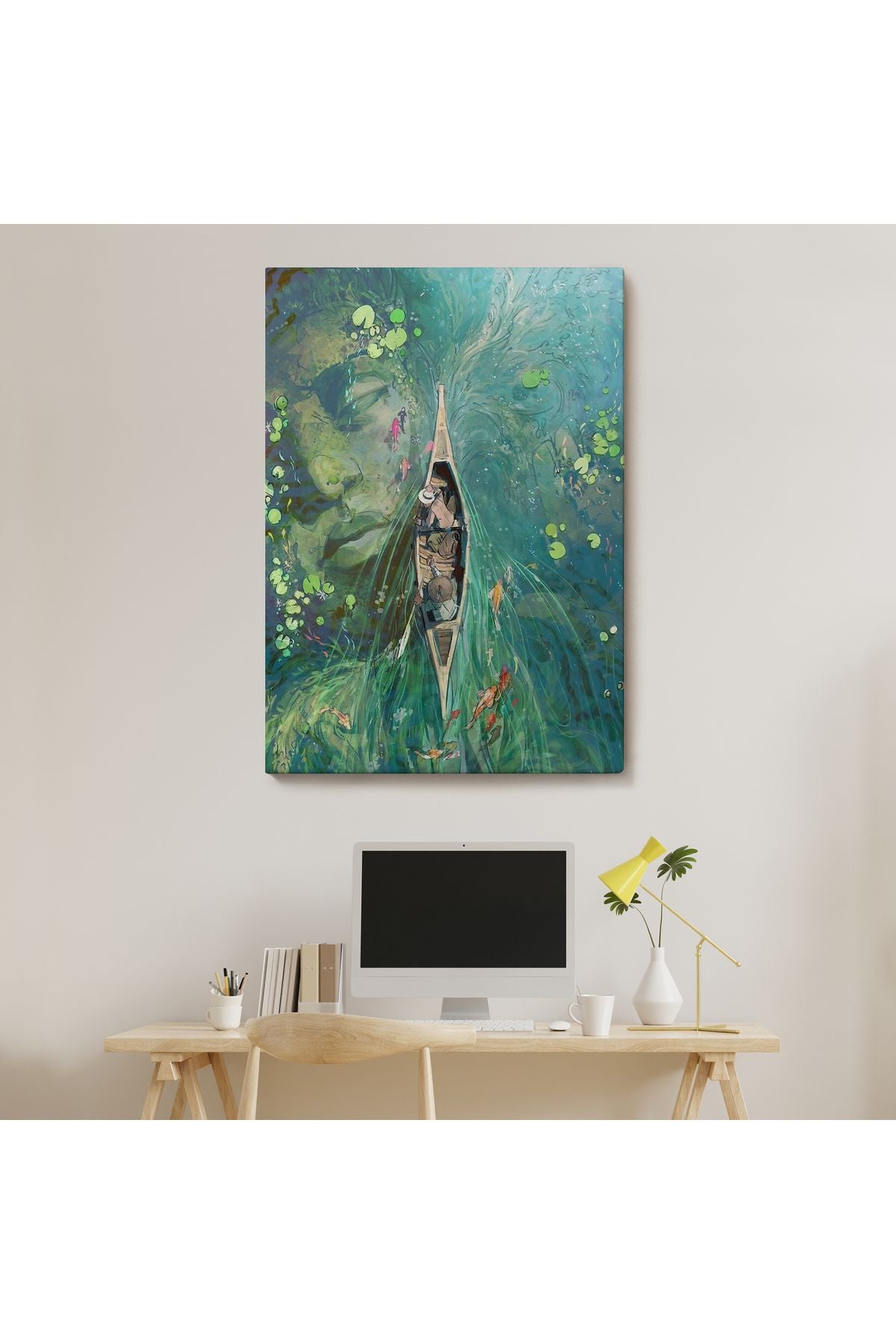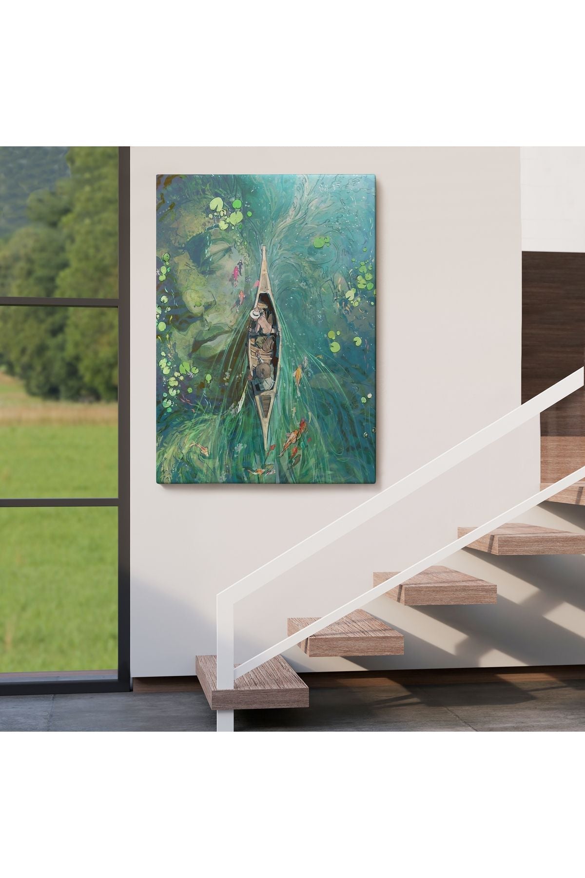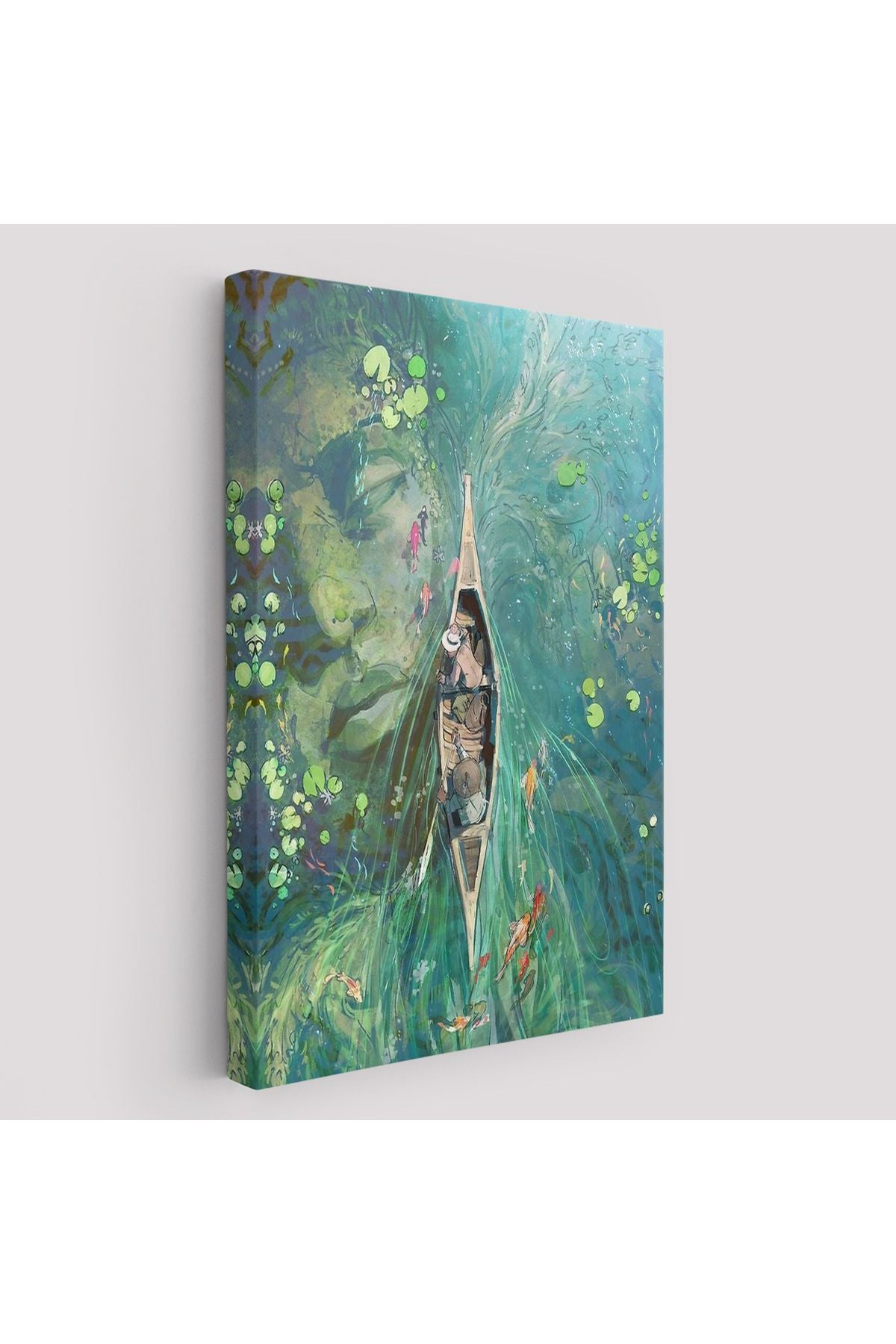 Lilyumların Altında Kano ile Gezen Duvar Tablosu-6163