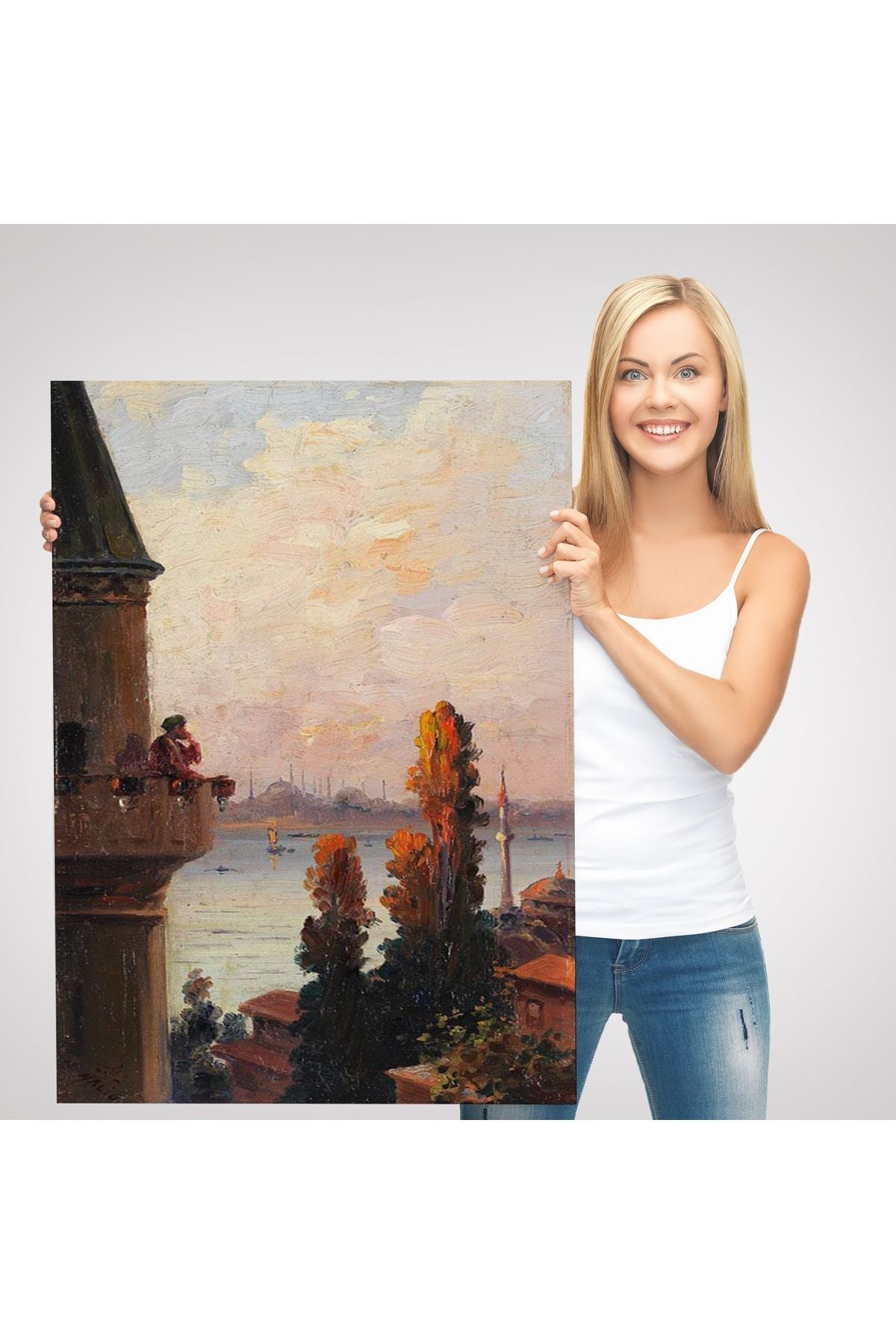 Galata Kulesinde Ezan Okudan Adam Duvar Tablo-6177