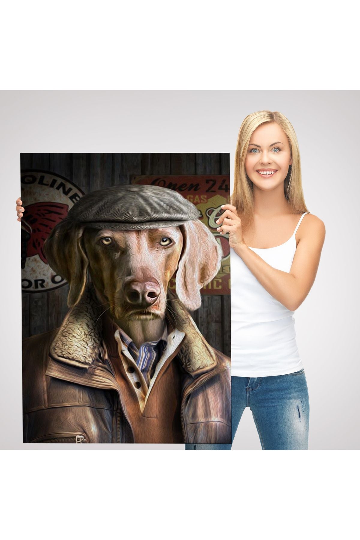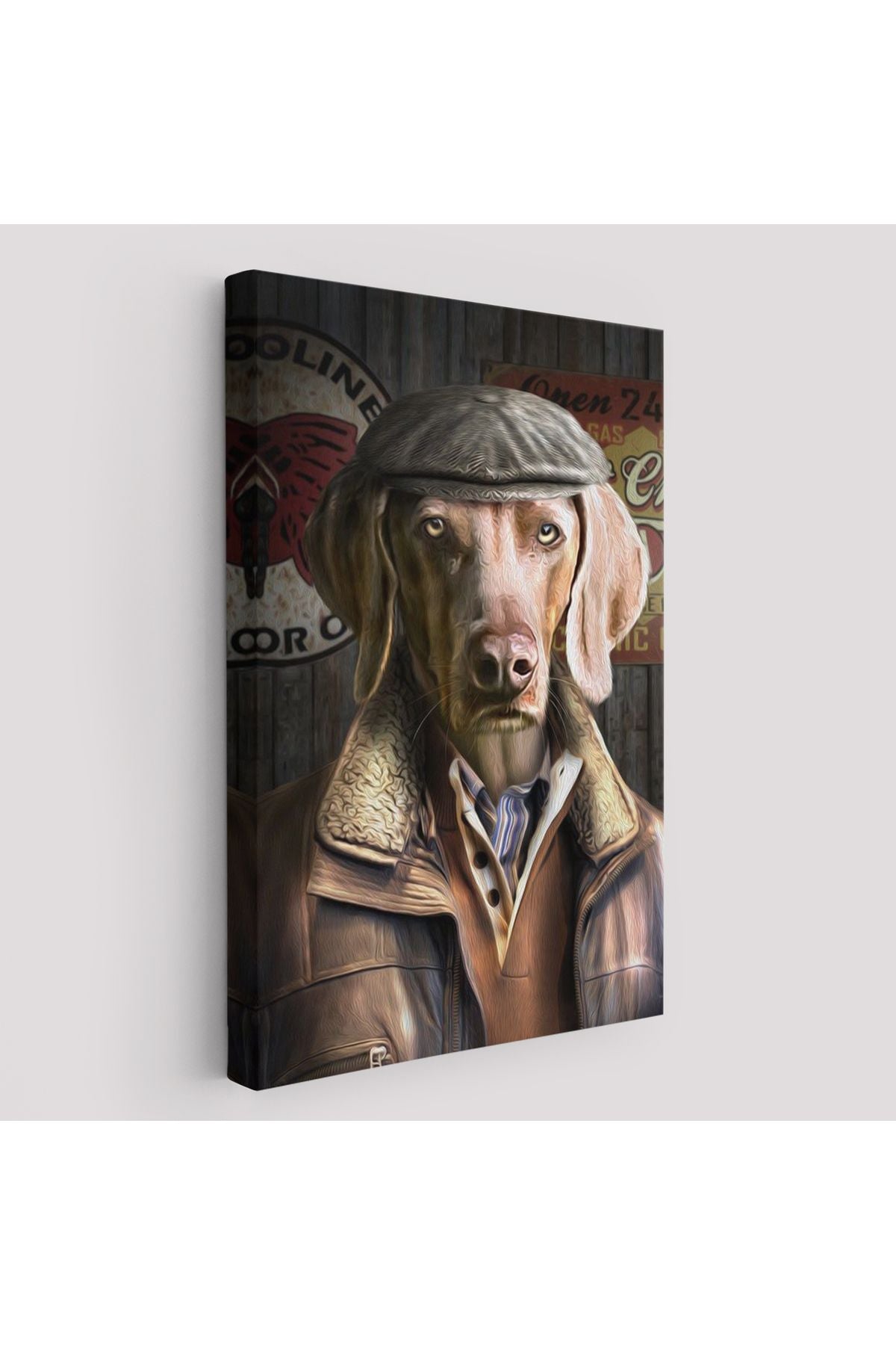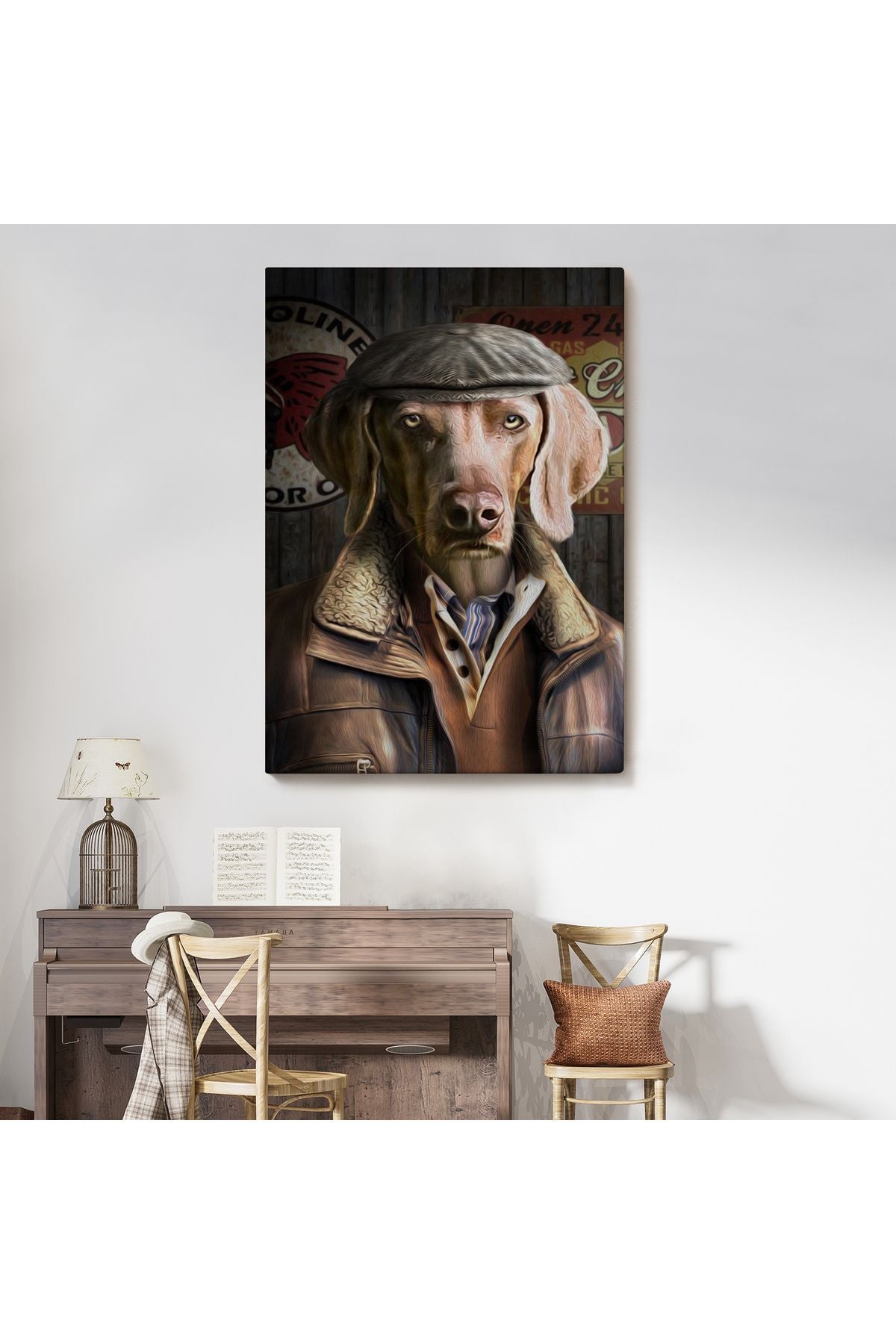 İnsan Kıyafetli Kasketli Köpek Dekoratif Duvar Tablosu -6178
