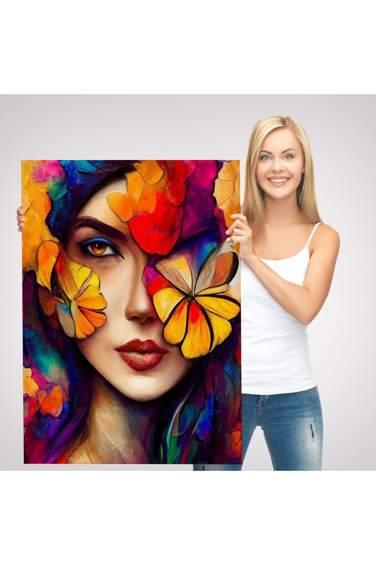 Çiçek ve Kadın Temalı Dekoratif Duvar Tablosu-6192