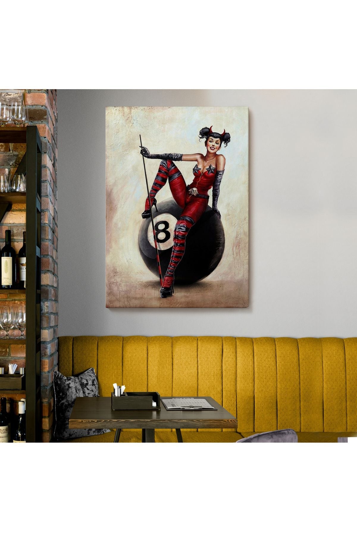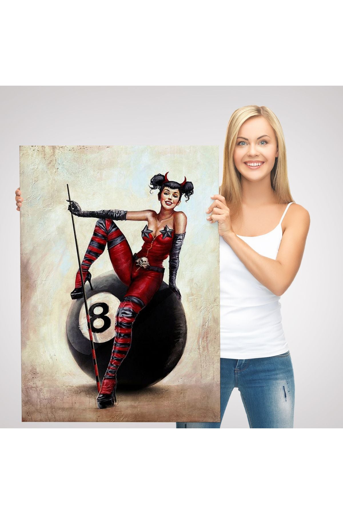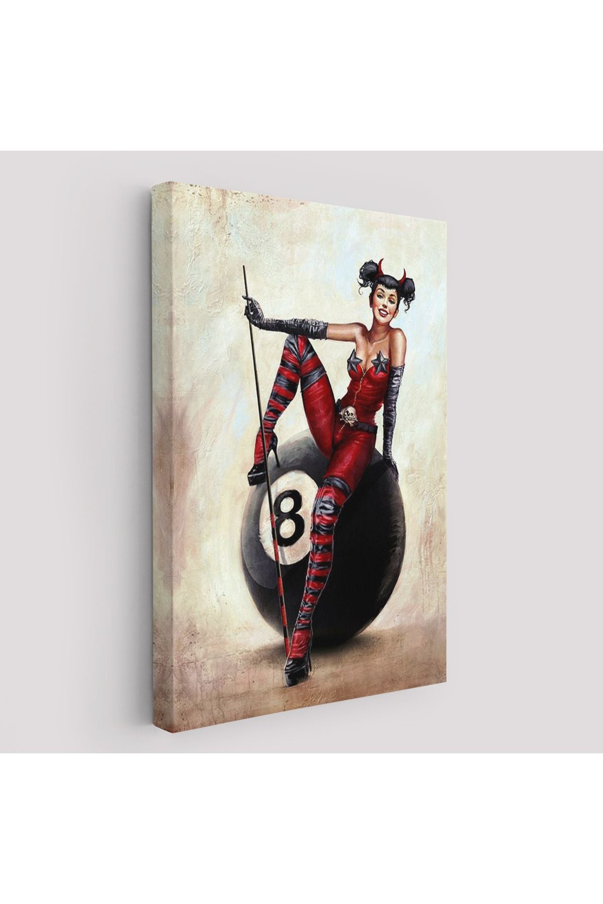Bilardo Topunun Üstünde Oturan Pub Kızı Duvar Tablosu-6230