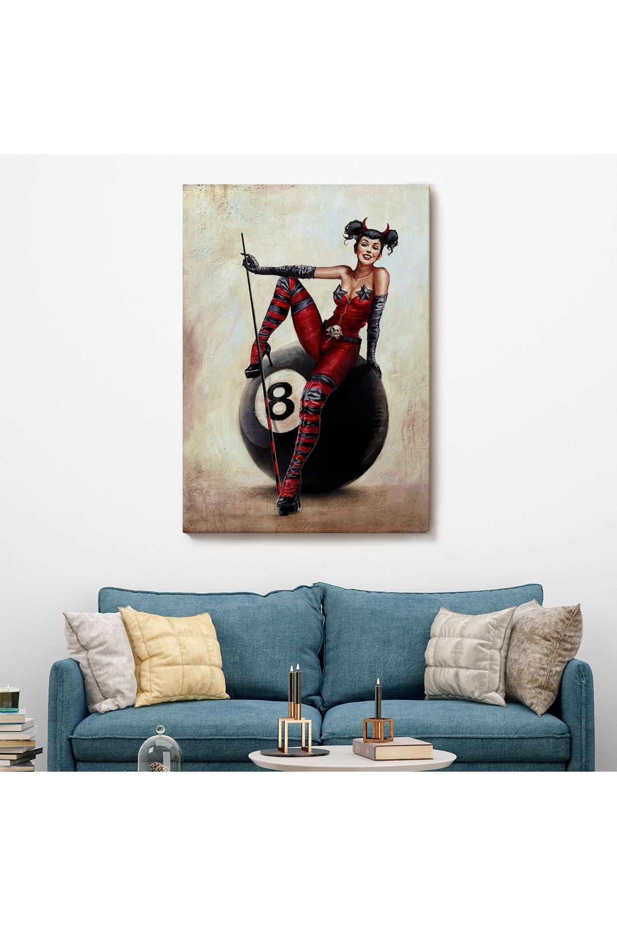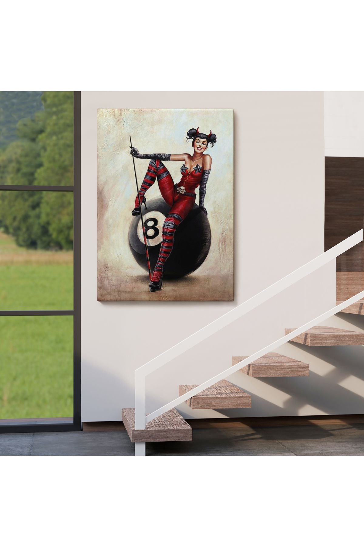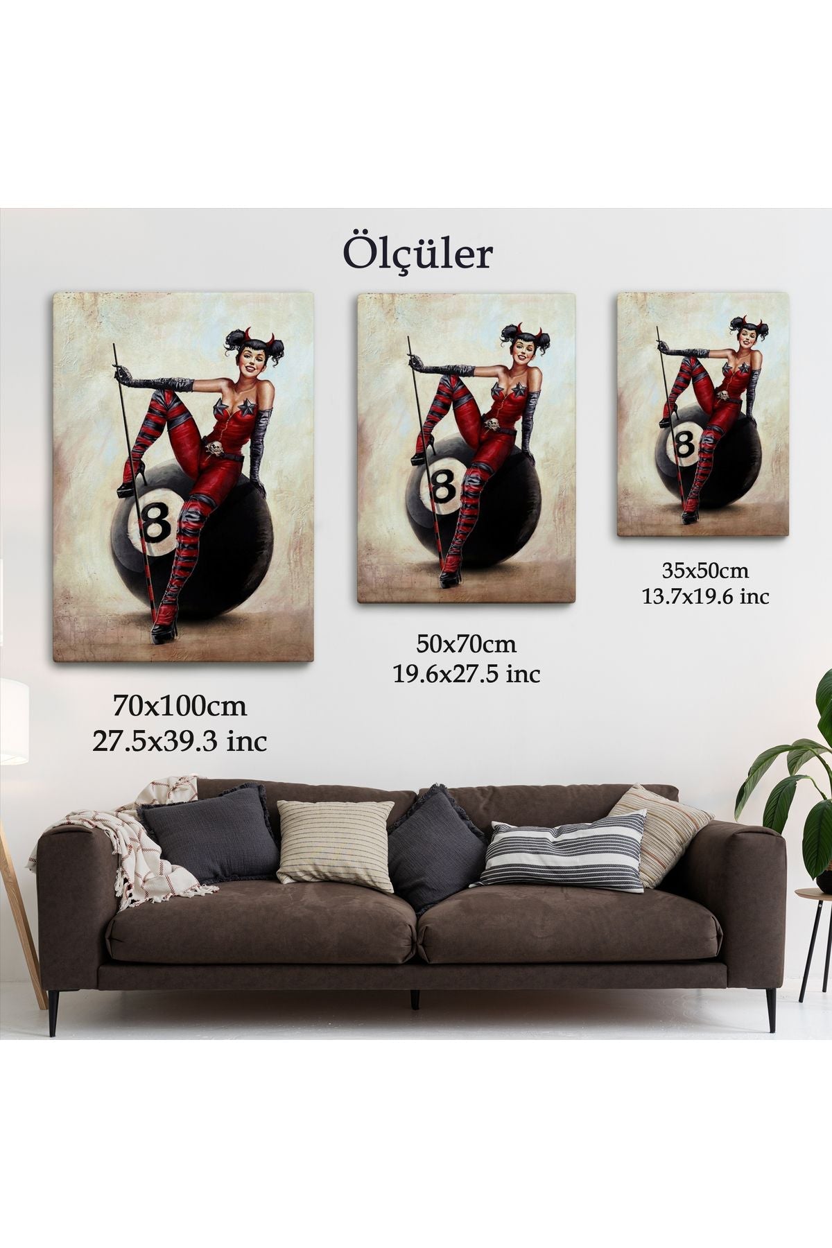 Bilardo Topunun Üstünde Oturan Pub Kızı Duvar Tablosu-6230