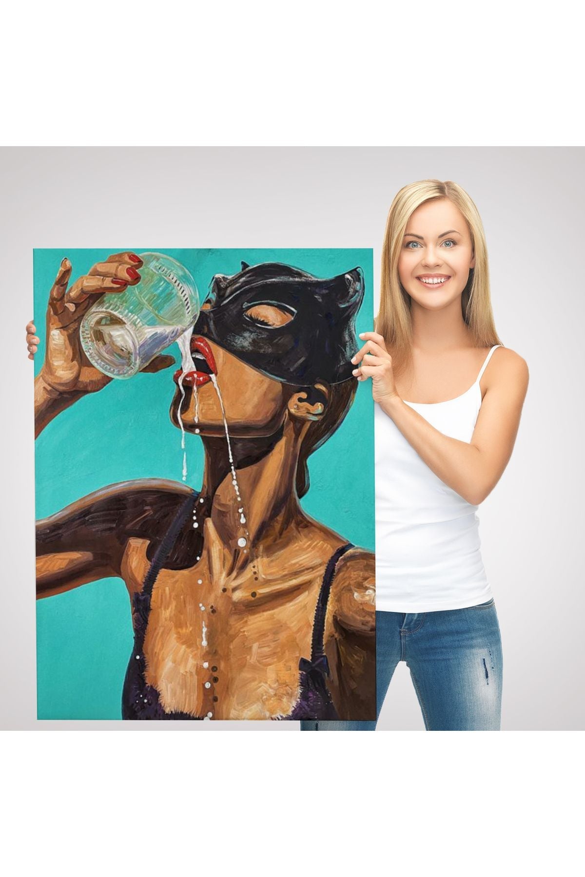 Süt İçen Sexi Kadın Dekoratif Duvar Tablosu-6232