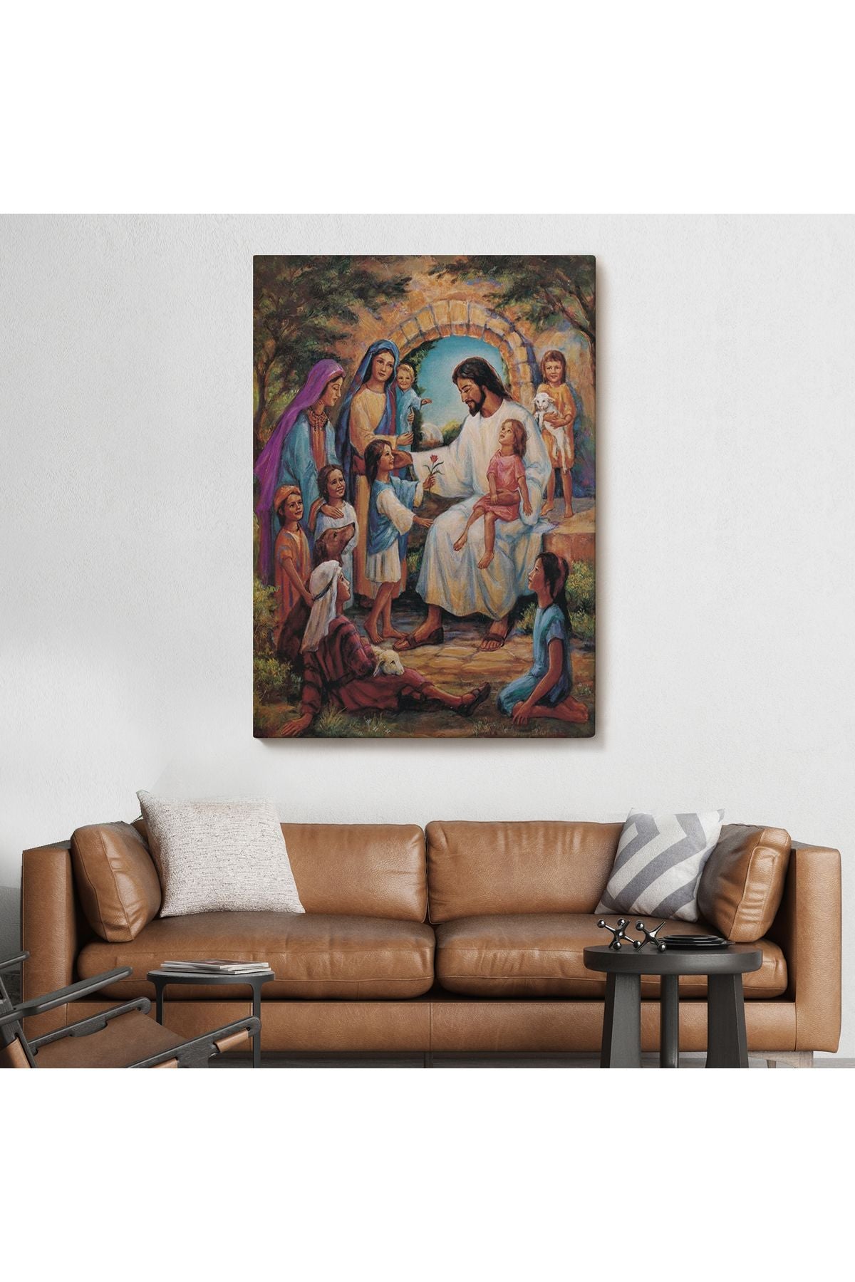 İsa Mesih ve Çocuklar Dekortif Duvar Tablosu-6236