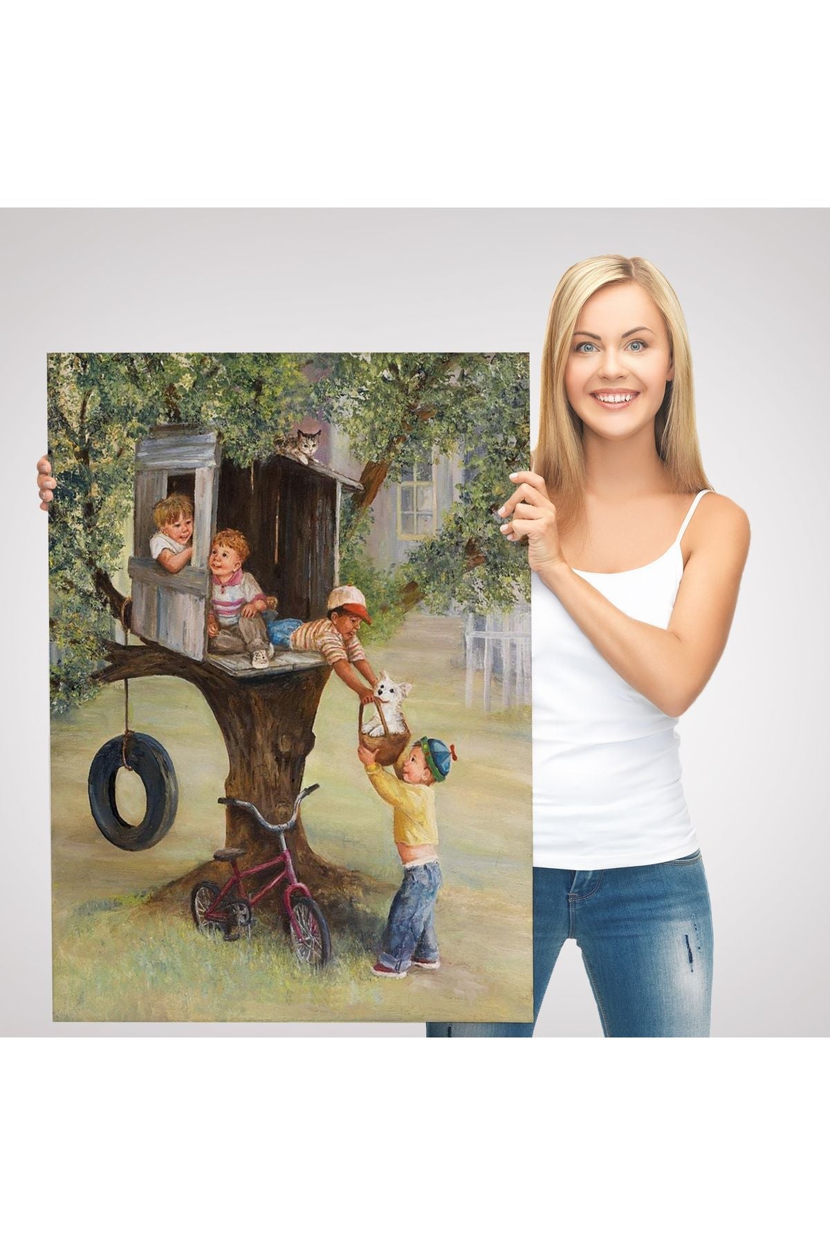Dianne Dengel Ağaç Ev'de Oynayan Çocuklar Tablosu-6262