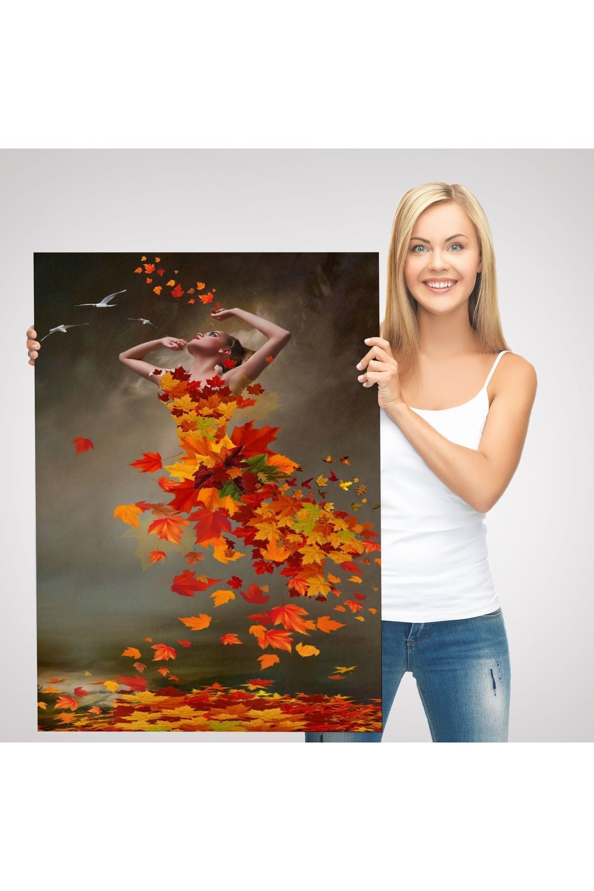 Yaprak Elbiseli Kadın Tablosu-6272