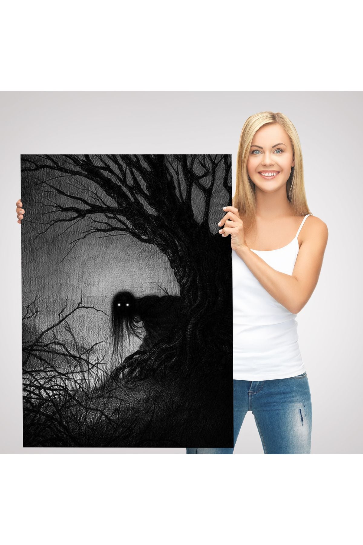 Karanlık İçindeki Korkunç Bir Çift Göz Tablosu-6288