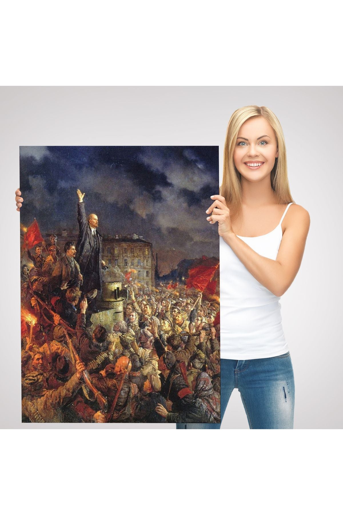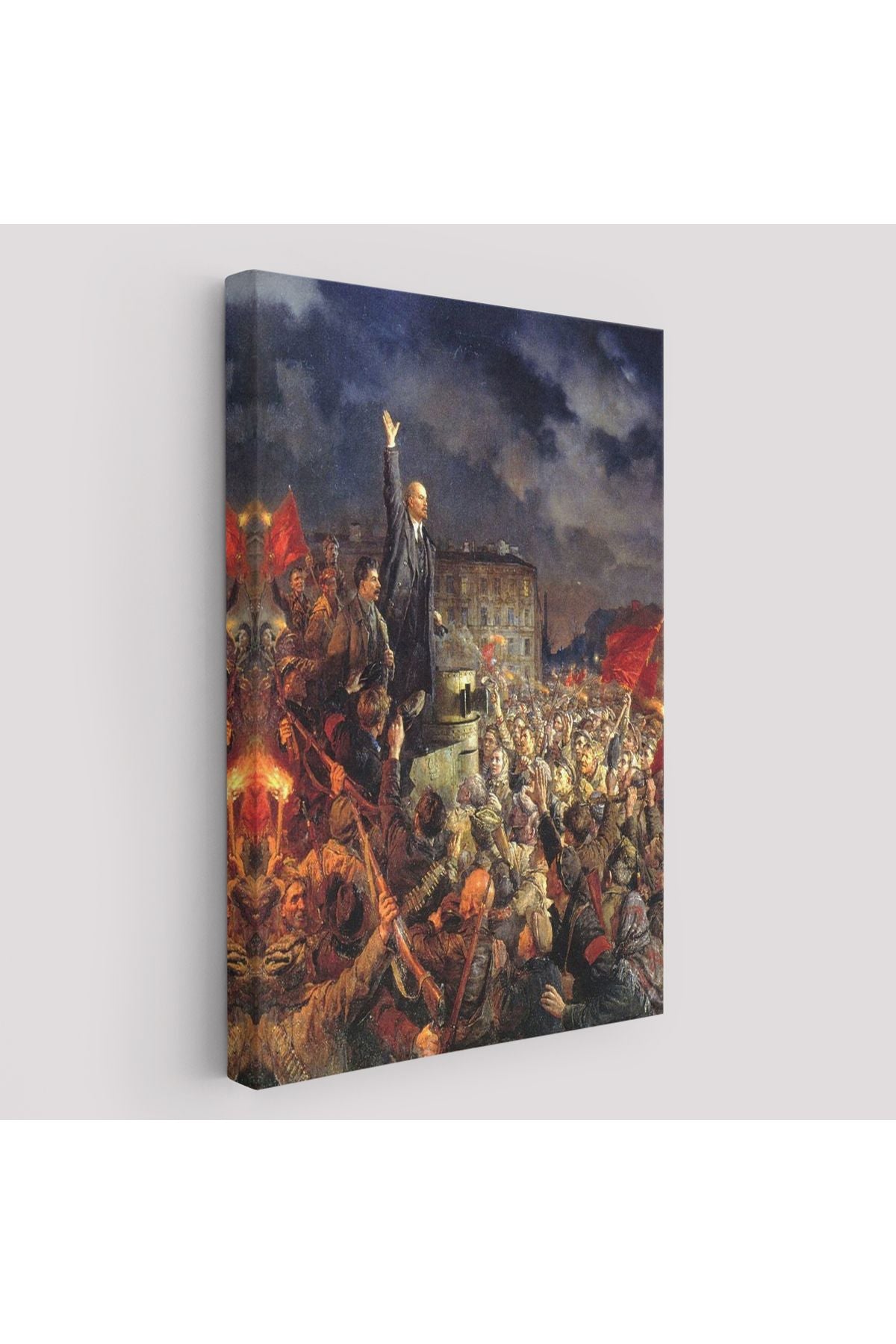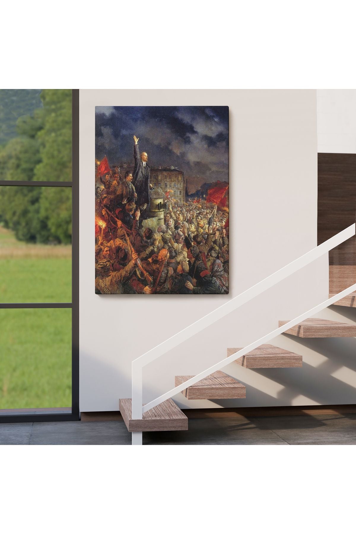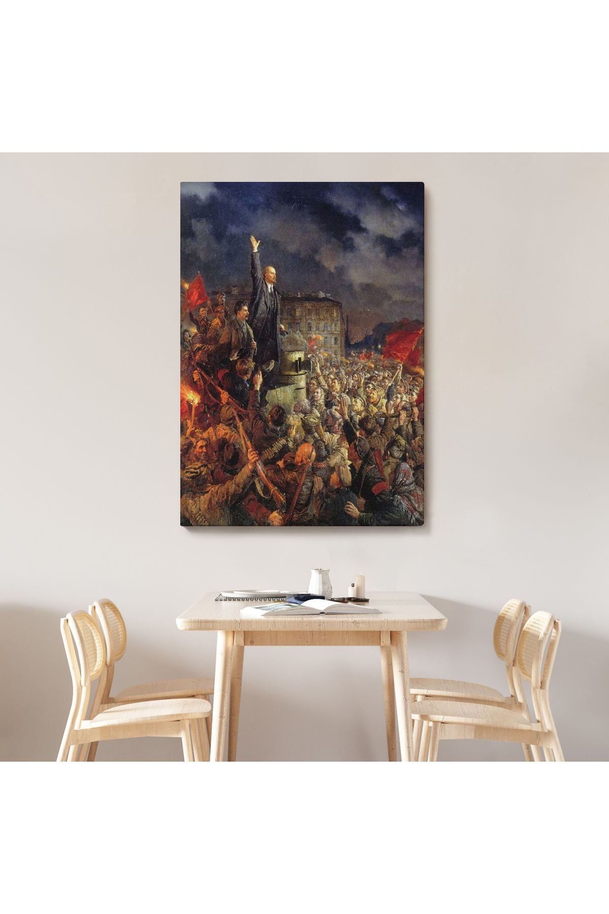 Vladimir Ilyic Lenin ve Josef Stalin Ekim Devrimi Sırasında Duvar Tablosu-6301