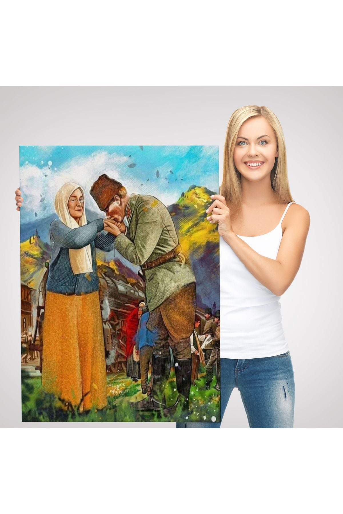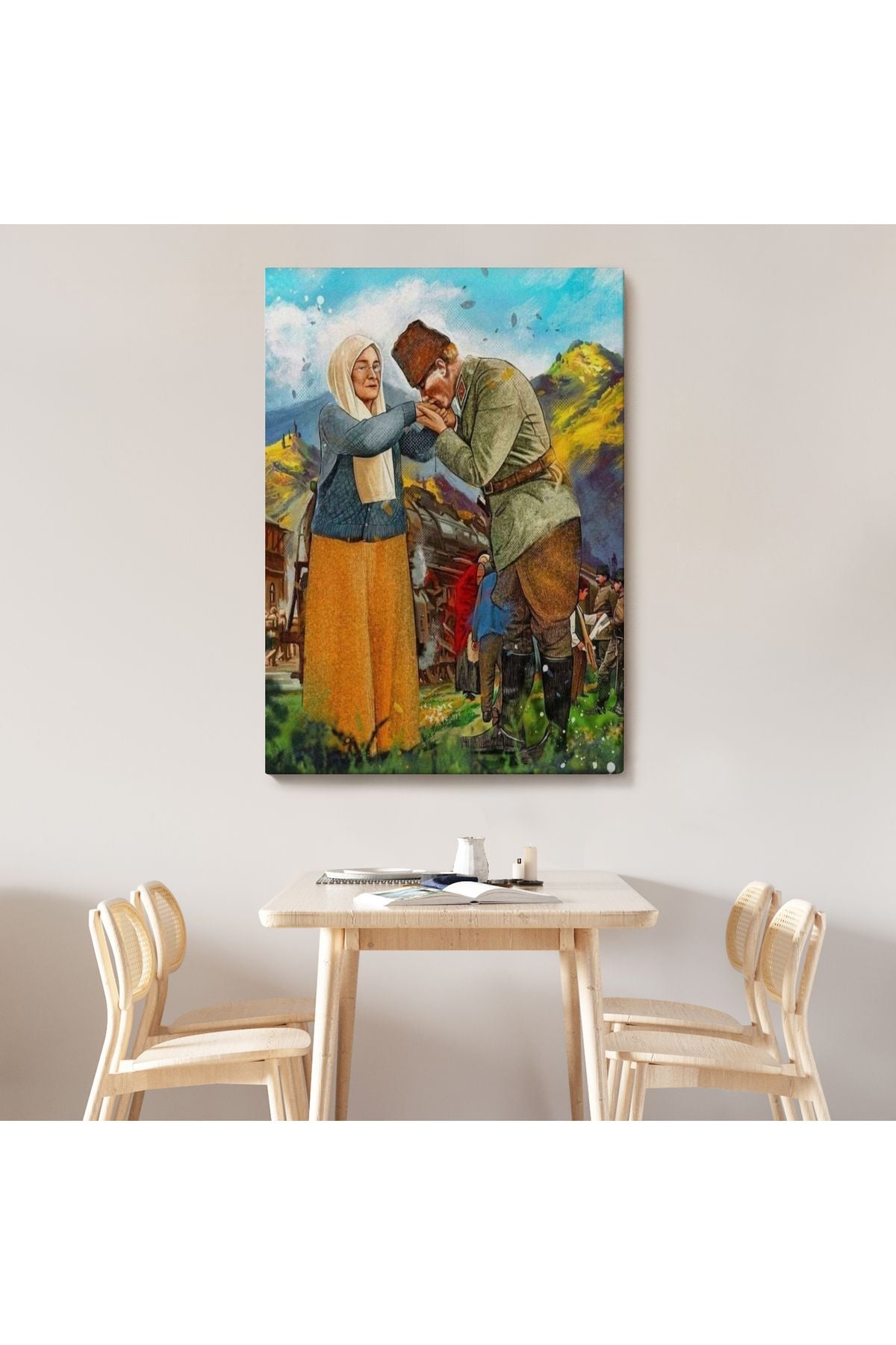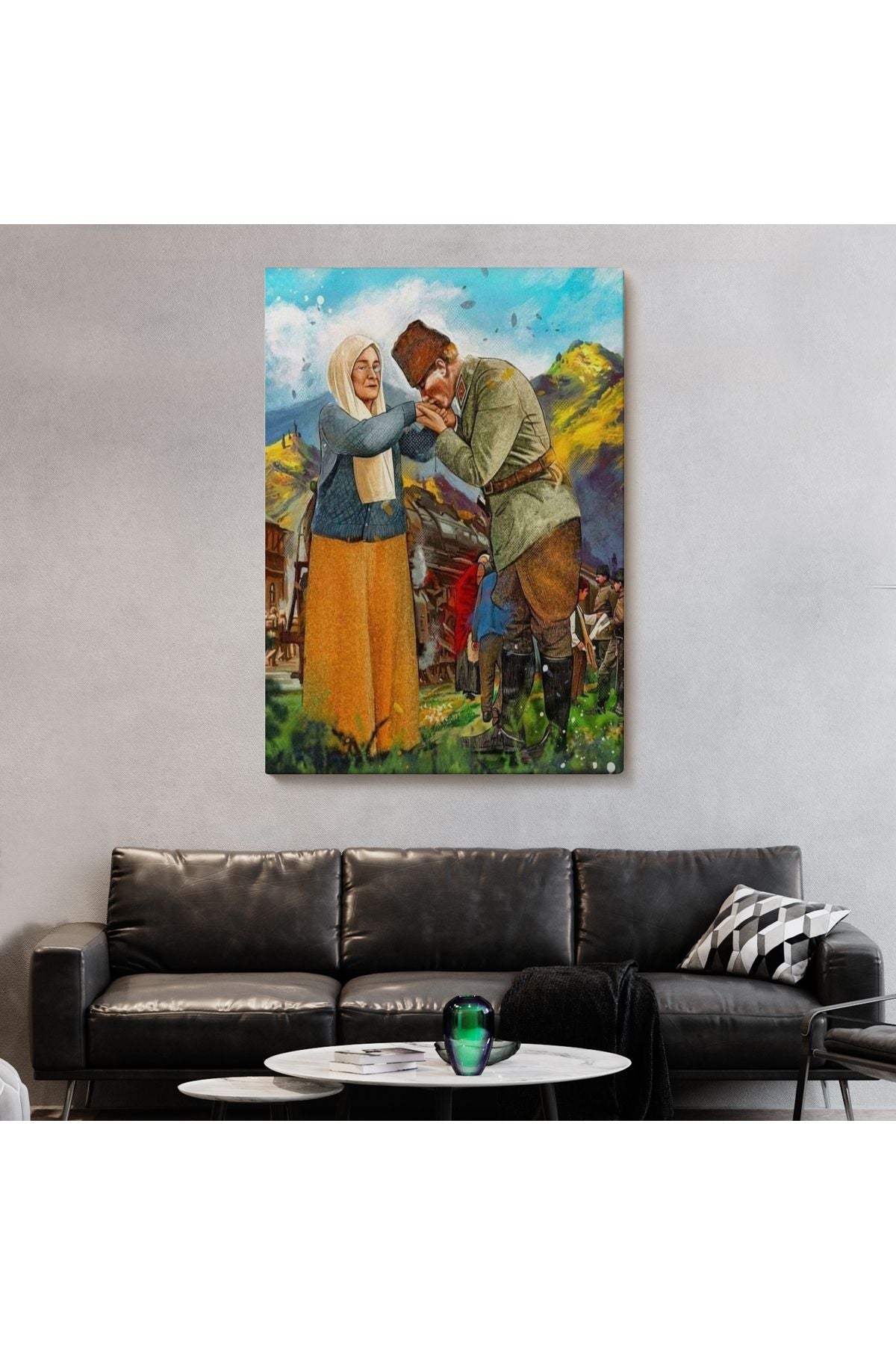 Atatürk Annesi Zübeyde Hanımın Elini Öperken Duvar Tablosu-6302