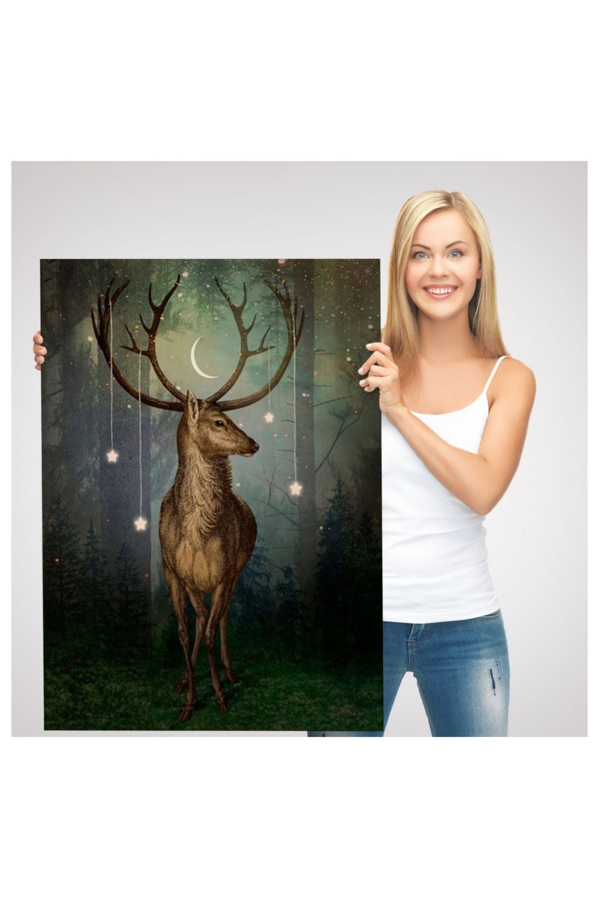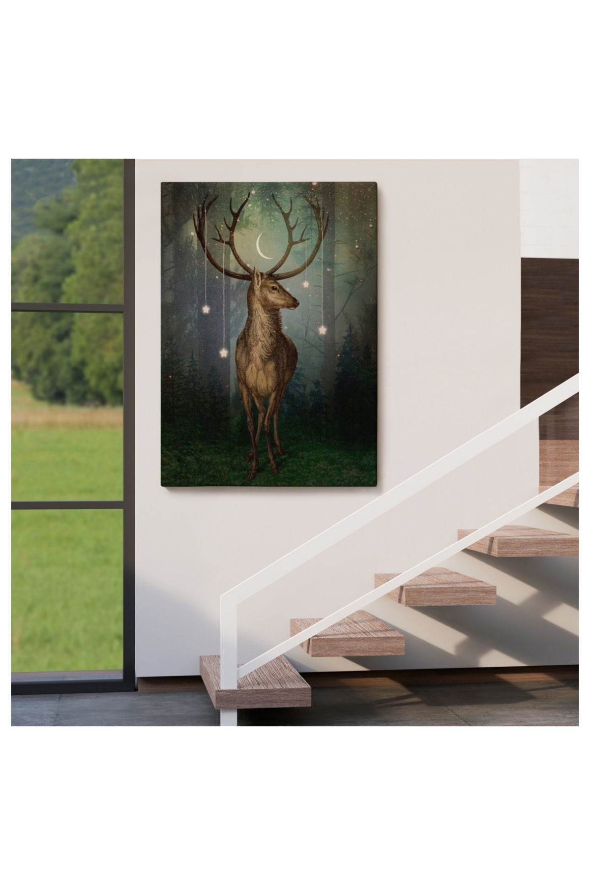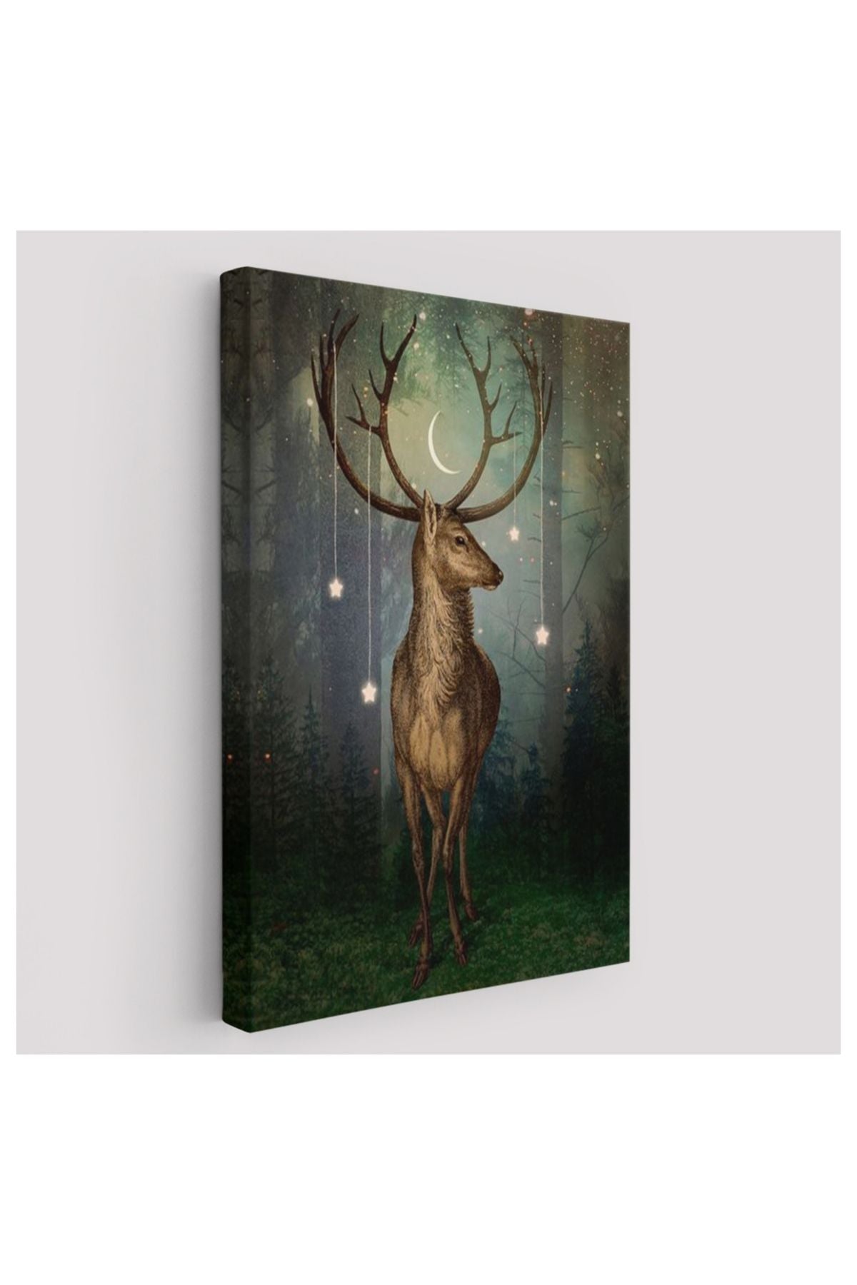 Kanvas, Duvar Tablosu, Dekoratif, Gece Vakti Orman'daki Geyik 6309 EGKNV