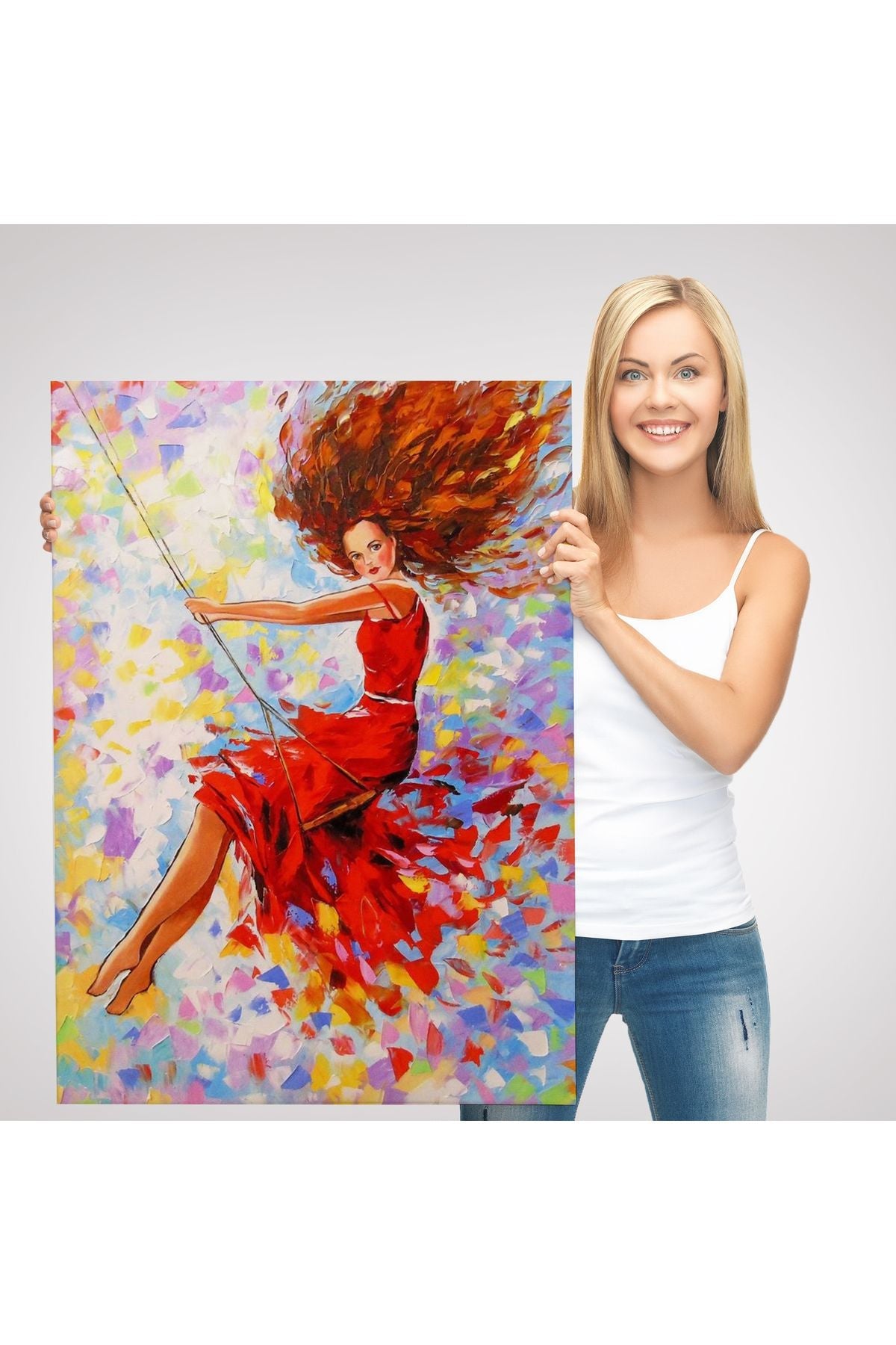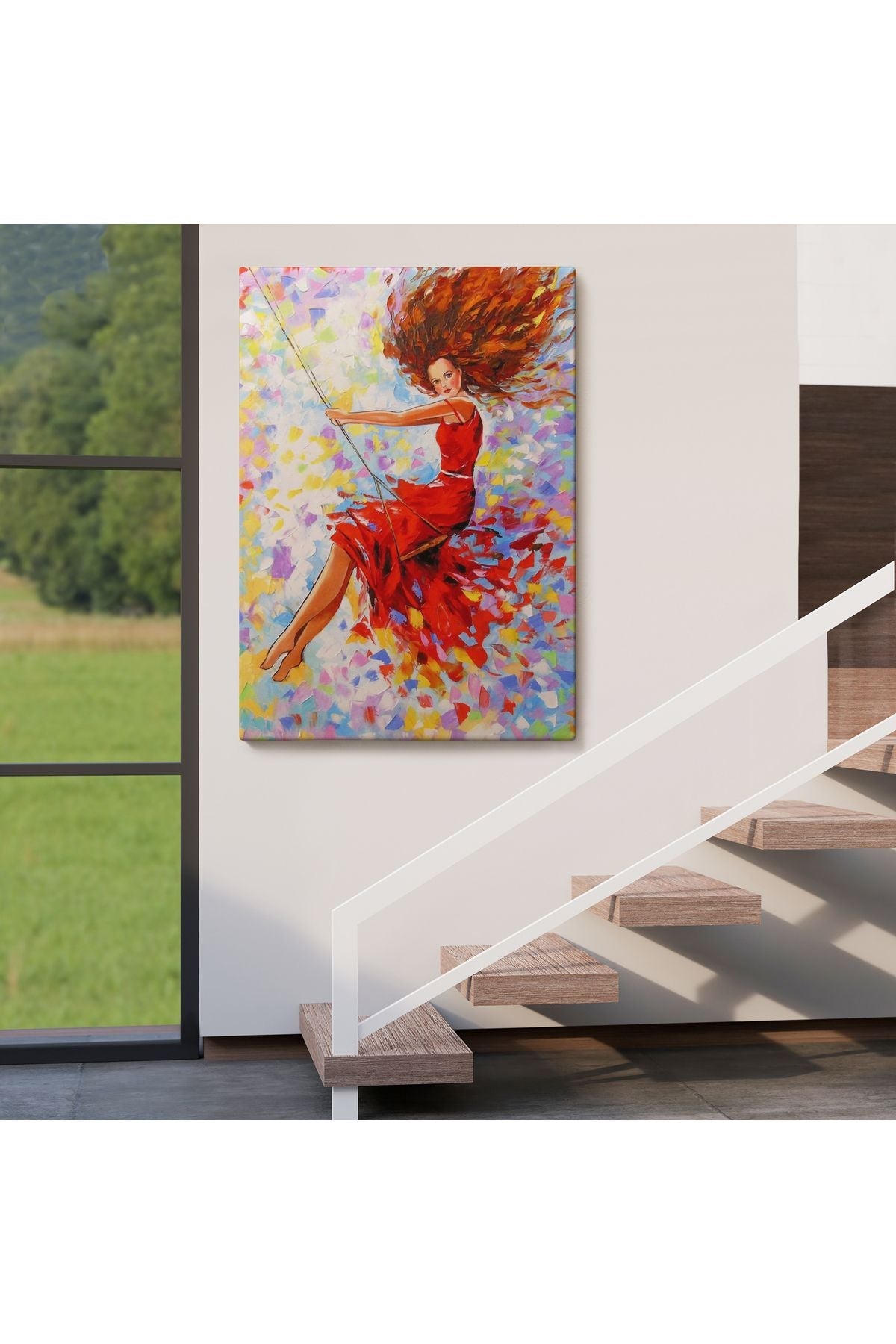 Salıncaktaki Kırmızı Elbiseli Kız Tablosu-6317