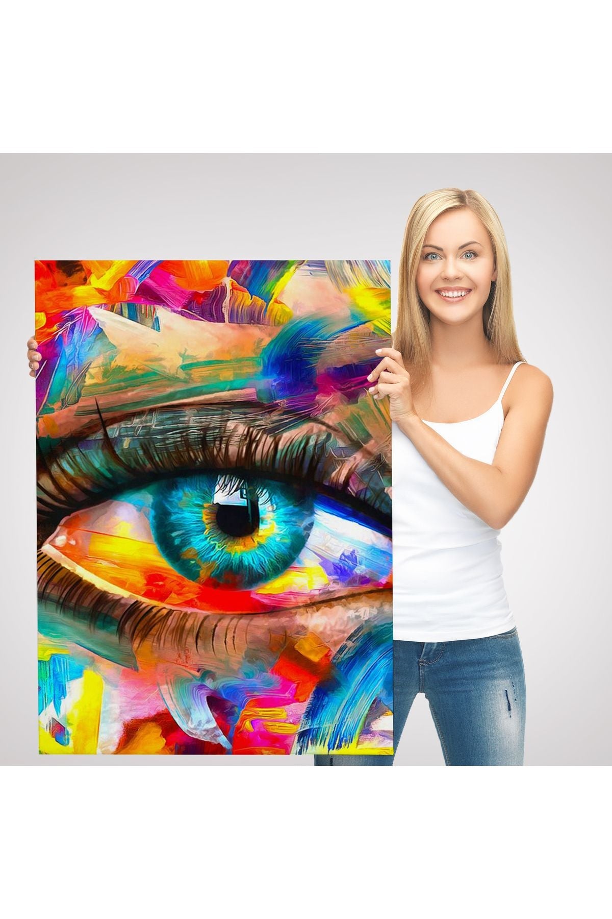 Renkli Yağlıboya Görünümlü Göz Tablosu-6329