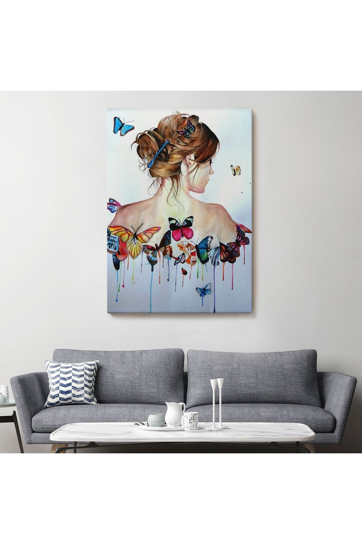 Kanvas Tablo, Duvar Dekoru, Güzel Kadın ve Kelebek Detayları 6330 BUNGKNV