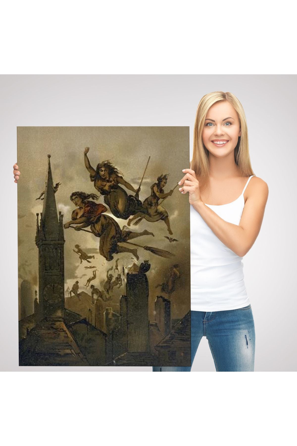 Kasabanın Üzerinde Uçan Çadılar Tablosu, Witches Halloween-6358