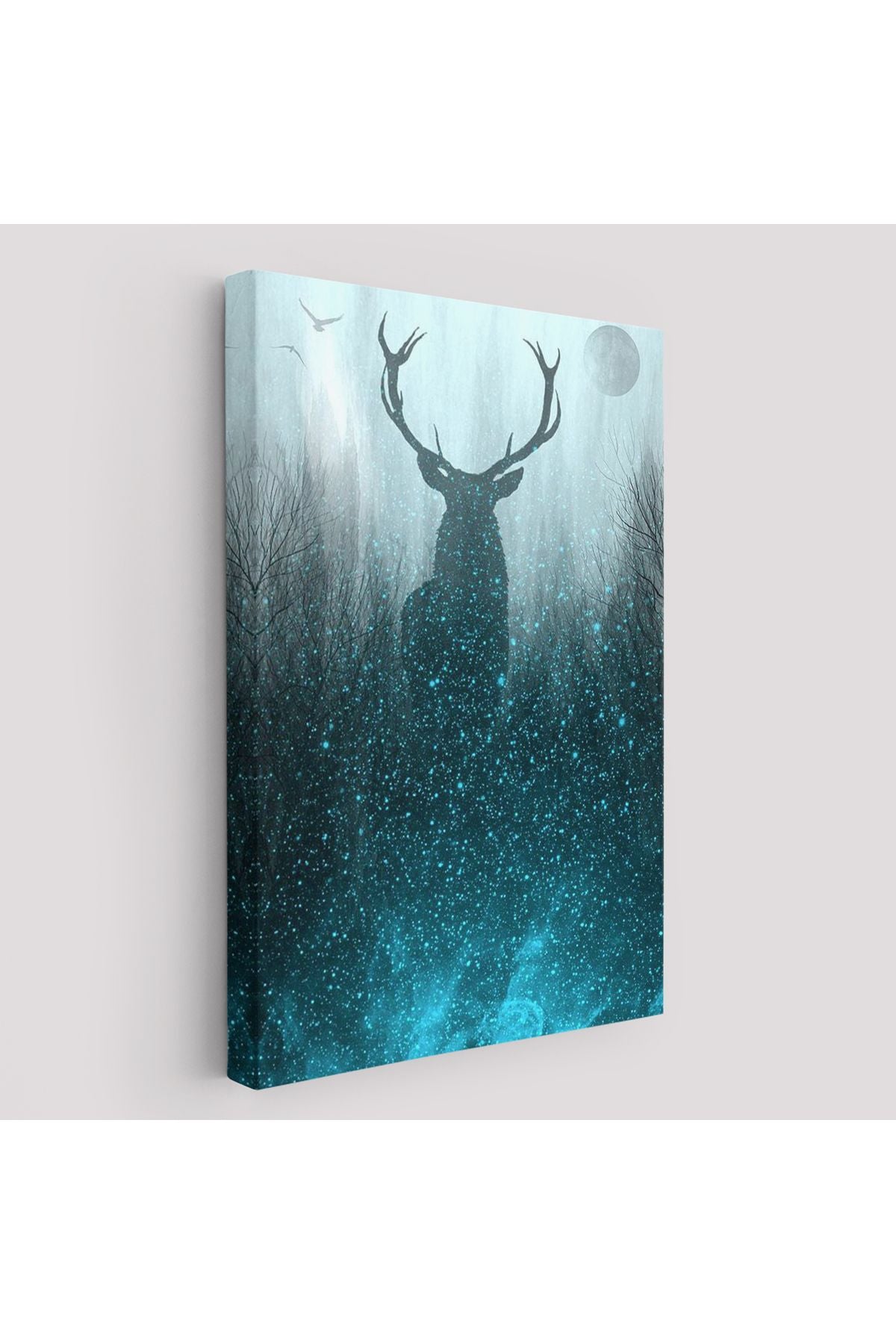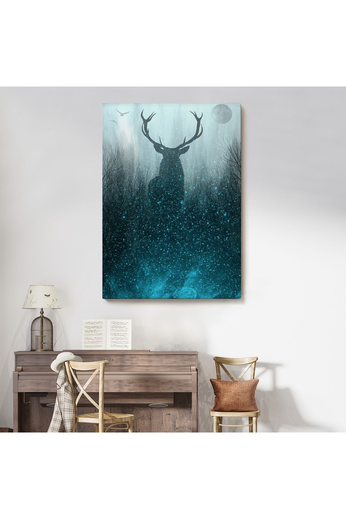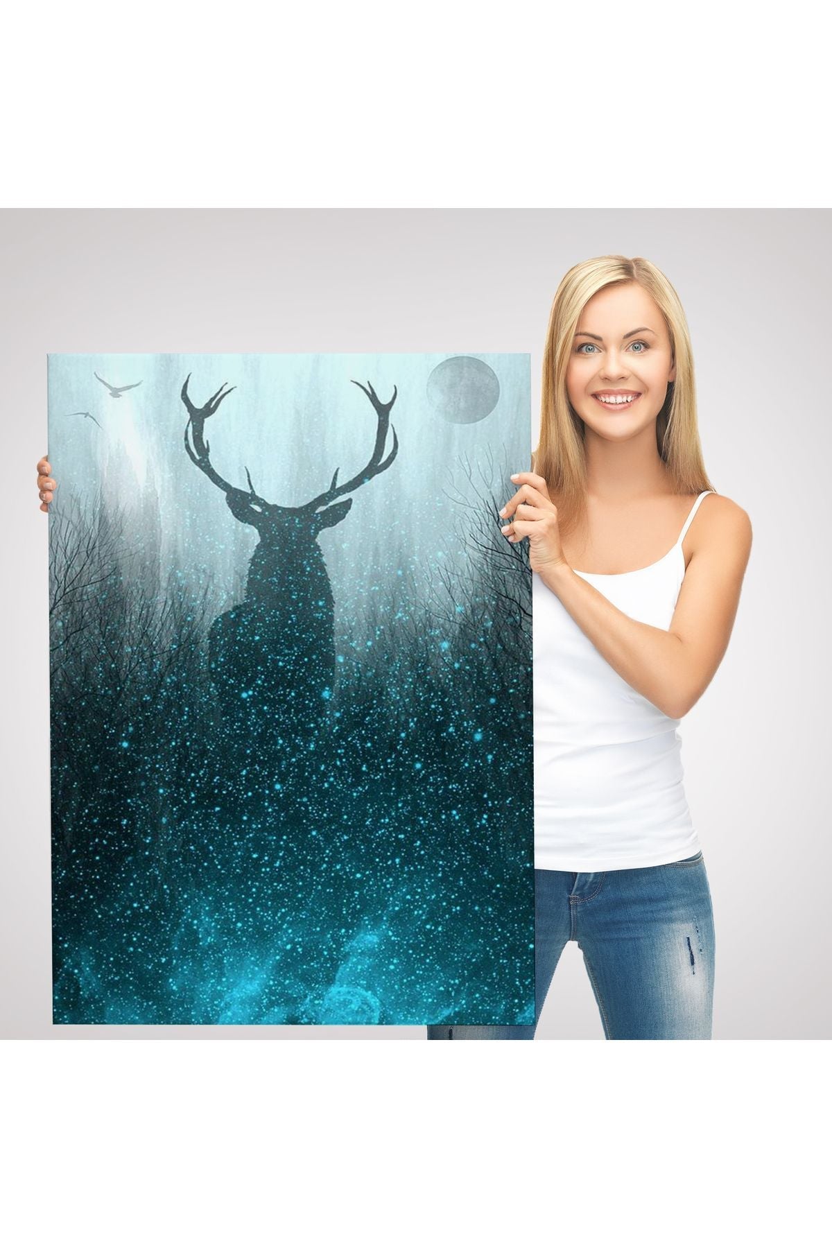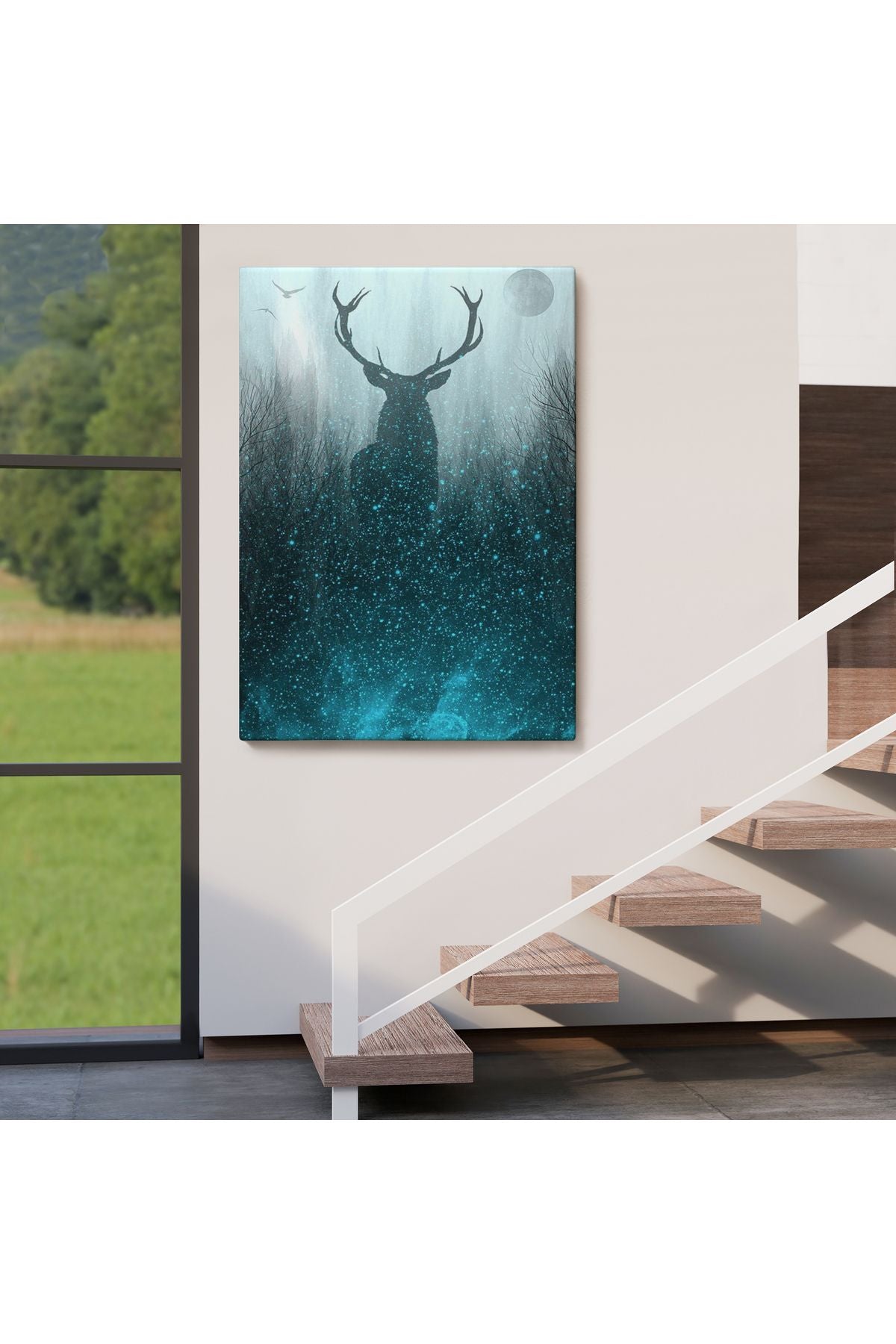 Geyiğin Gece Ormandaki Silüeti Duvar Tablosu-6369