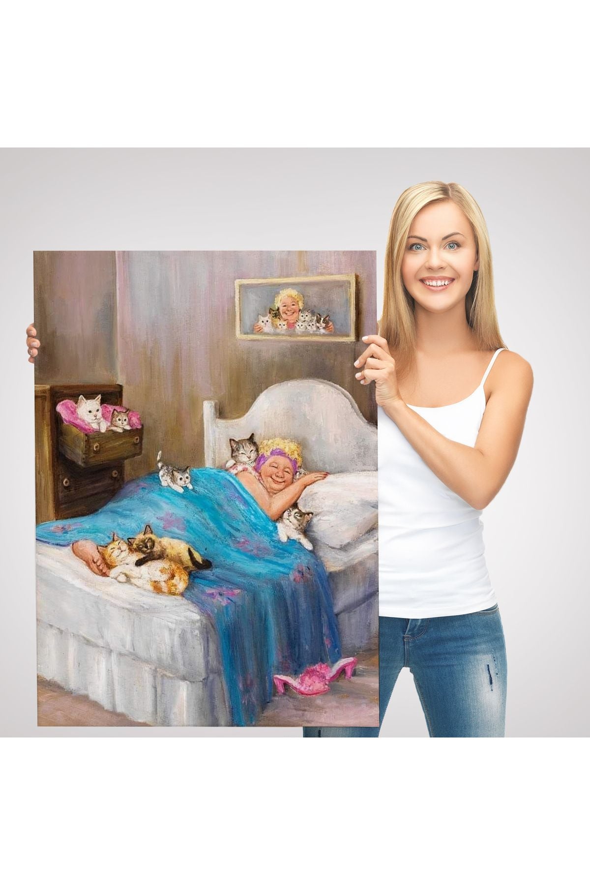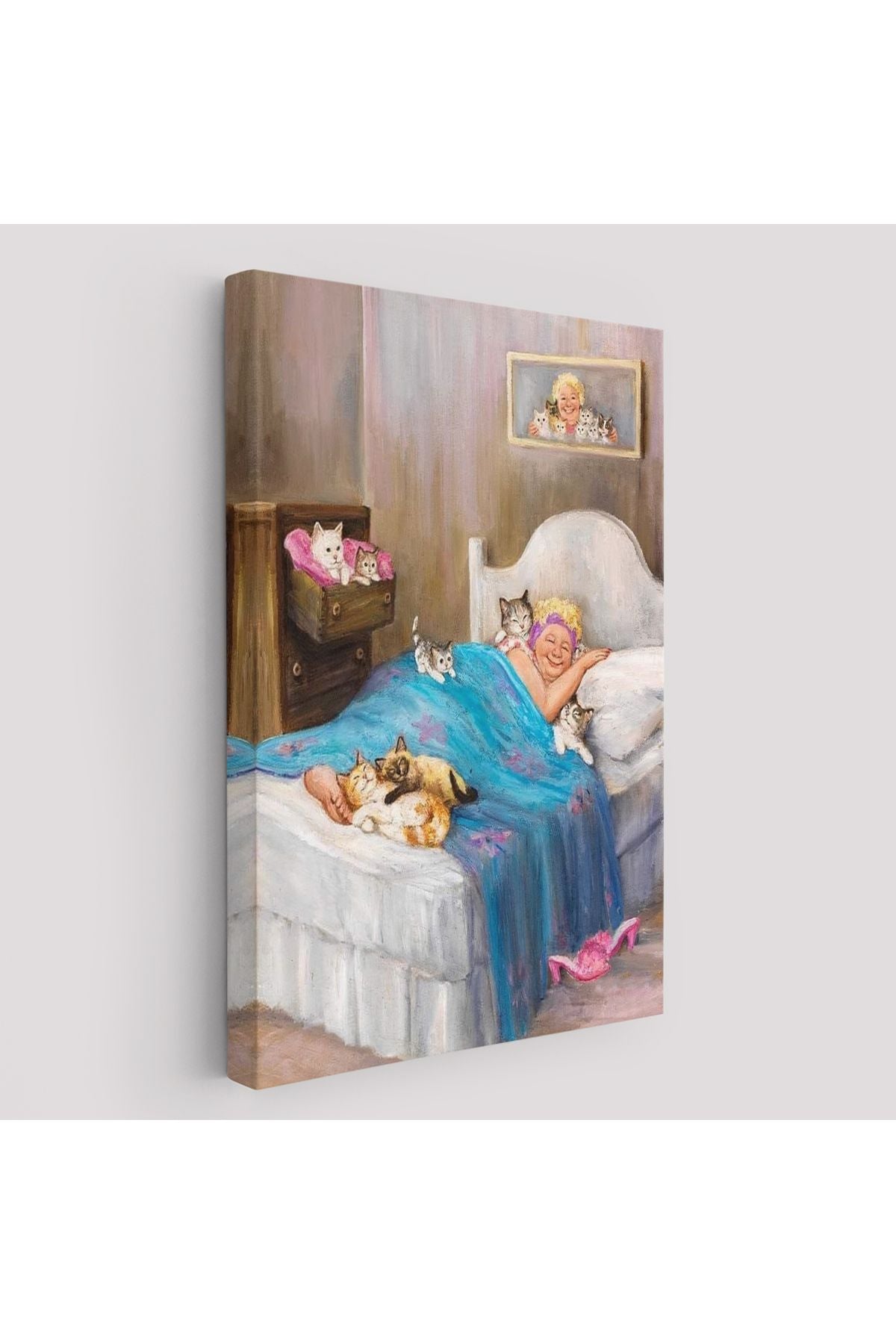 Dianne Denge'in Kedi Sever Yaşlı Kadın Mutluluğun Resmi Tablosu-6383