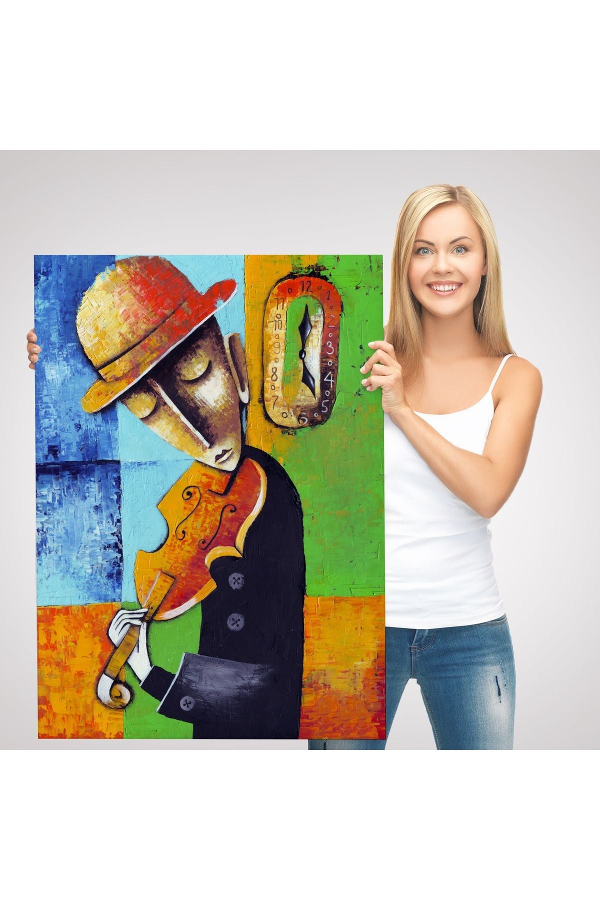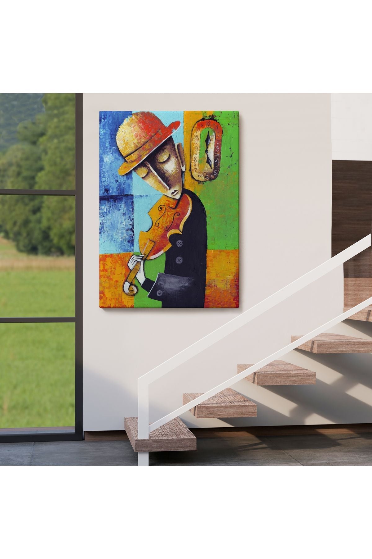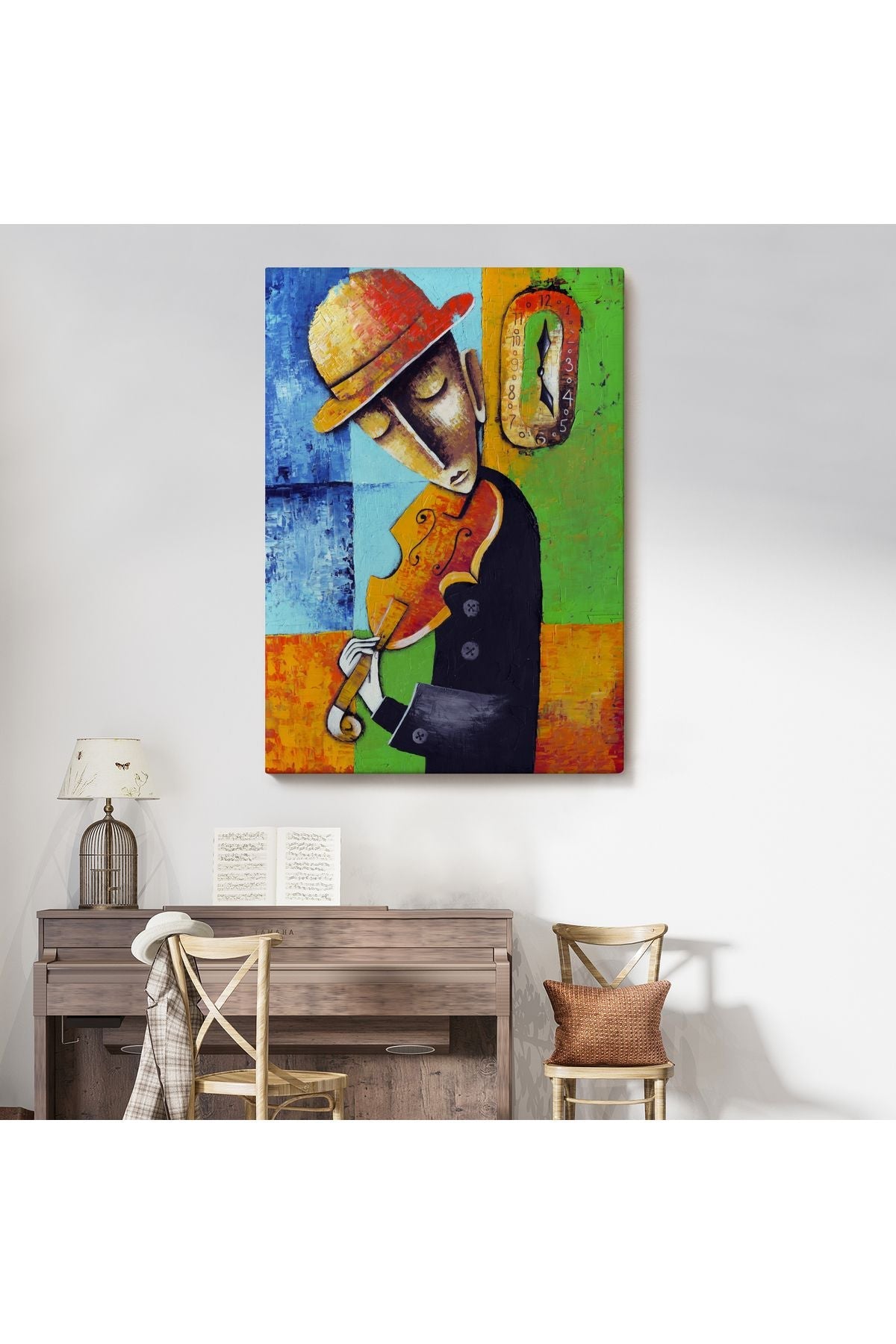 Keman Çalan Müzisyen Sürreal Adam Duvar Tablo-6447