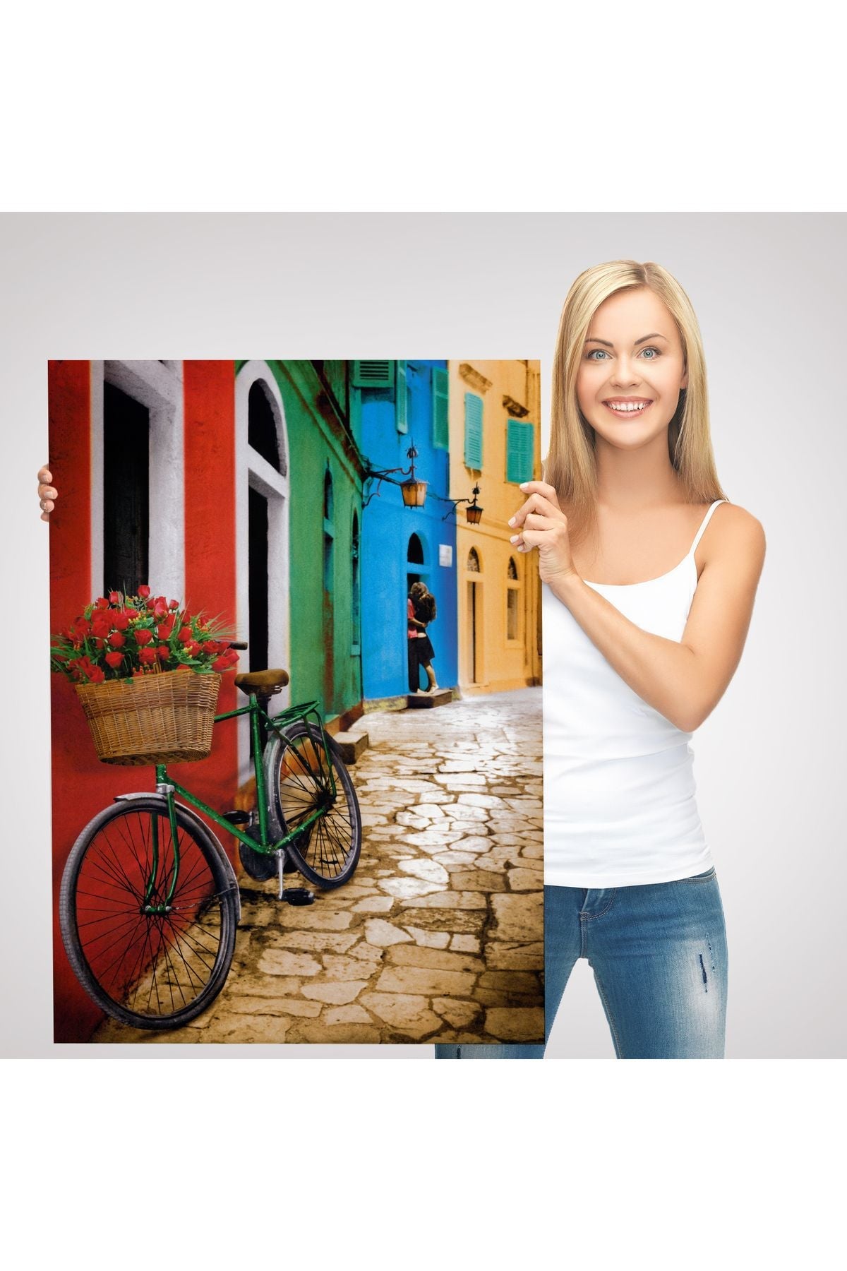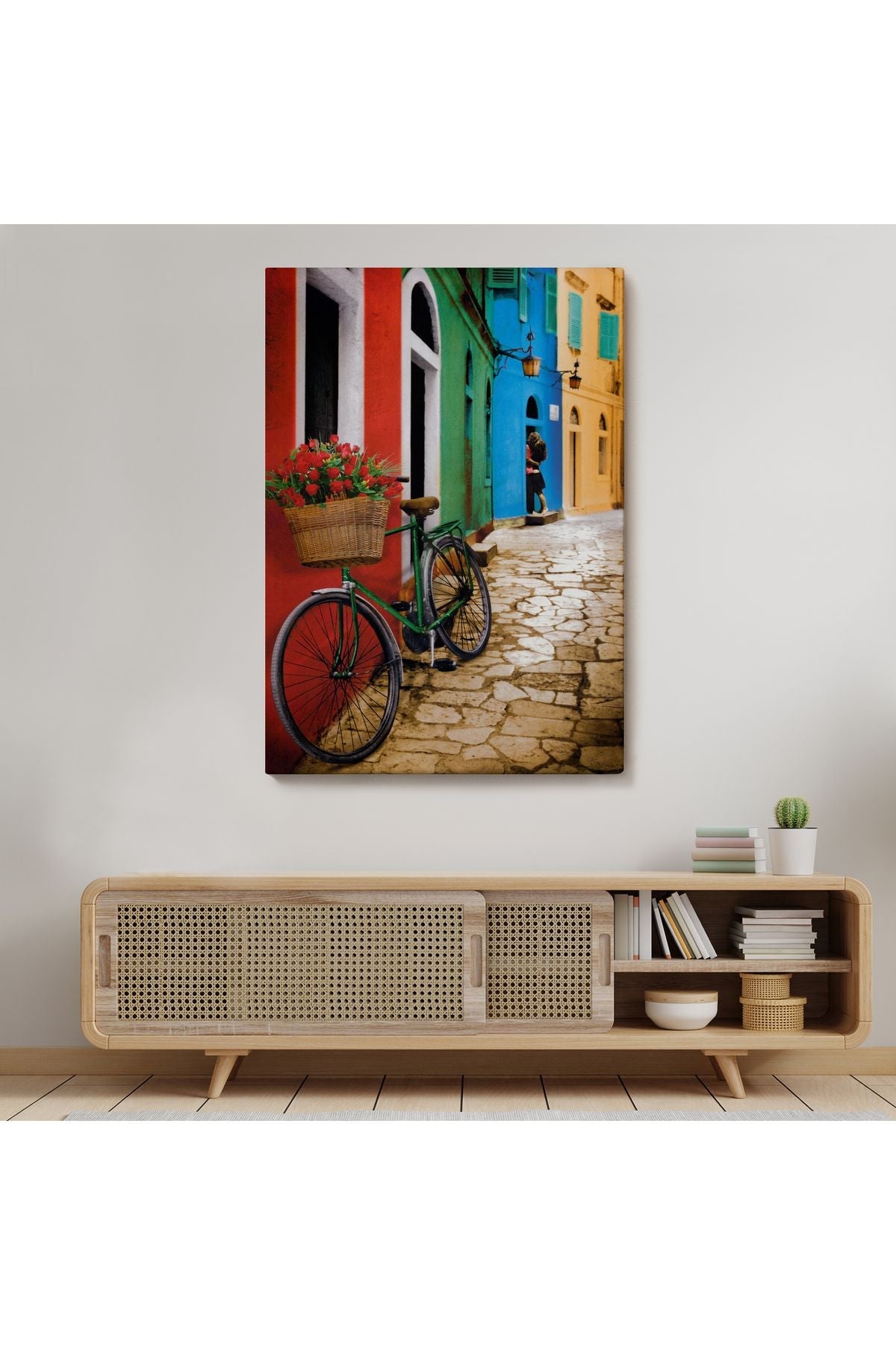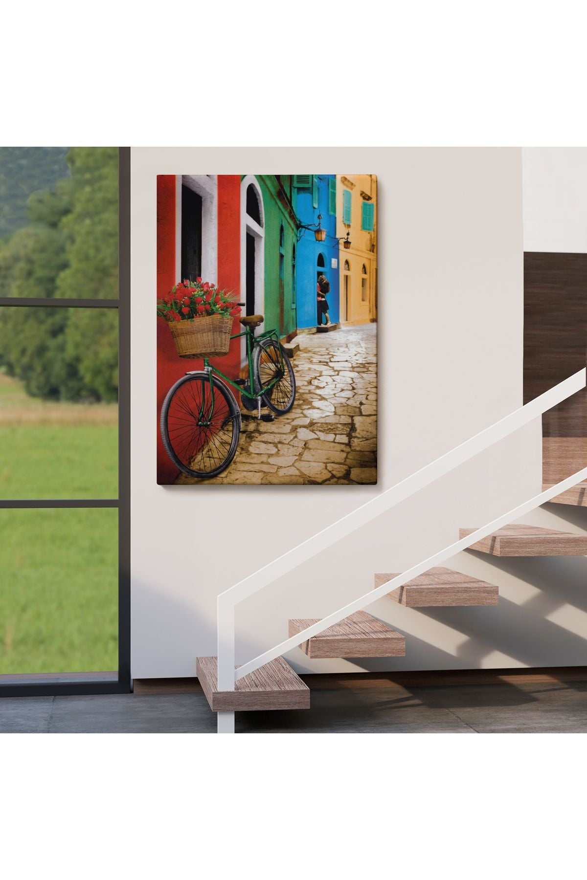 Sokaktaki Çiçekli Bisiklet Duvar Tablosu-6453
