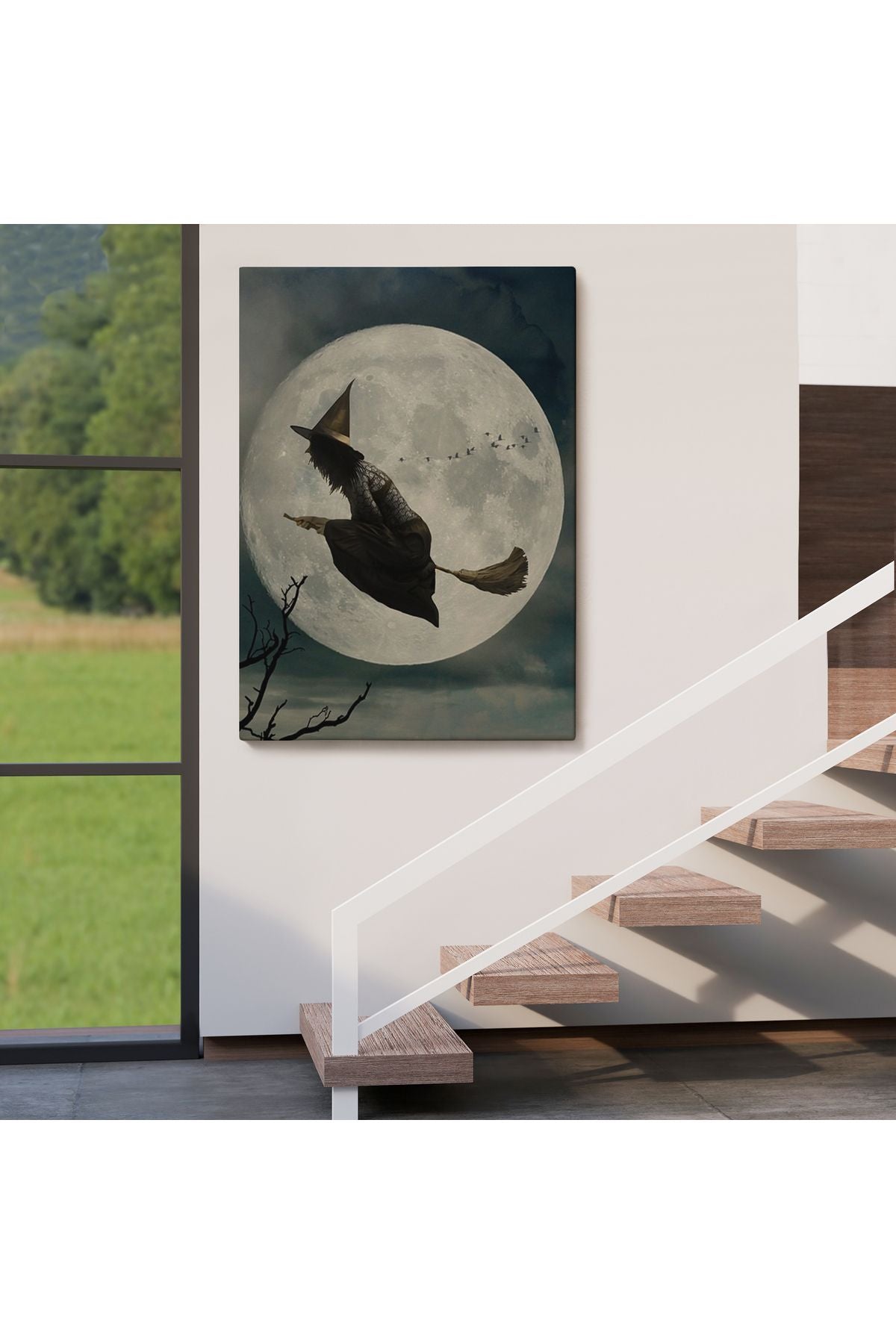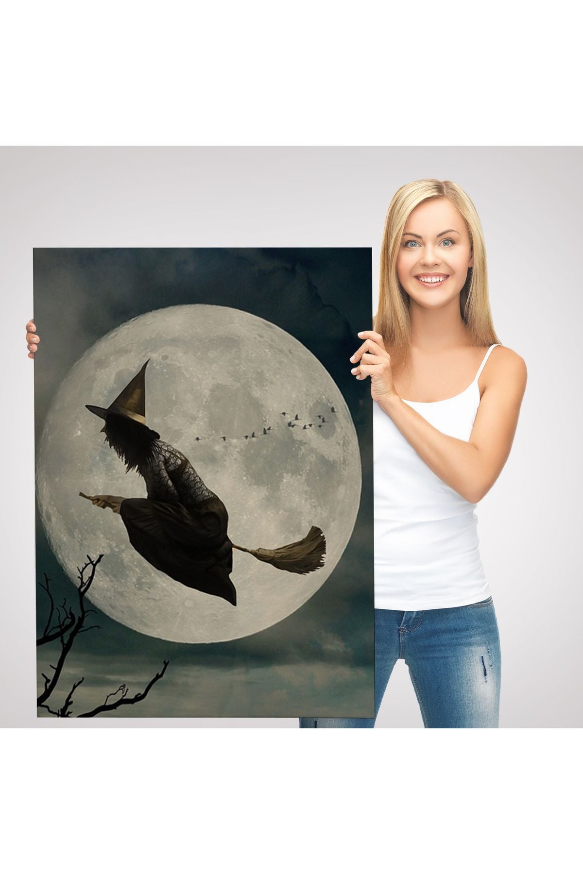 Süpürge İle Uçan Cadı, Cadılar Bayramı Helloven Duvar Tablosu -6481