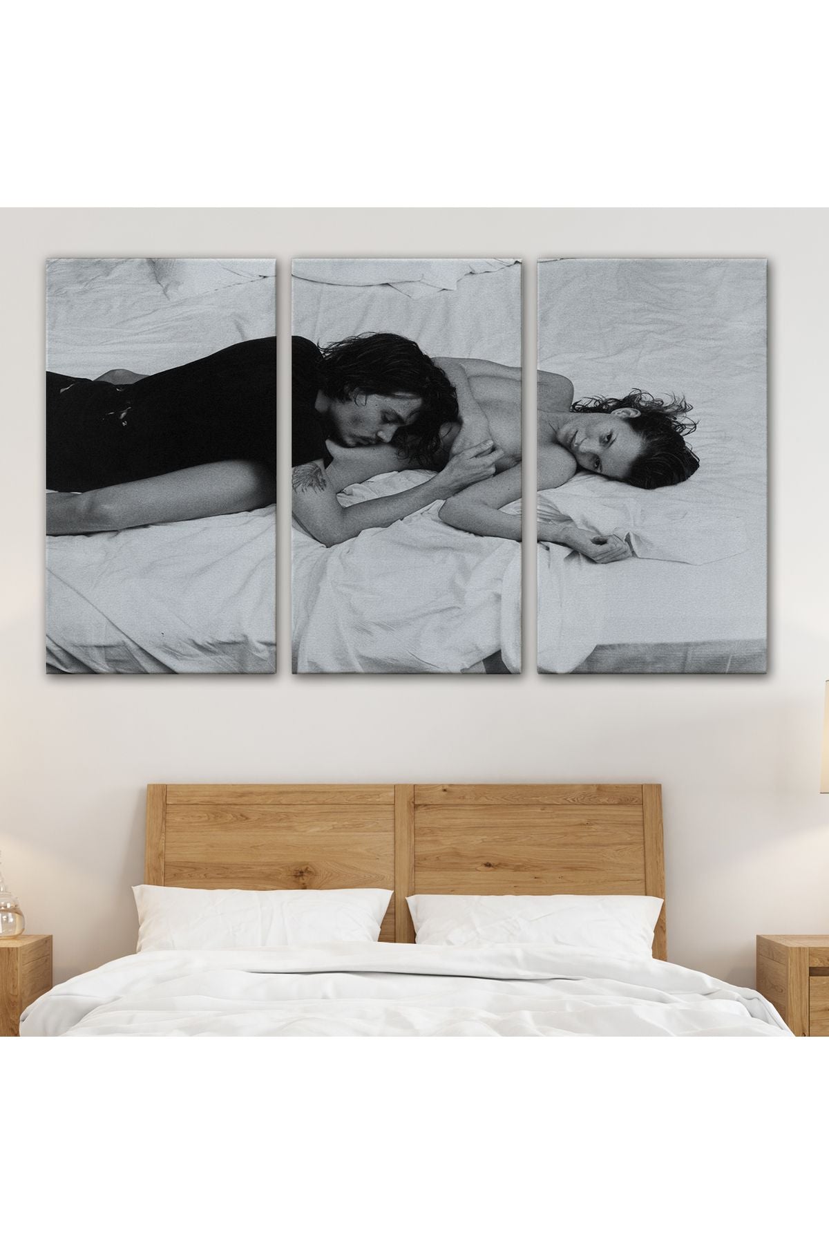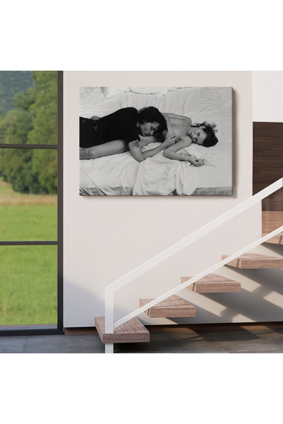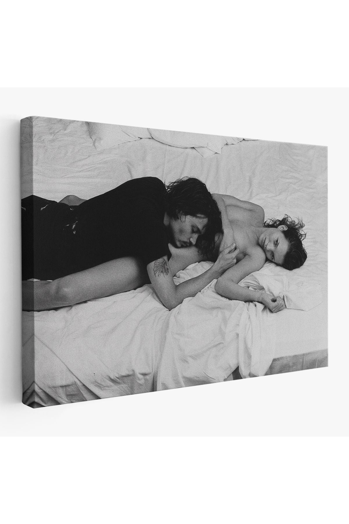 Özel Tasarım, Dekortif BaskıJohnny Depp ve Kate Moss Duvar Tablosu, Siyah Beyaz-6525