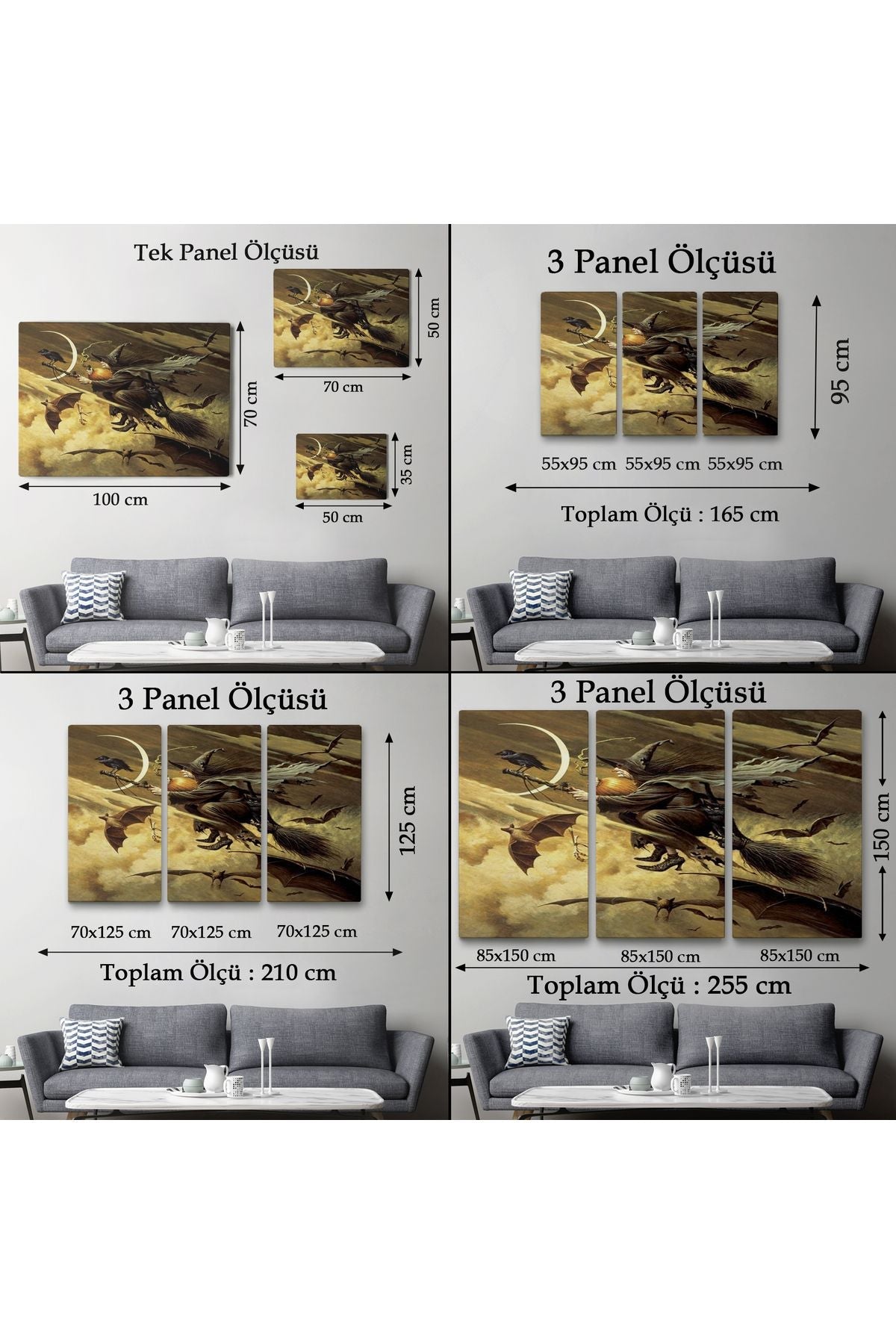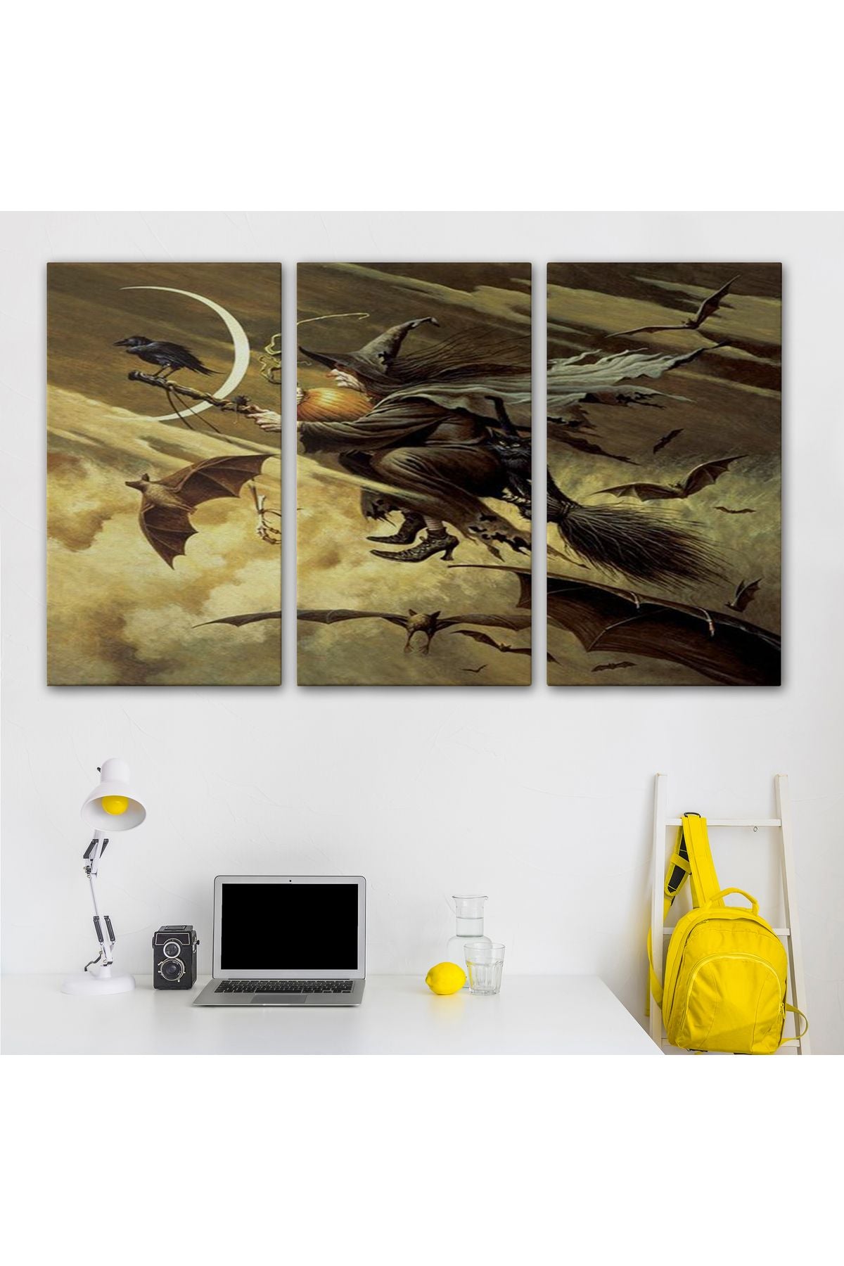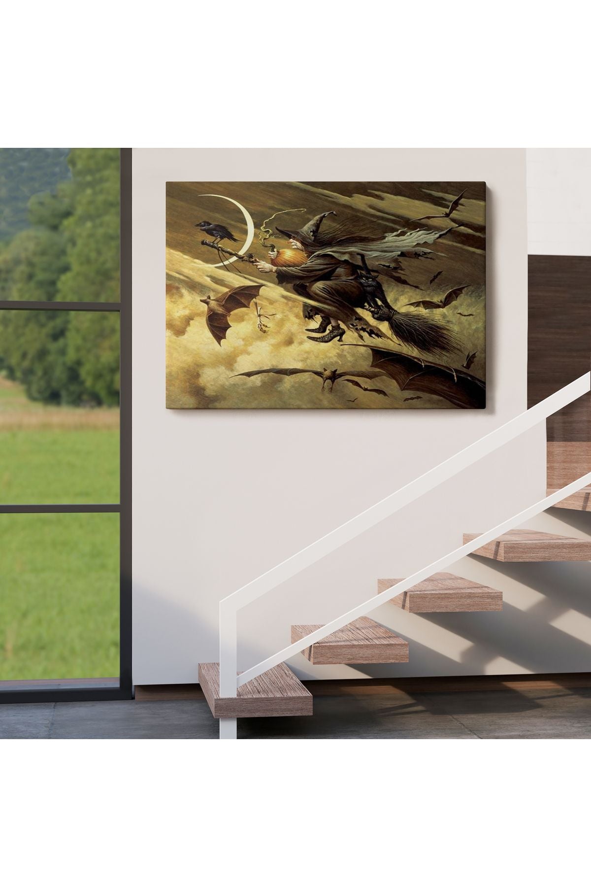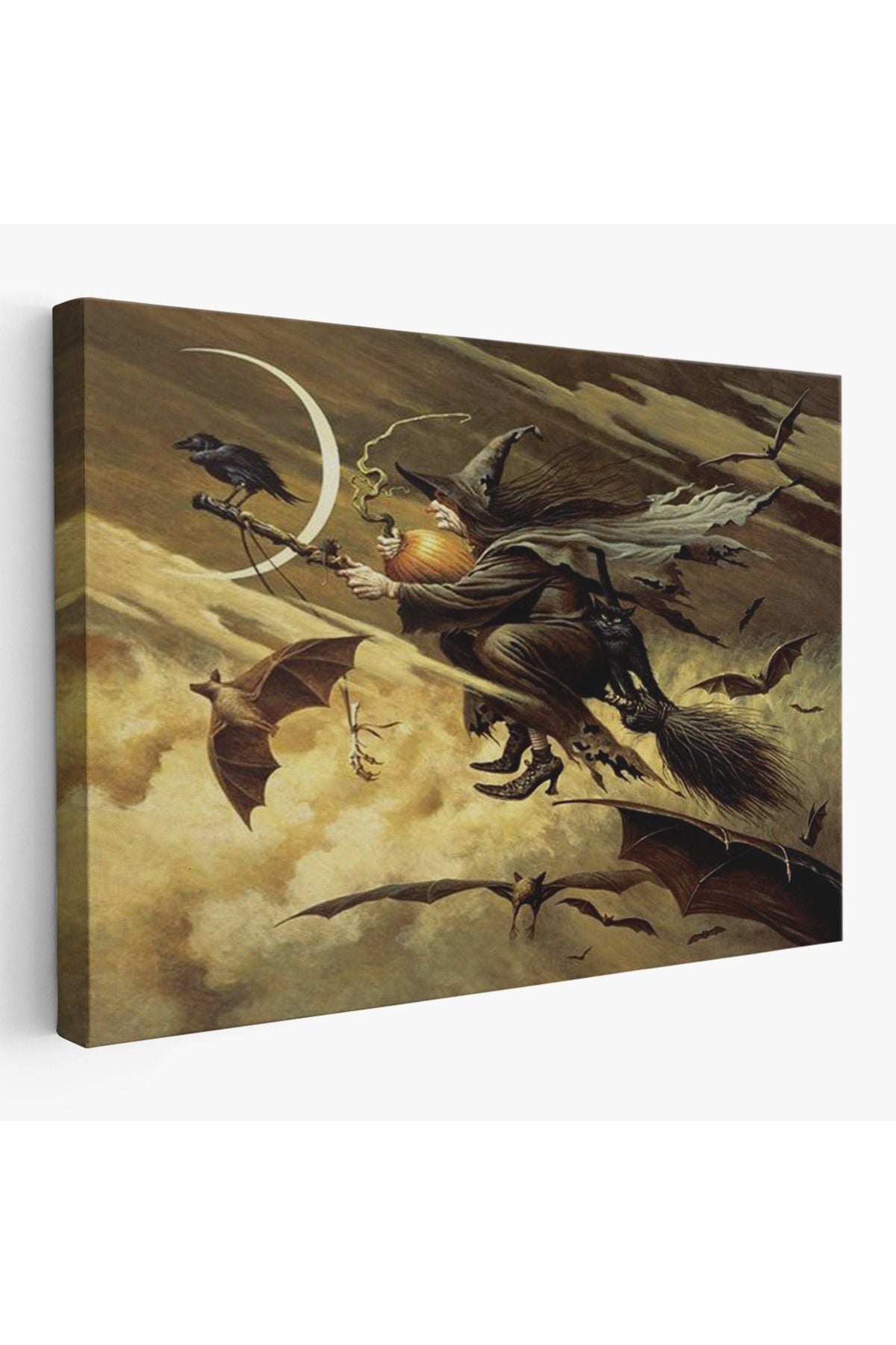 Süpürge İle Uçan Cadı ve Kedisi Cadılar Bayramı Helloven Duvar Tablosu -6559