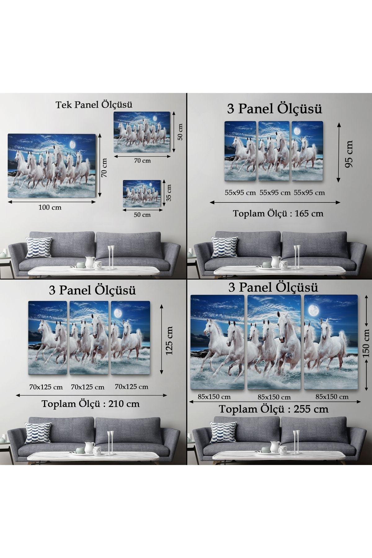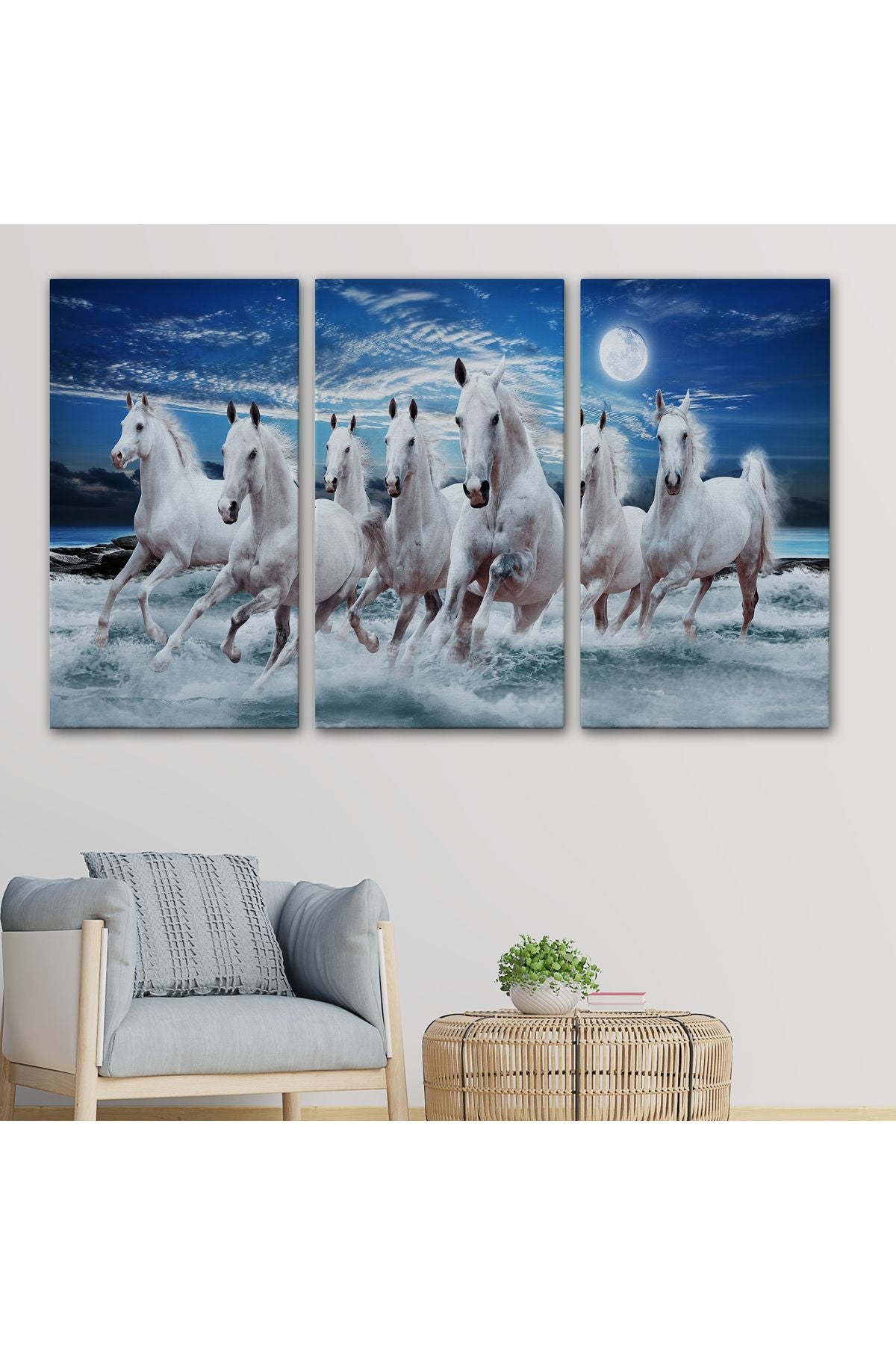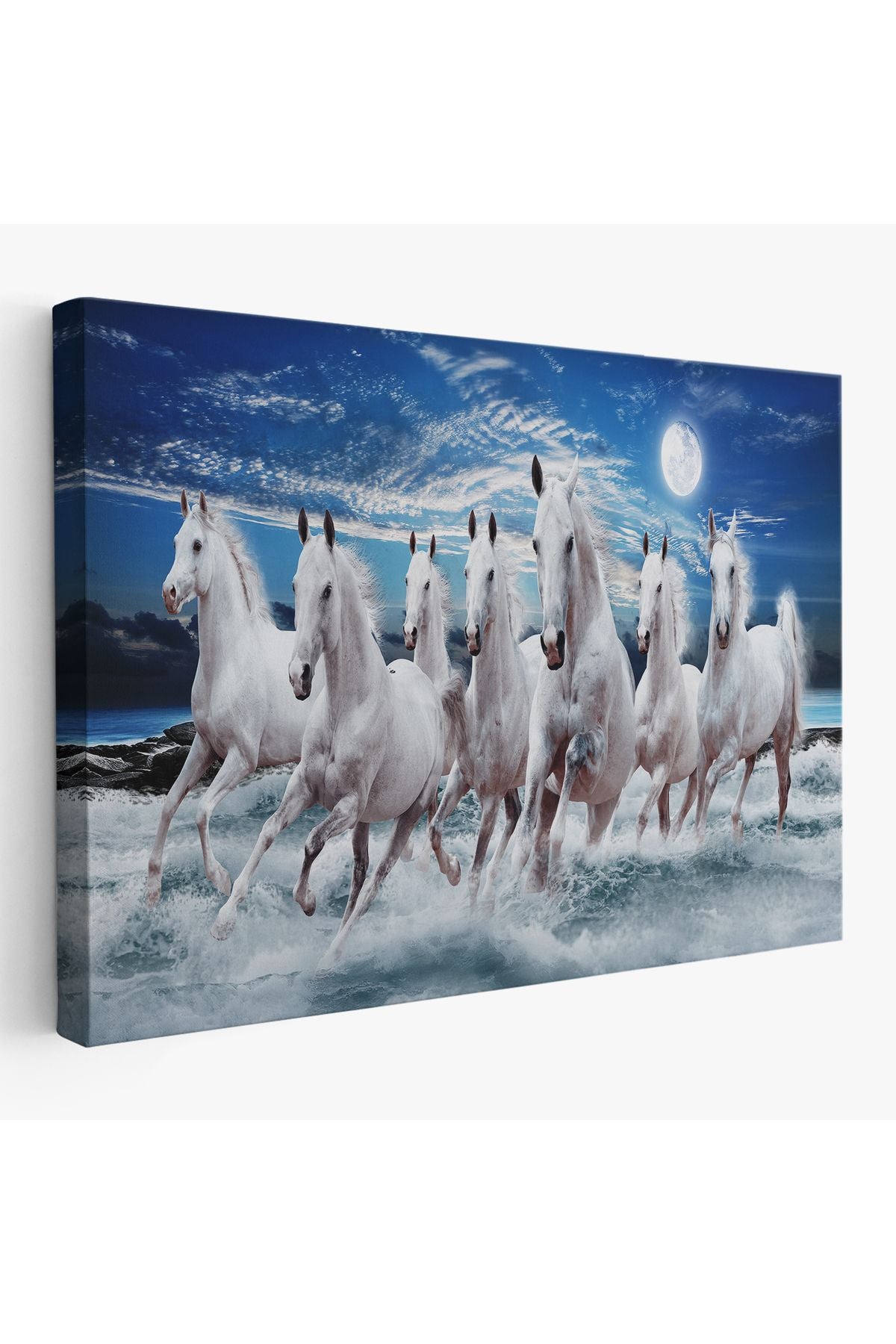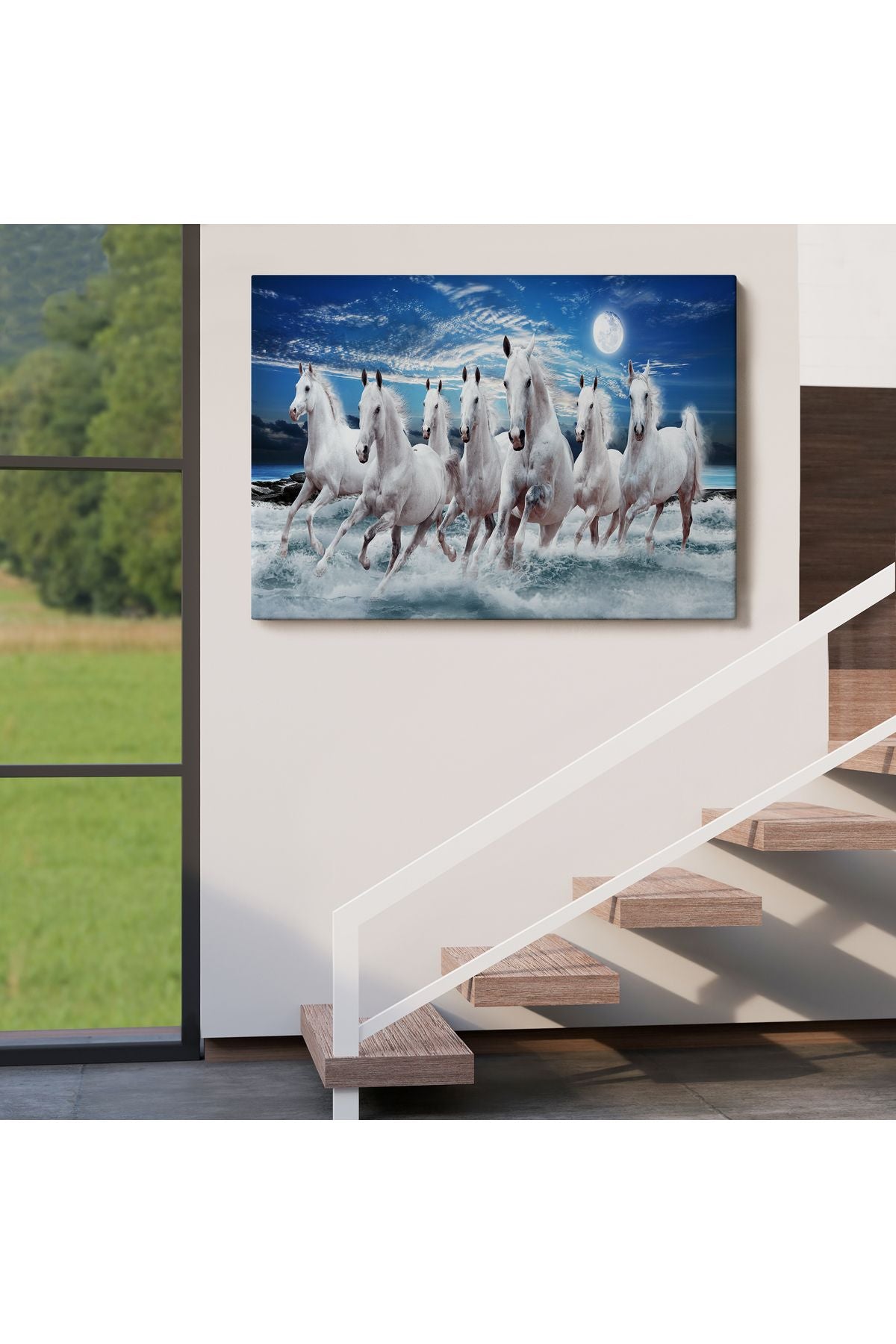 Sahildeki Koşan Beyaz Atlar Tablosu-6580