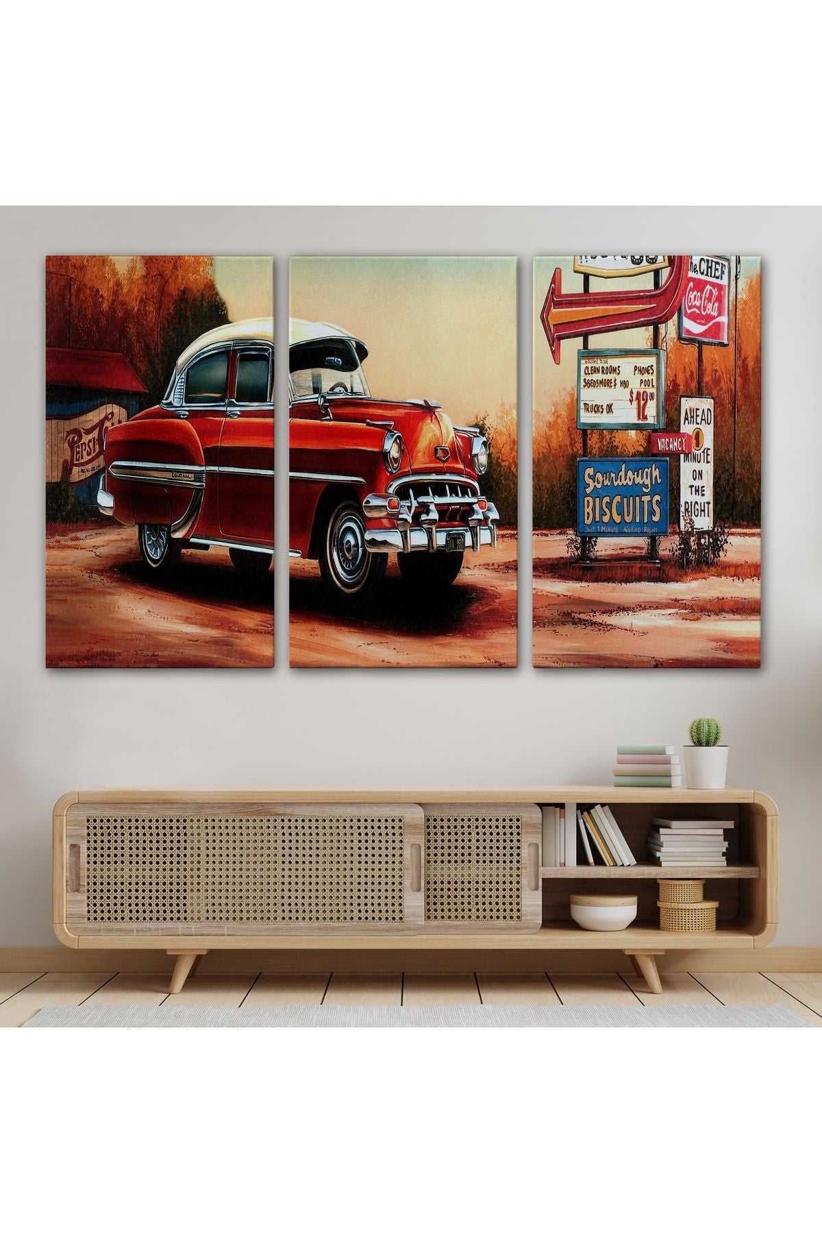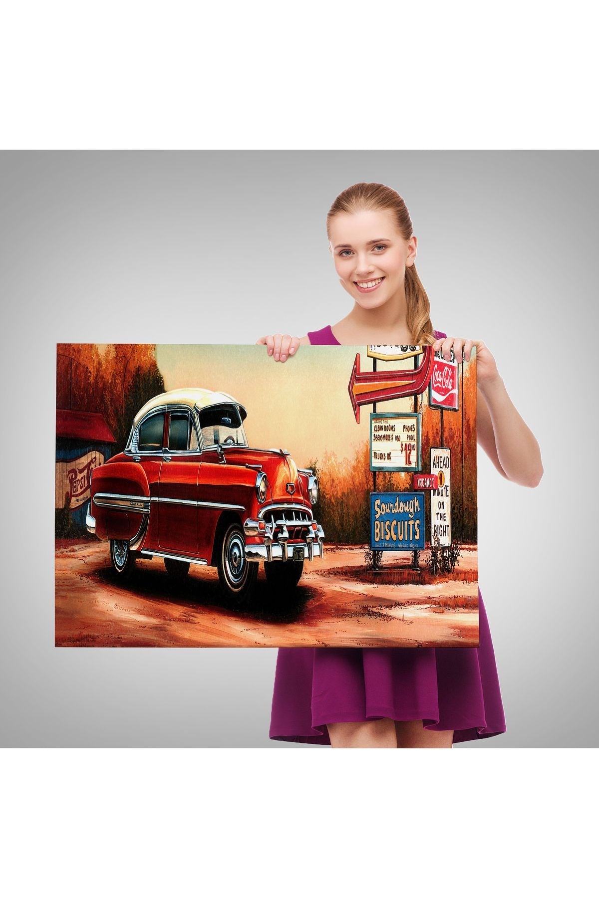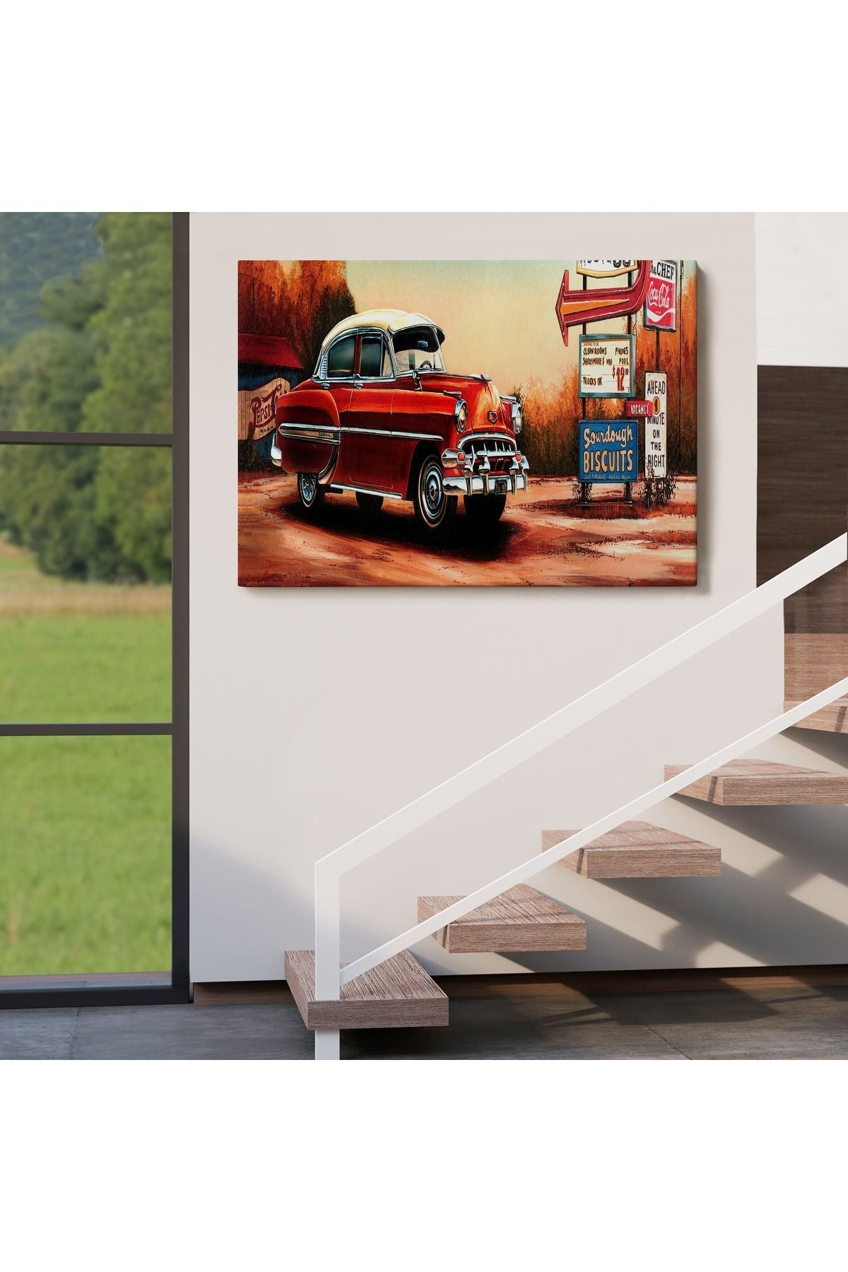 Kırmızı Klasik Araba Tablosu-6608