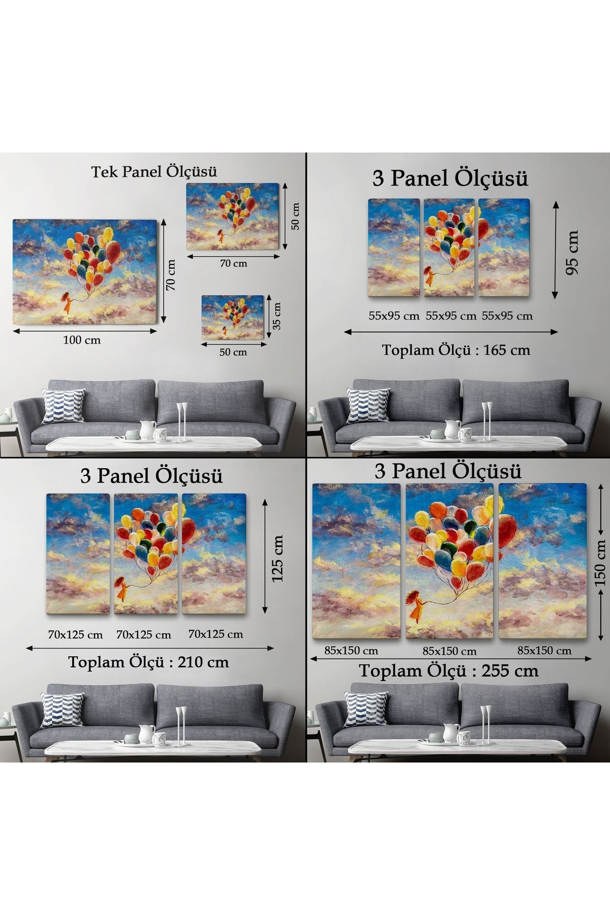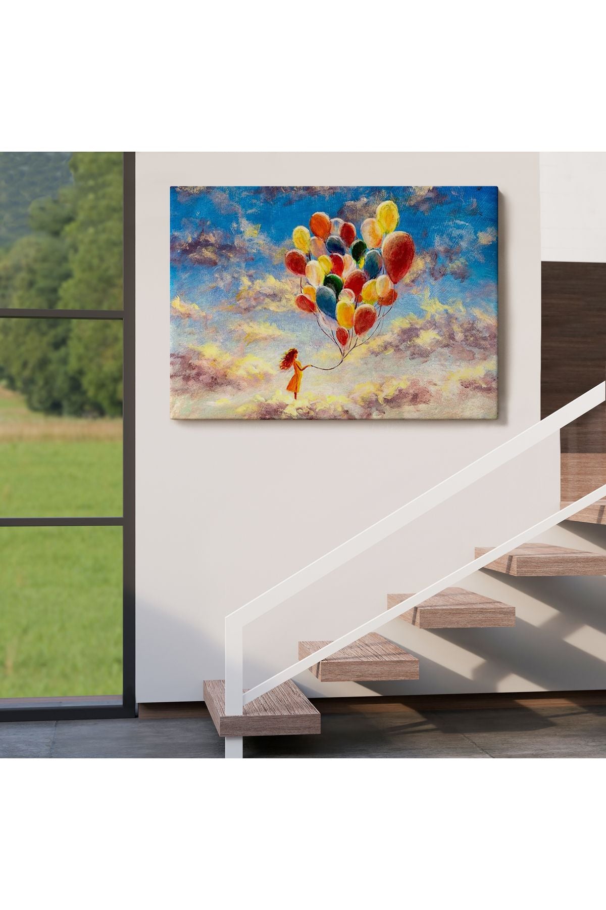 HG Bulutlaların Üzerindeki Renkli Balonları Tutan Kız Tablosu-6643