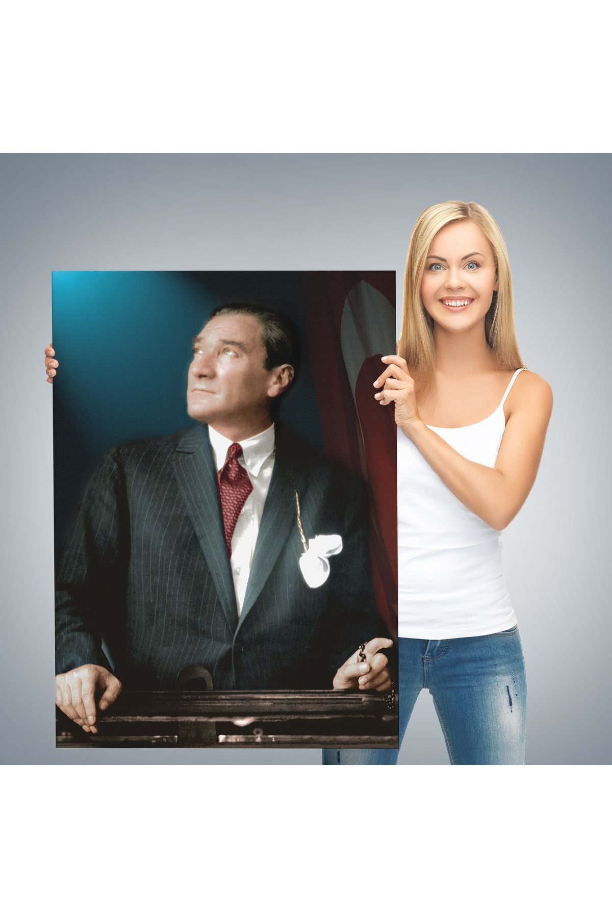 Atatürk Portre Tablosu Mustafa Kemal Atatürk Dikdörtgen Dekoratif Kanvas Tablo-CO-64