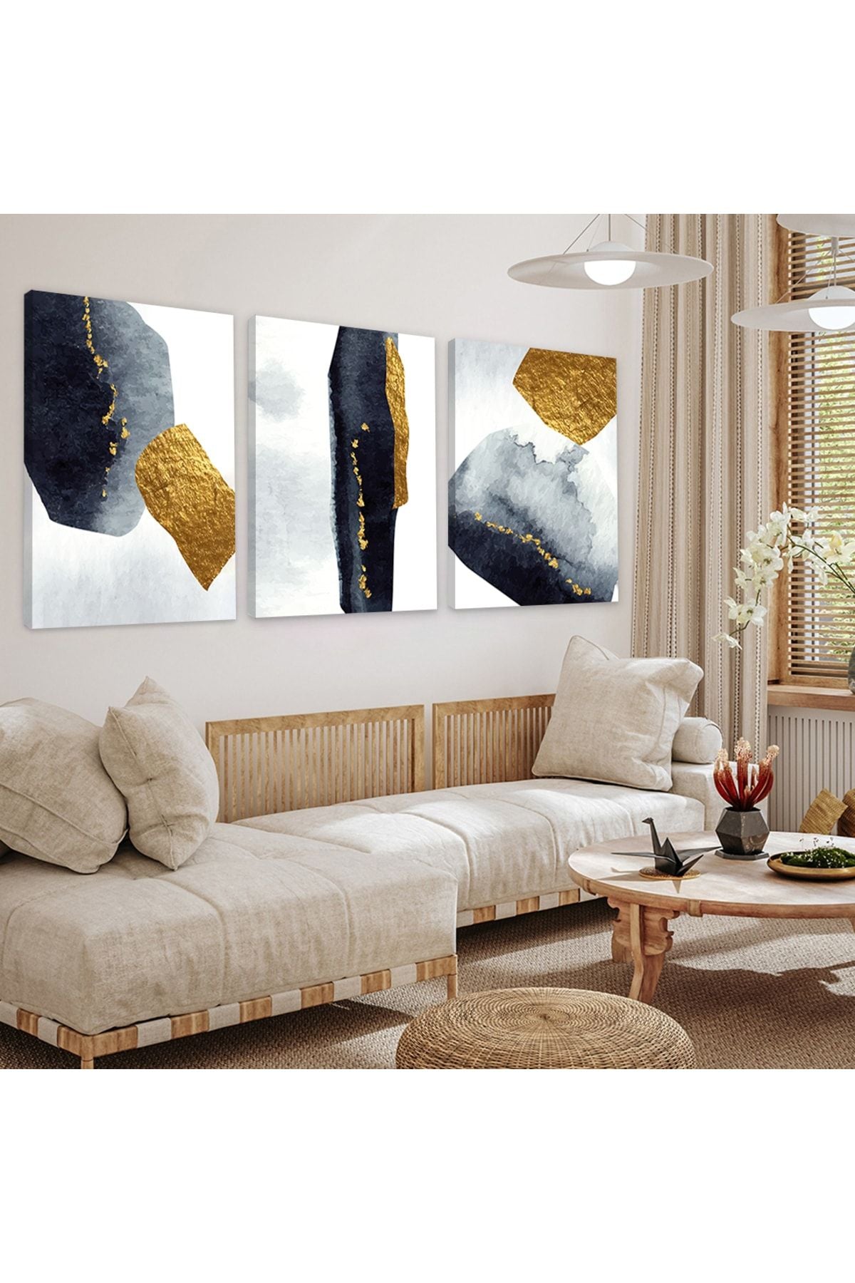Soyut Desen 3'Lü Kanvas Tablo