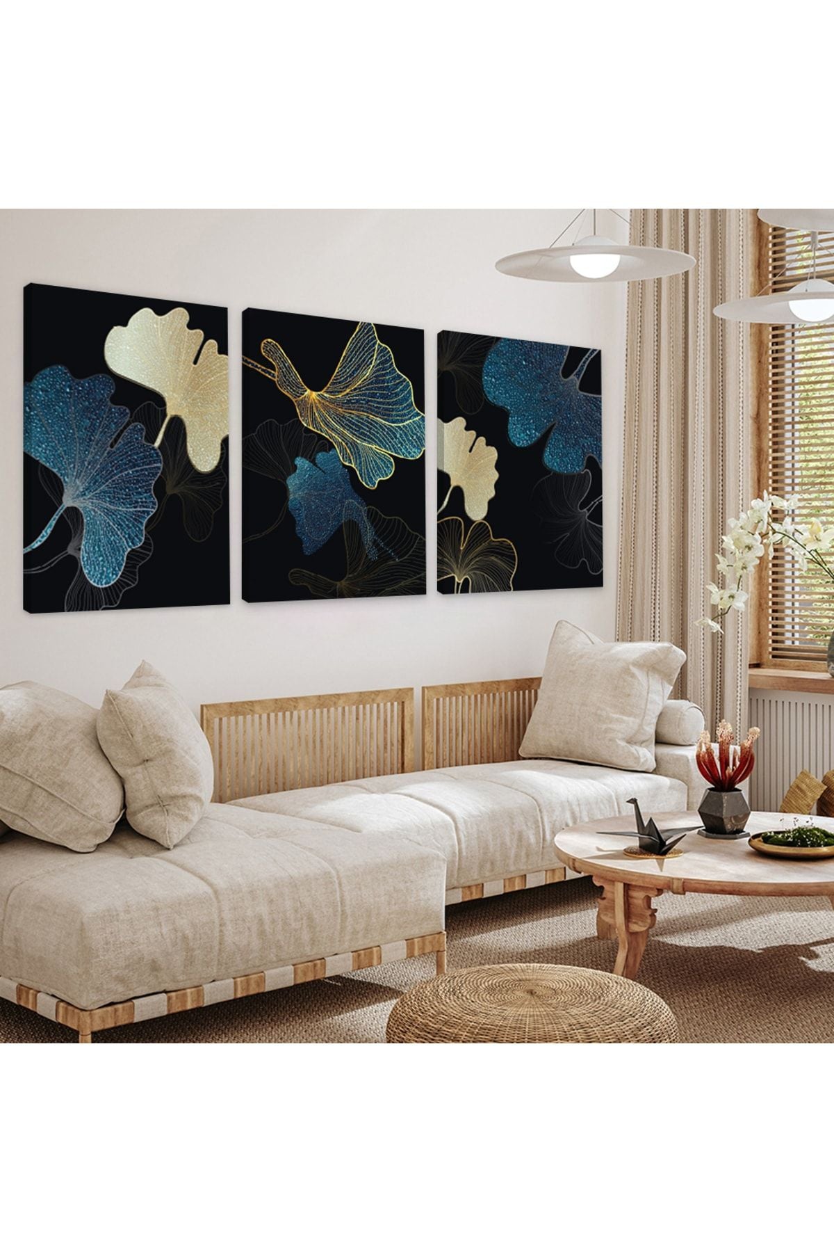 Soyut Desen Çiçek 3'Lü Kanvas Tablo
