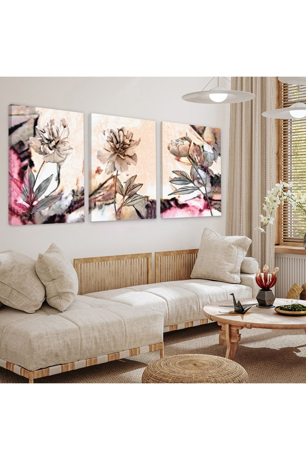 Soyut Desen Çiçek 3'Lü Kanvas Tablo