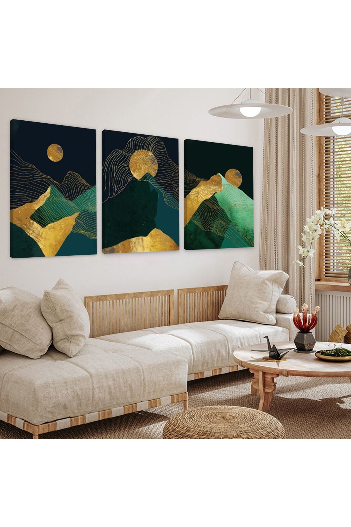 Soyut Desen Dağ 3'Lü Kanvas Tablo