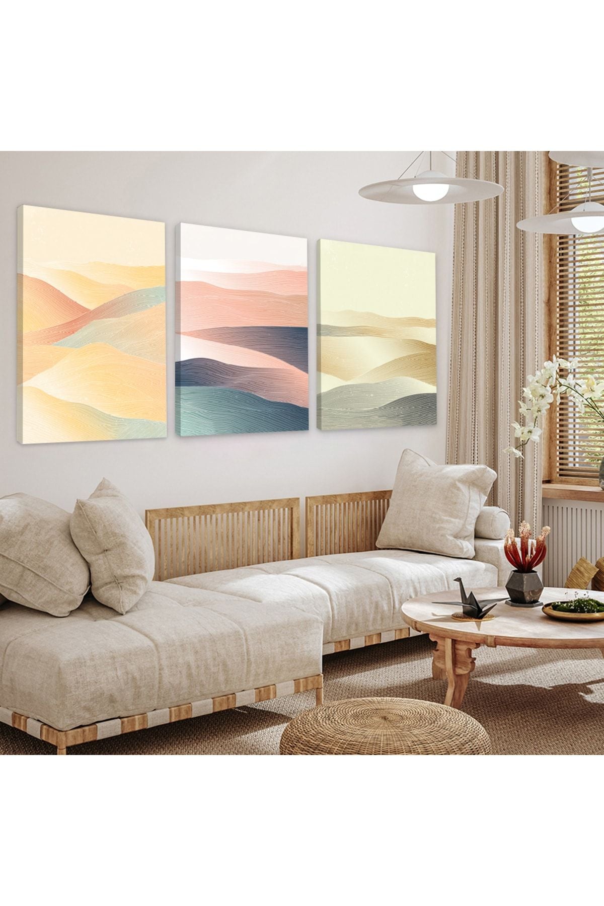 Soyut Desen Kum 3'Lü Kanvas Tablo