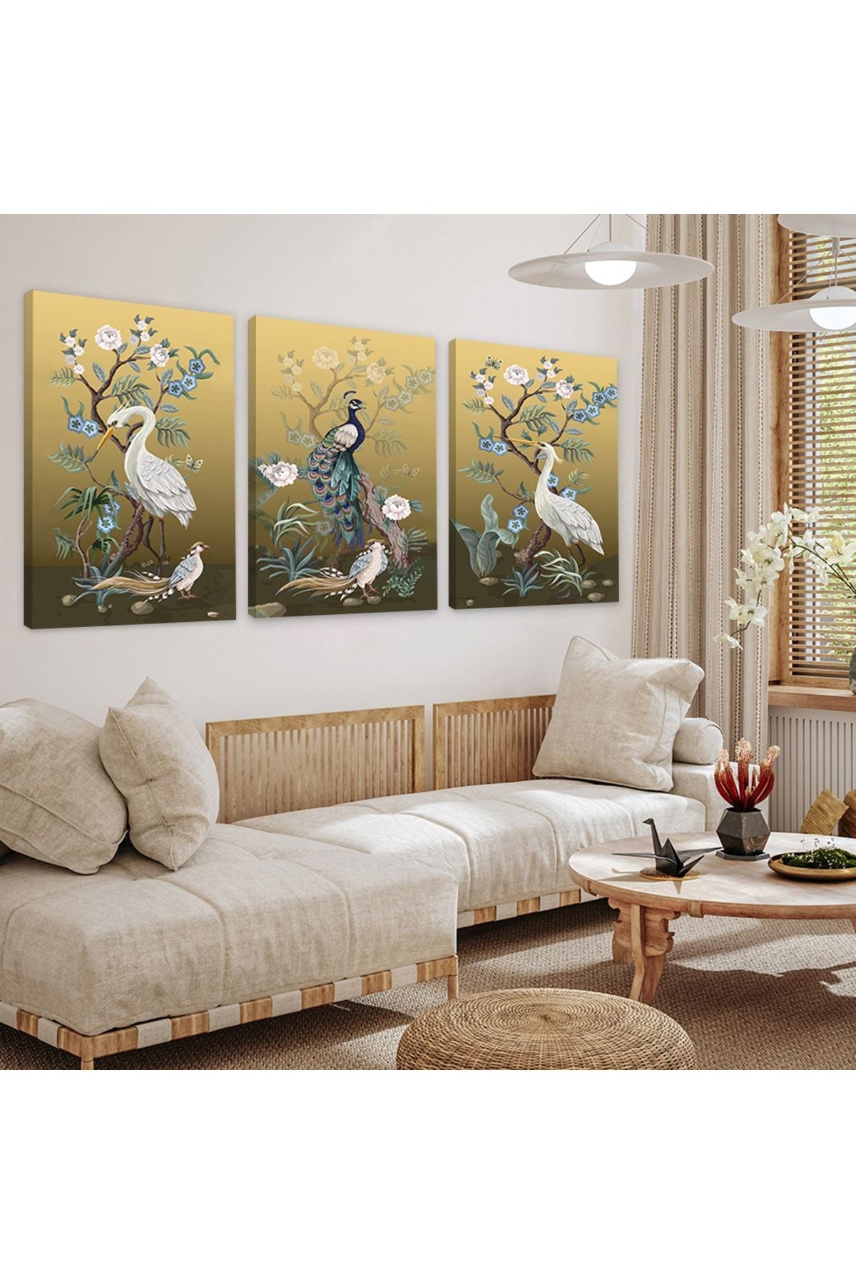 Tavus Kuşu Soyut Desen 3'Lü Kanvas Tablo